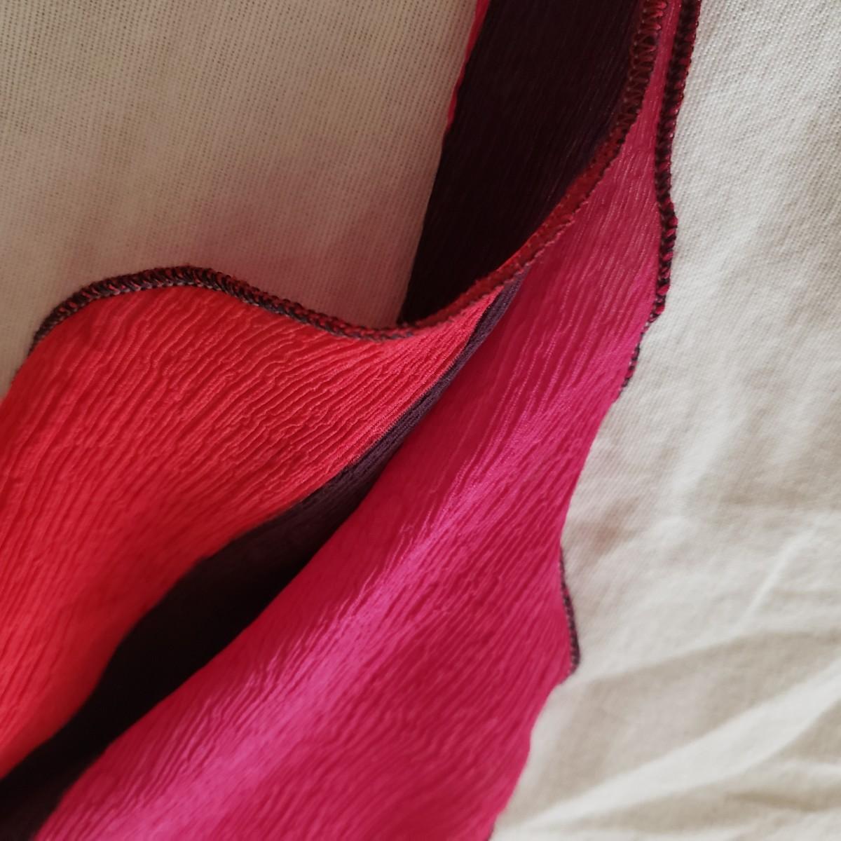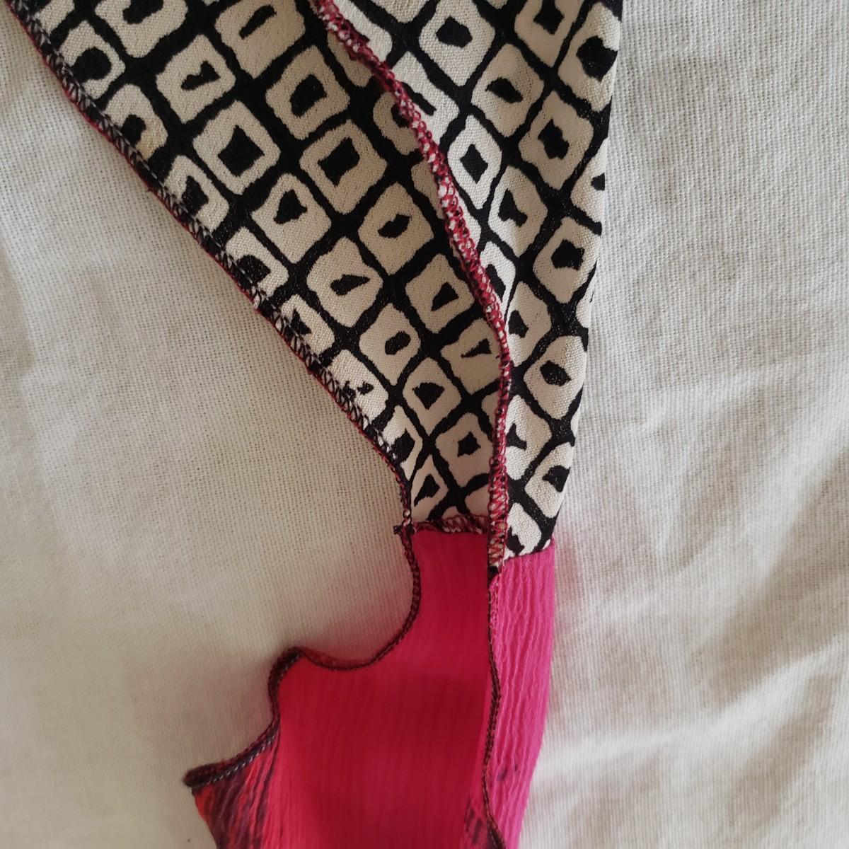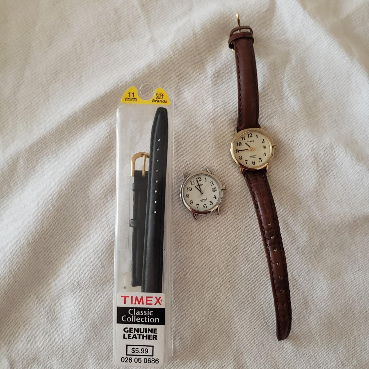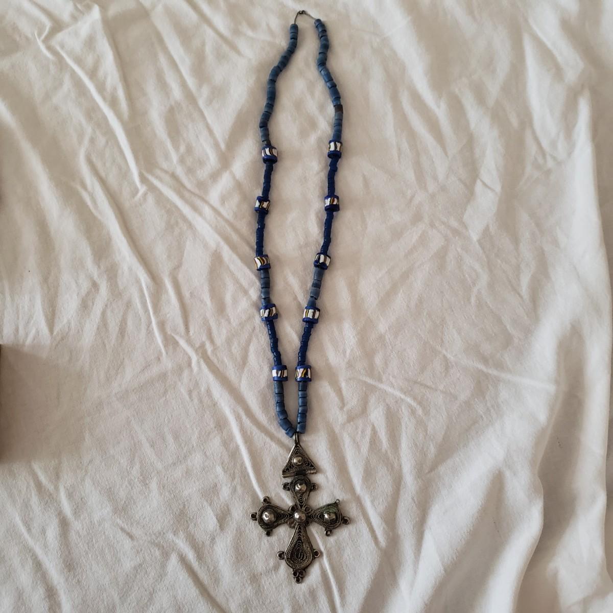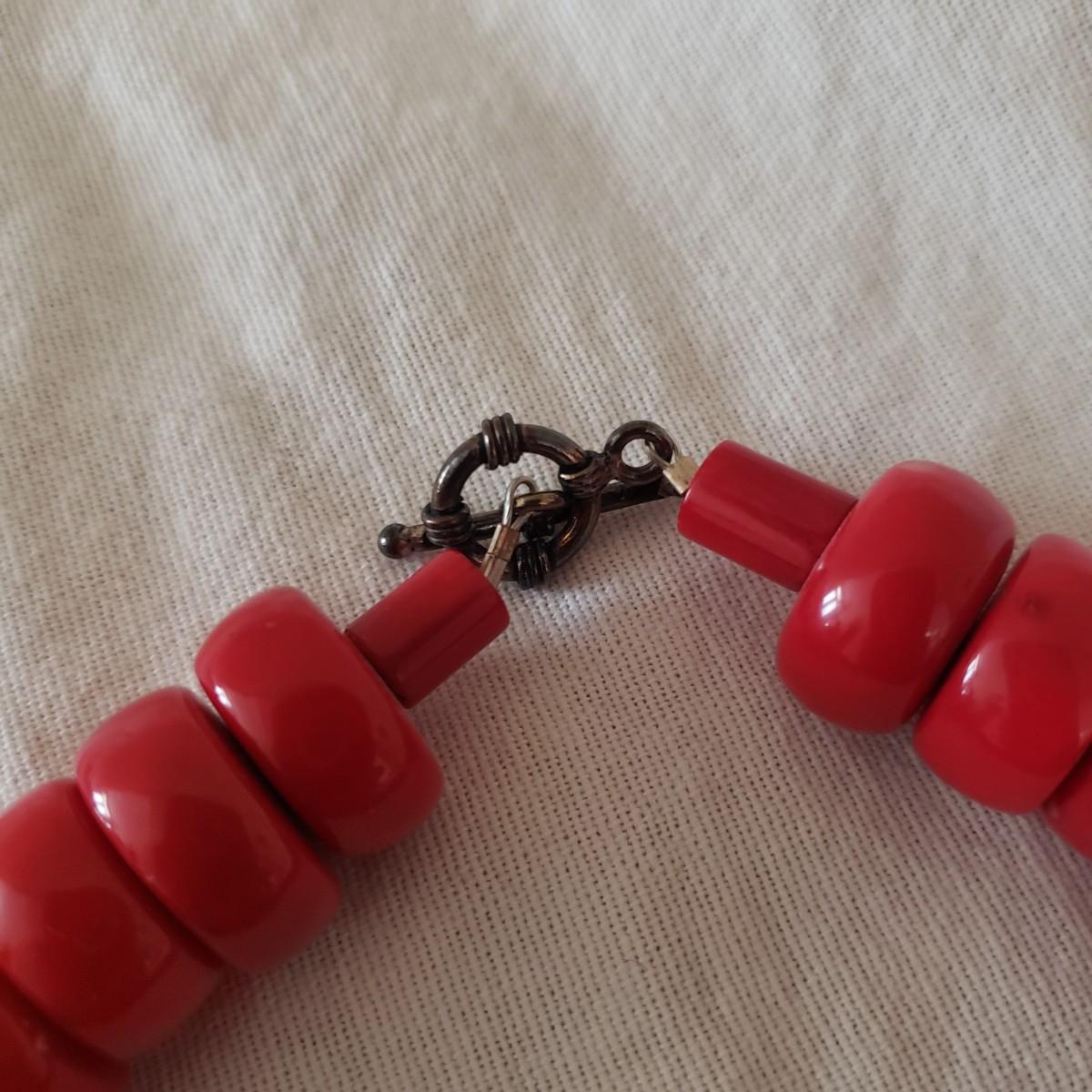 This jewelry lot has some fun, funky pieces, as well as practical Timex watches. The red necklaces are on the heavy side and measure approximately 9" for the multistrand necklace. The blue beaded necklace with the silver like cross measures 18". The sterling silver necklace is marked on the clasp. It was difficult to photograph. The pink felted flower has a metal center. The scarf feels like silk, but no tags were found.