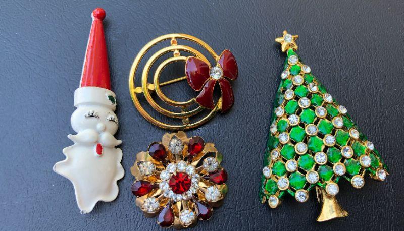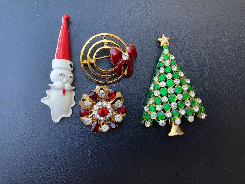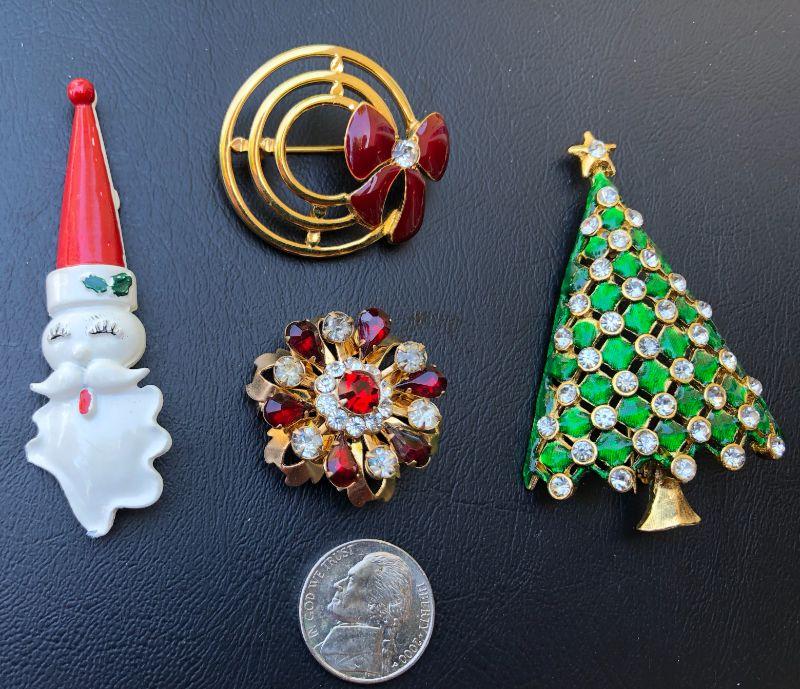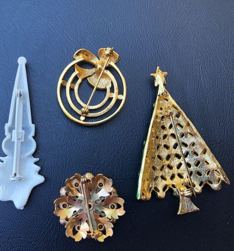 Fun Lot of Vintage Christmas Gold Tone Brooches Pins