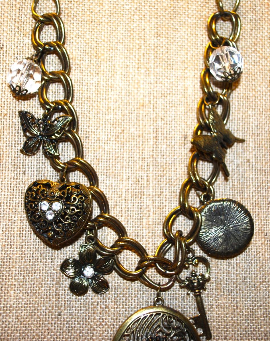Fun Necklace with Butterflies, Puffy Heart, Key, Baubles and More 20" L