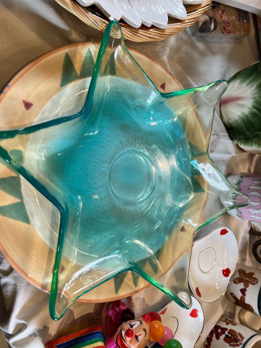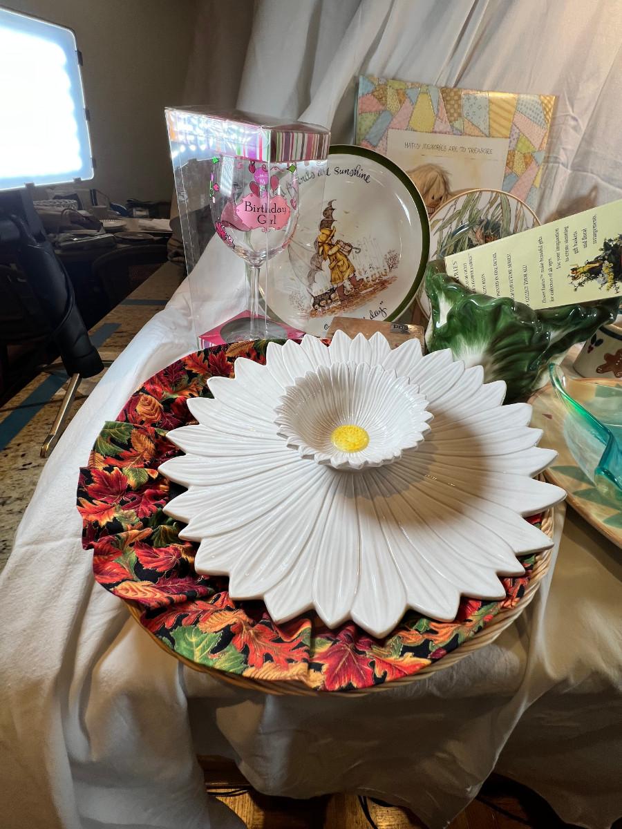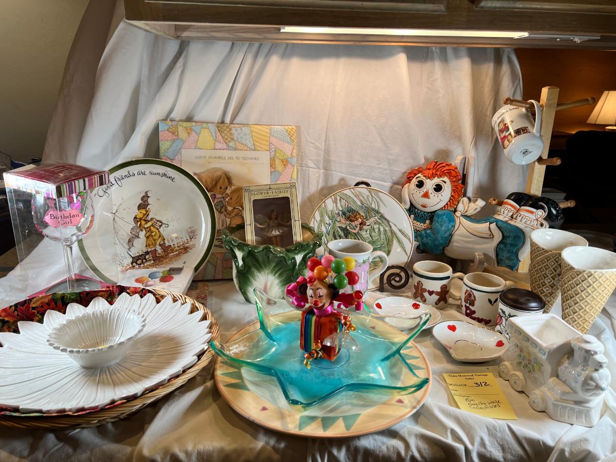 Fun Novelty table ware.. When I packed this lot, the bottom of the box broke. So one ice cream cone is gone, the Harry and David cabbage bowl is also gone,, as well as the flower dish being chipped.All the rest seemed fine...