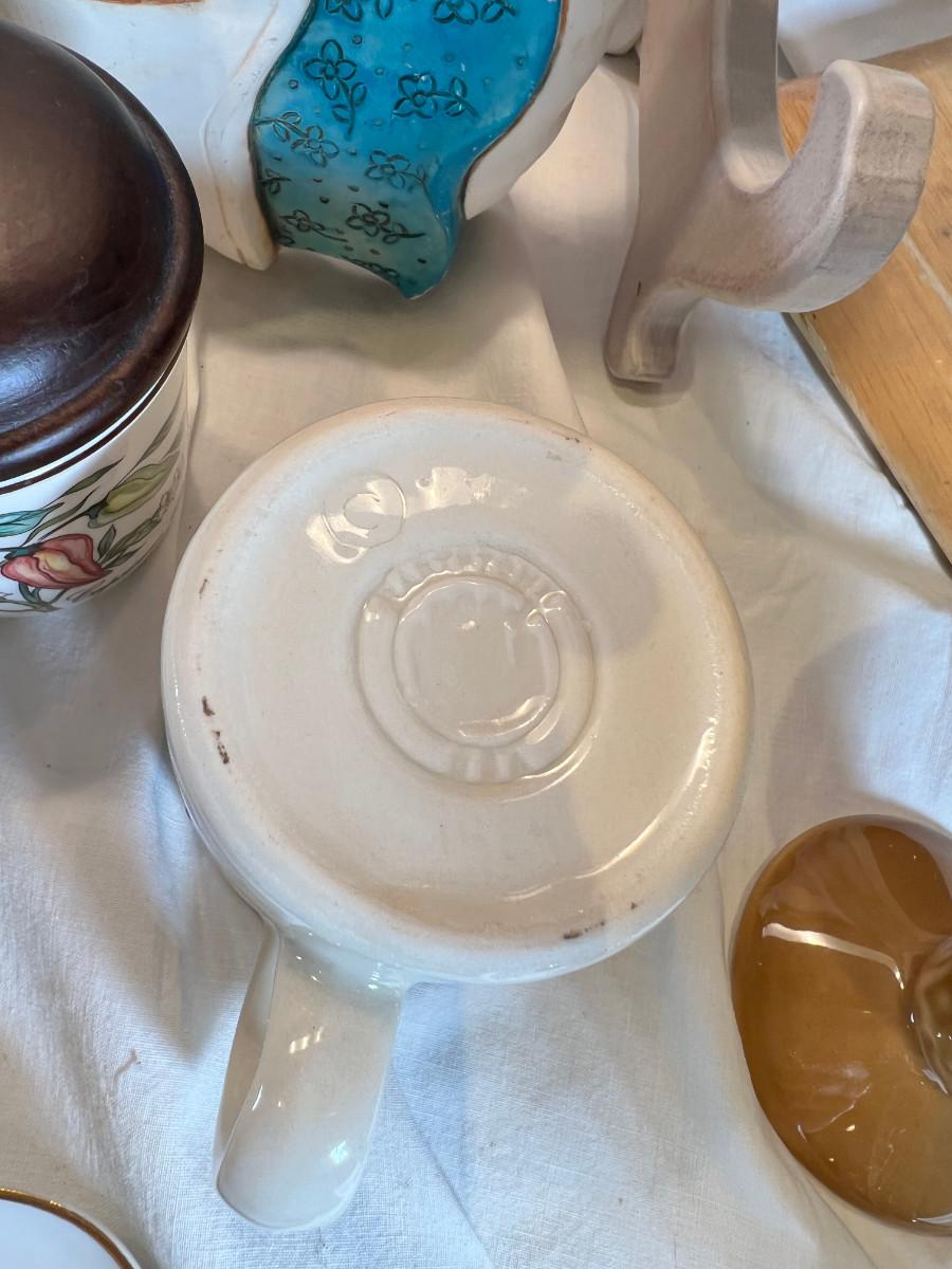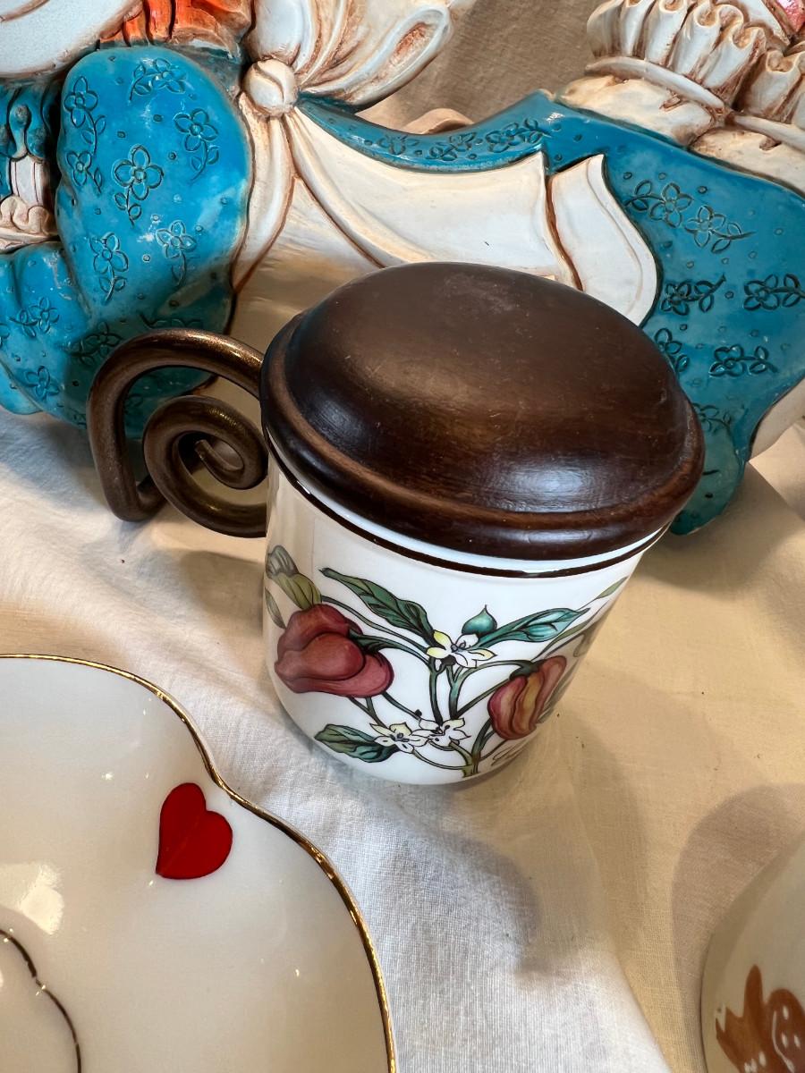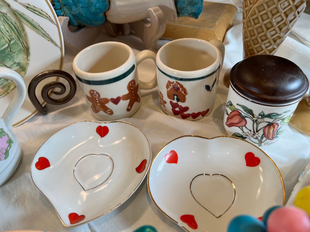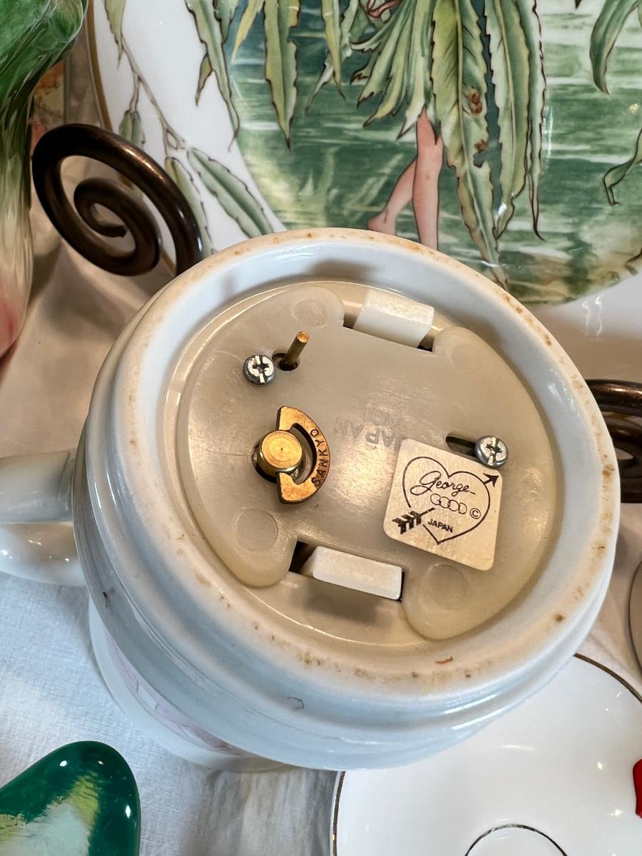 Fun Novelty table ware. Mugs and holder, Mom music box As is