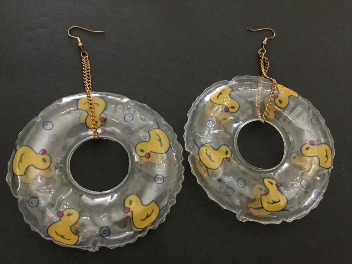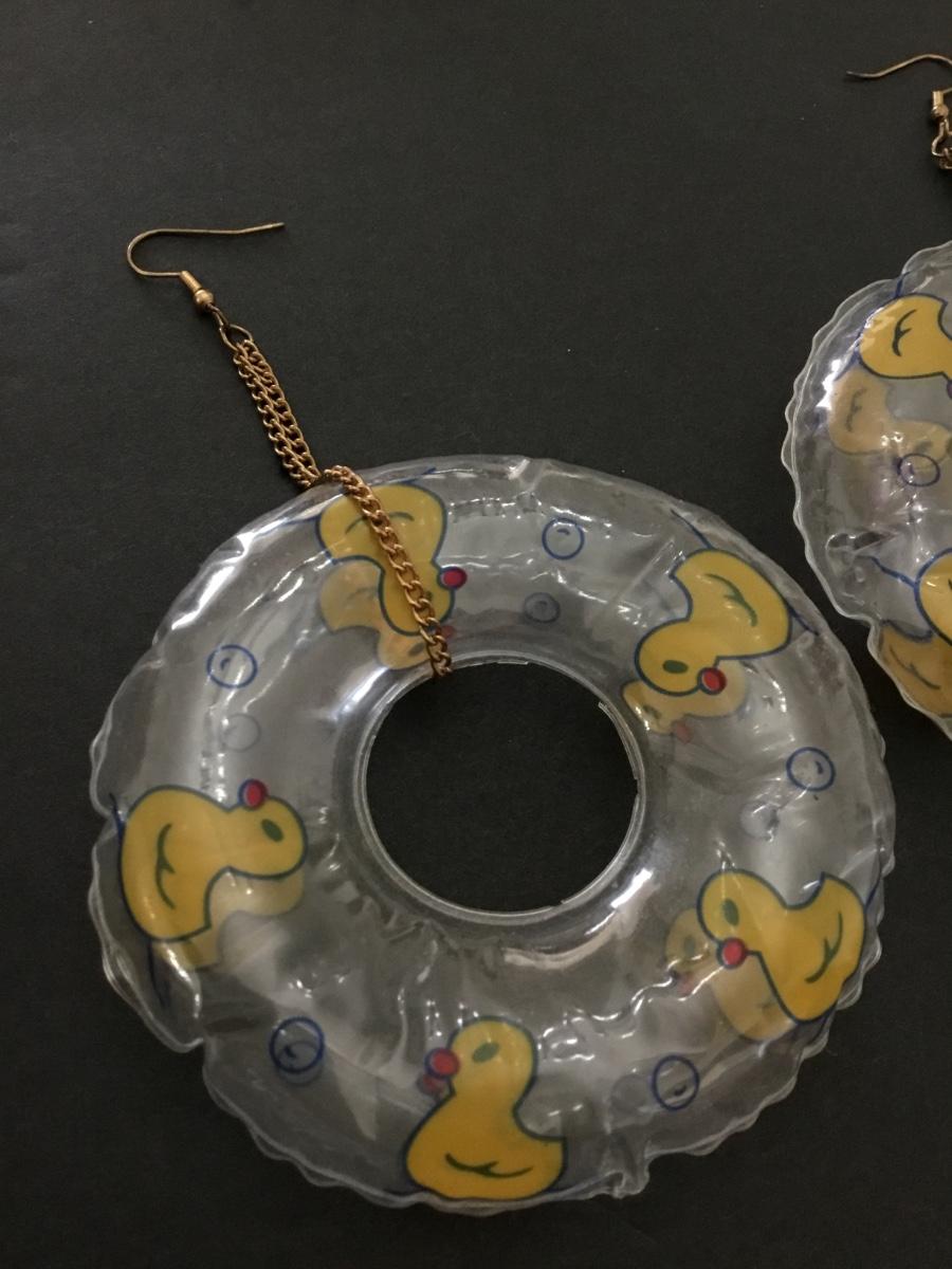 Fun, quirky, rubber, ducky, inflatable, ring, earrings