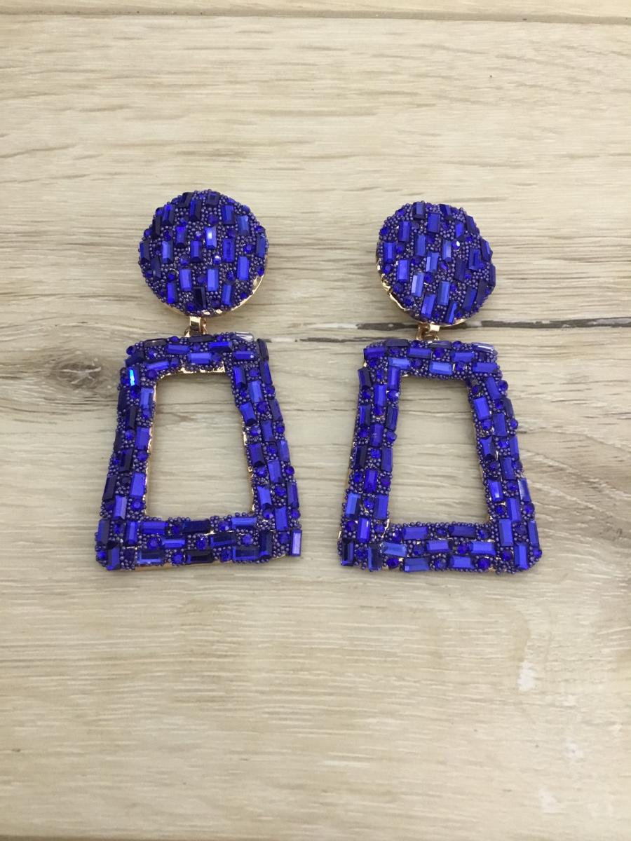 Fun , super cute, large blue colored crystal earrings