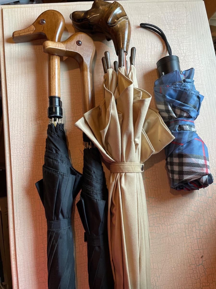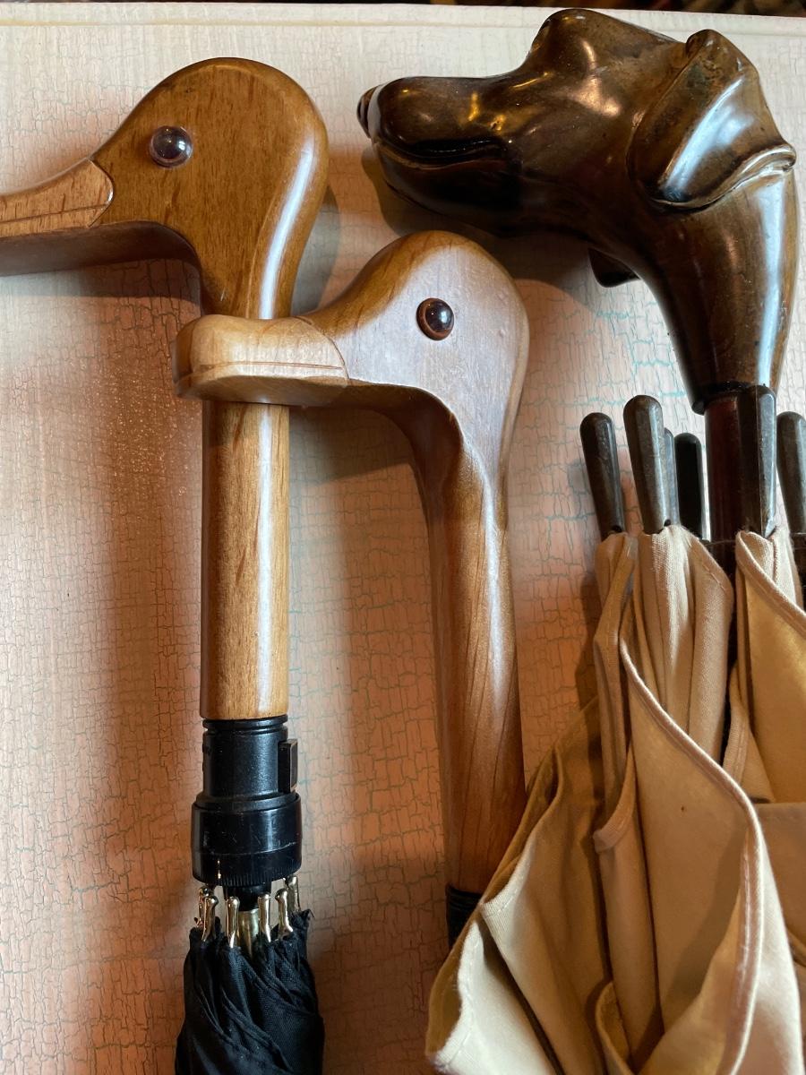2 duck head, 1 dog and regular umbrella