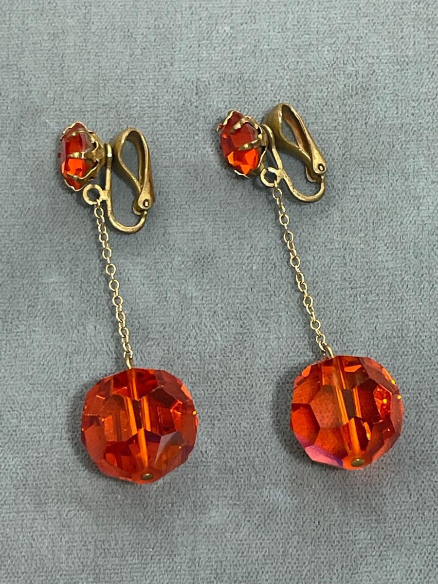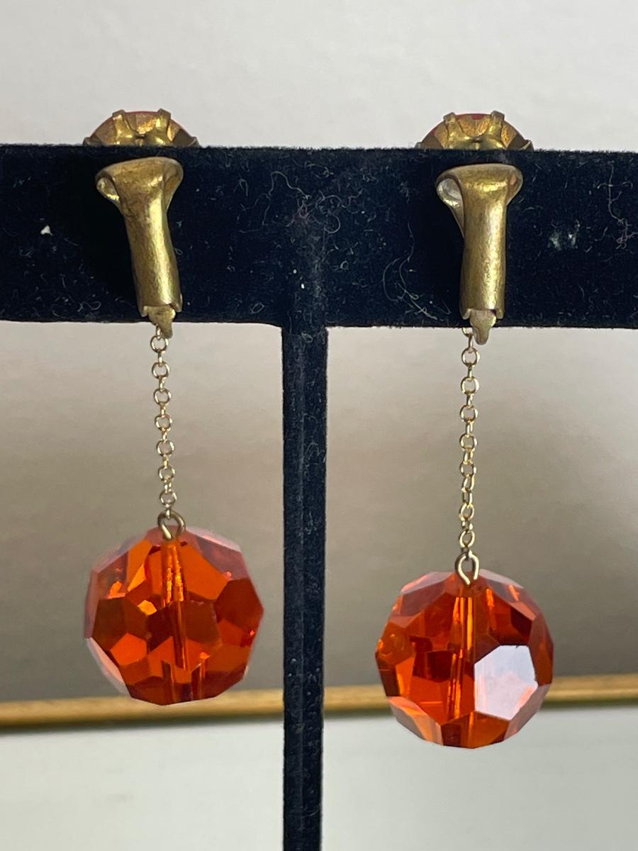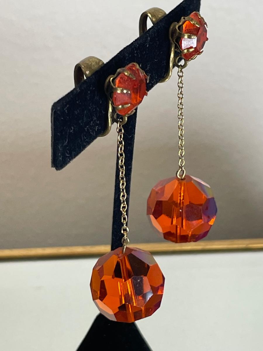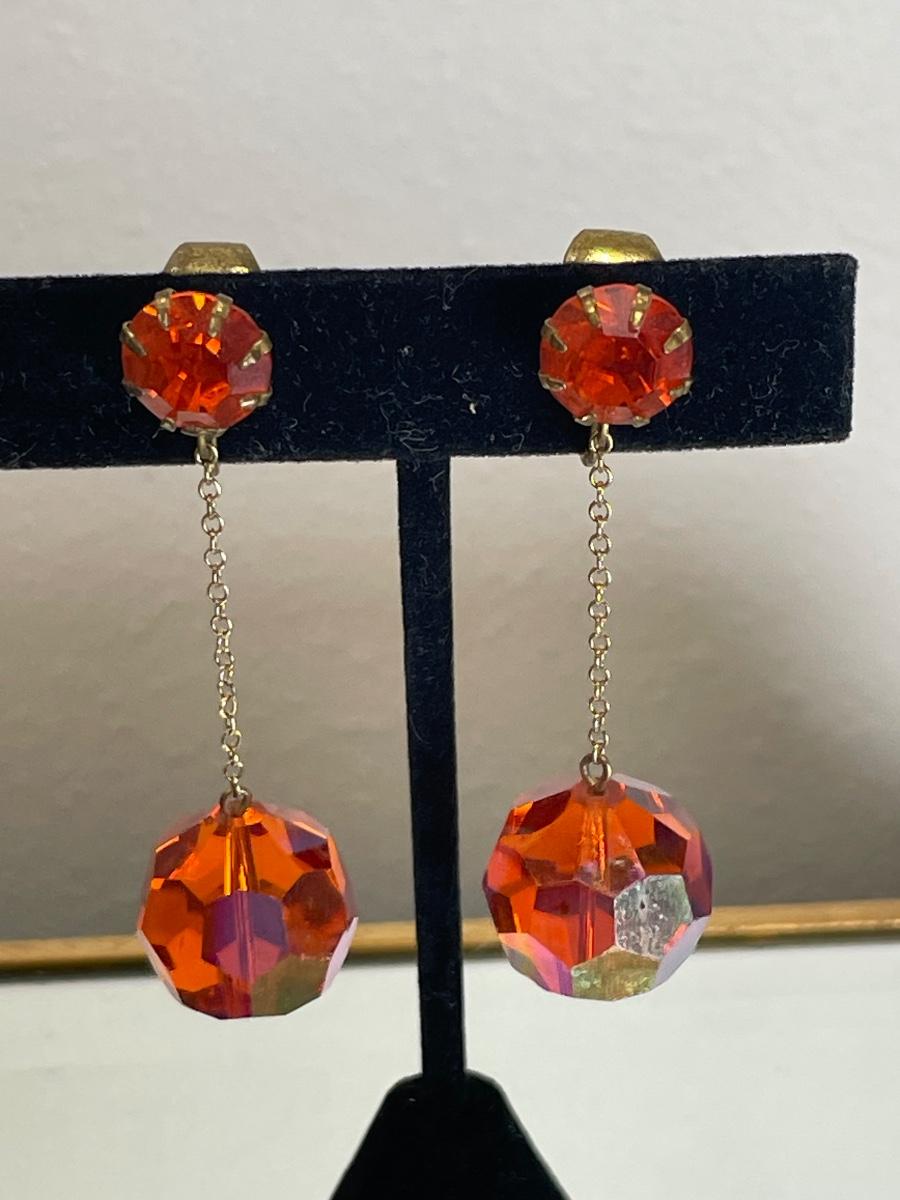 Faceted large glass beads on gold tone chain. 2” + drop.