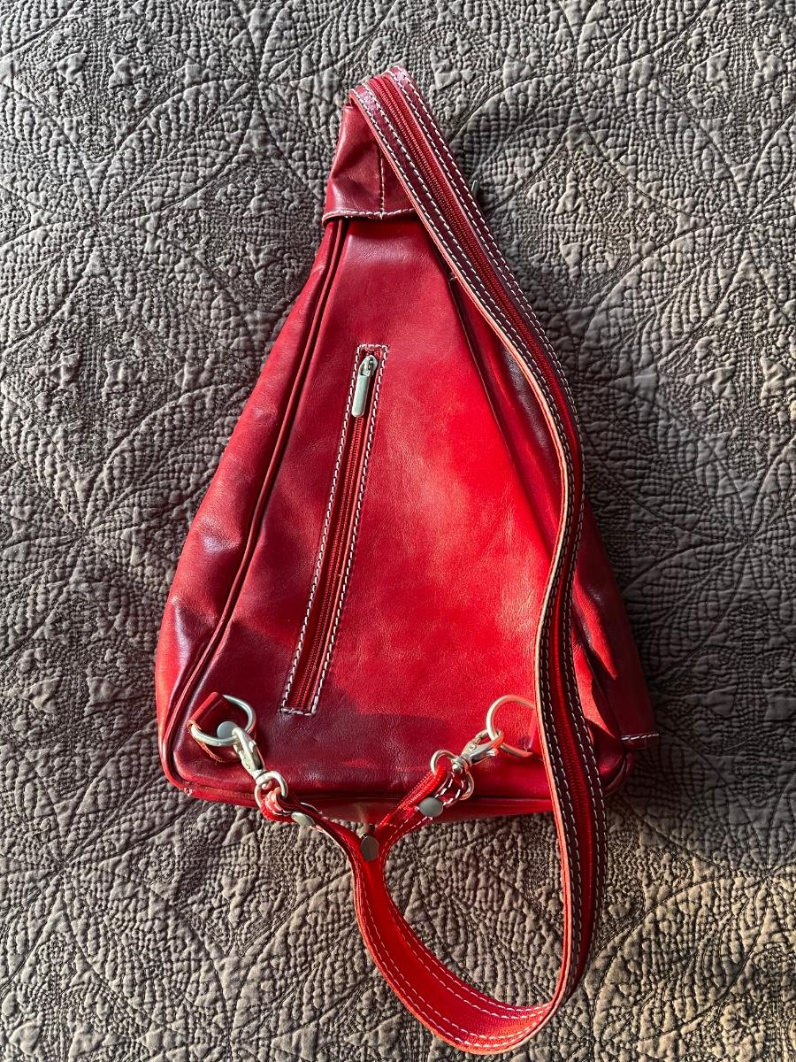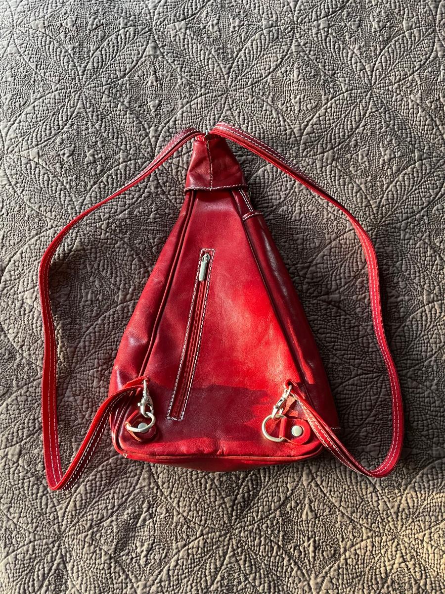 This purse has never been used. Fun retro. About 12" tall. Unzips into a backpack