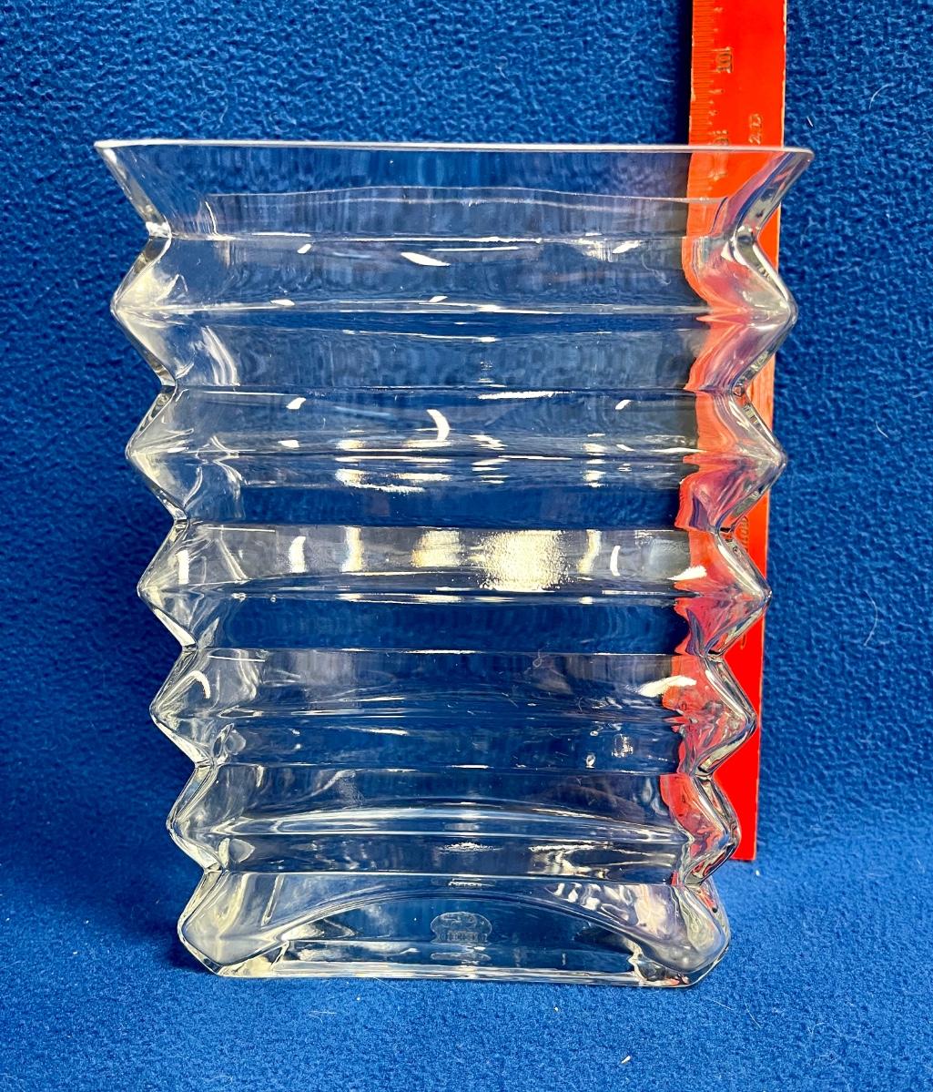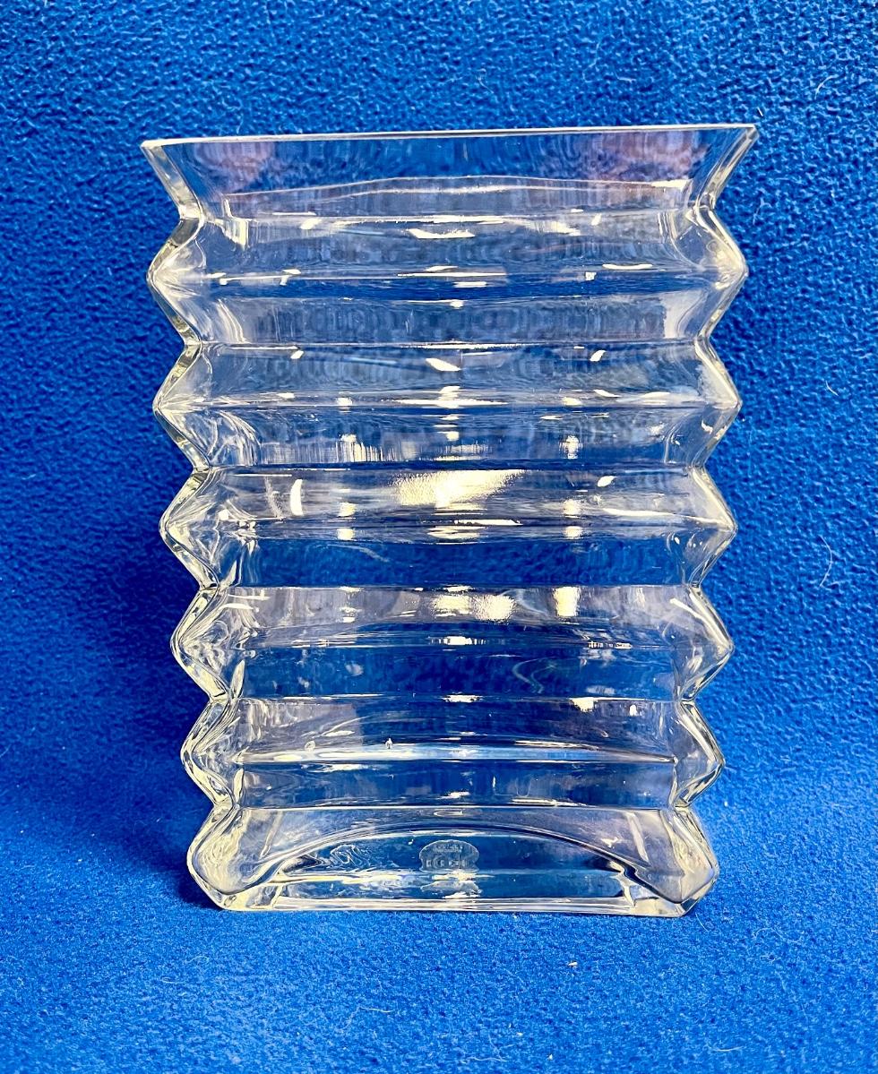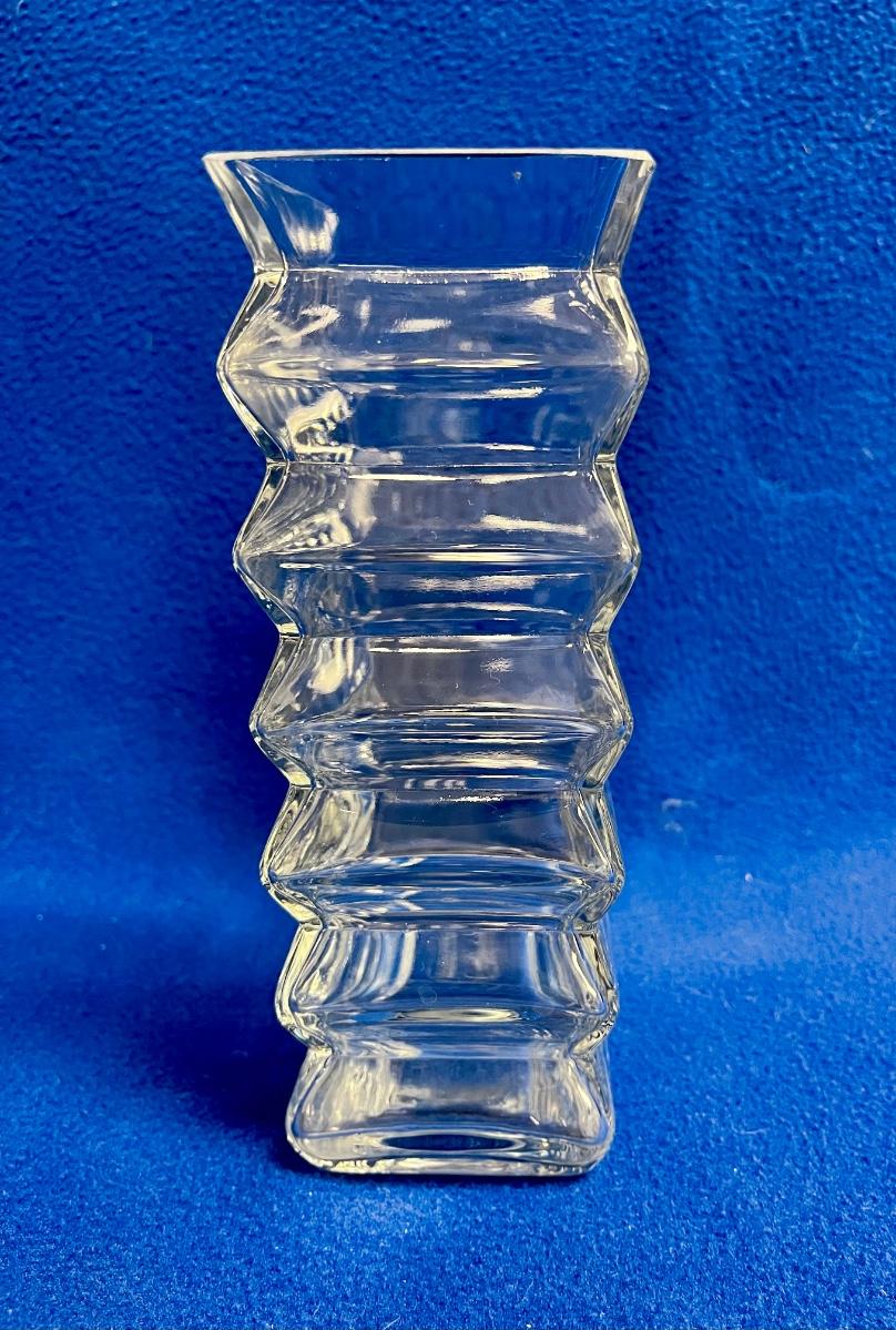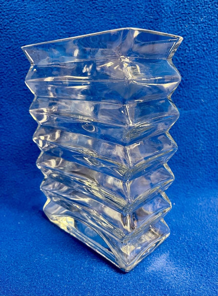 Funky accordion shaped glass vase. Under 8" size. Good condition.