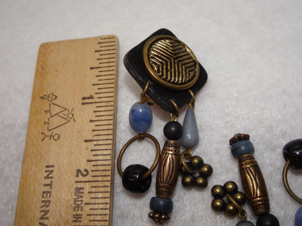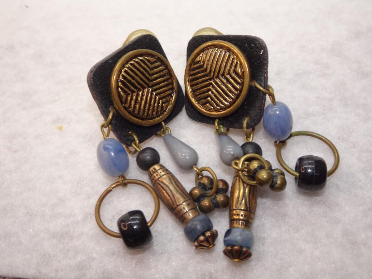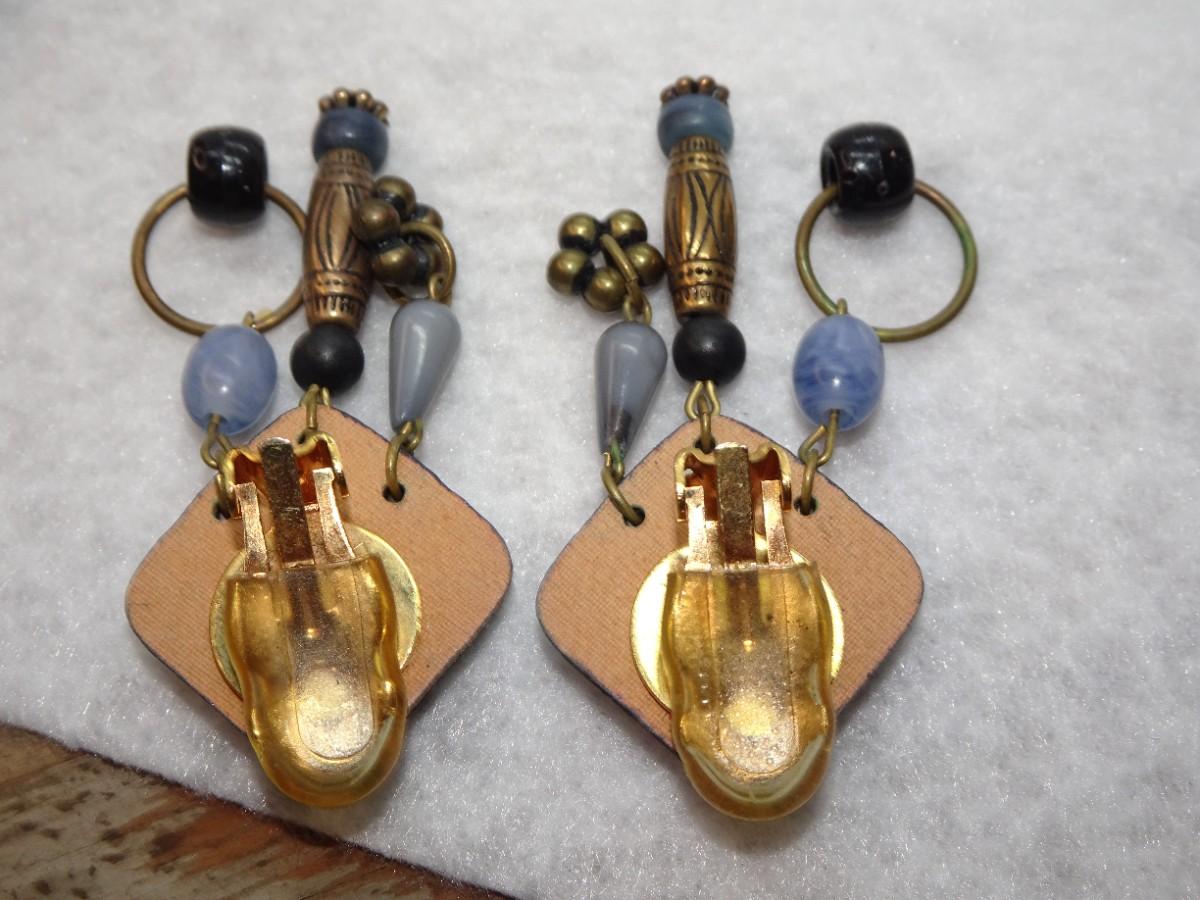 Funky Black & Blue Tribal Light Weight Clip On Earrings