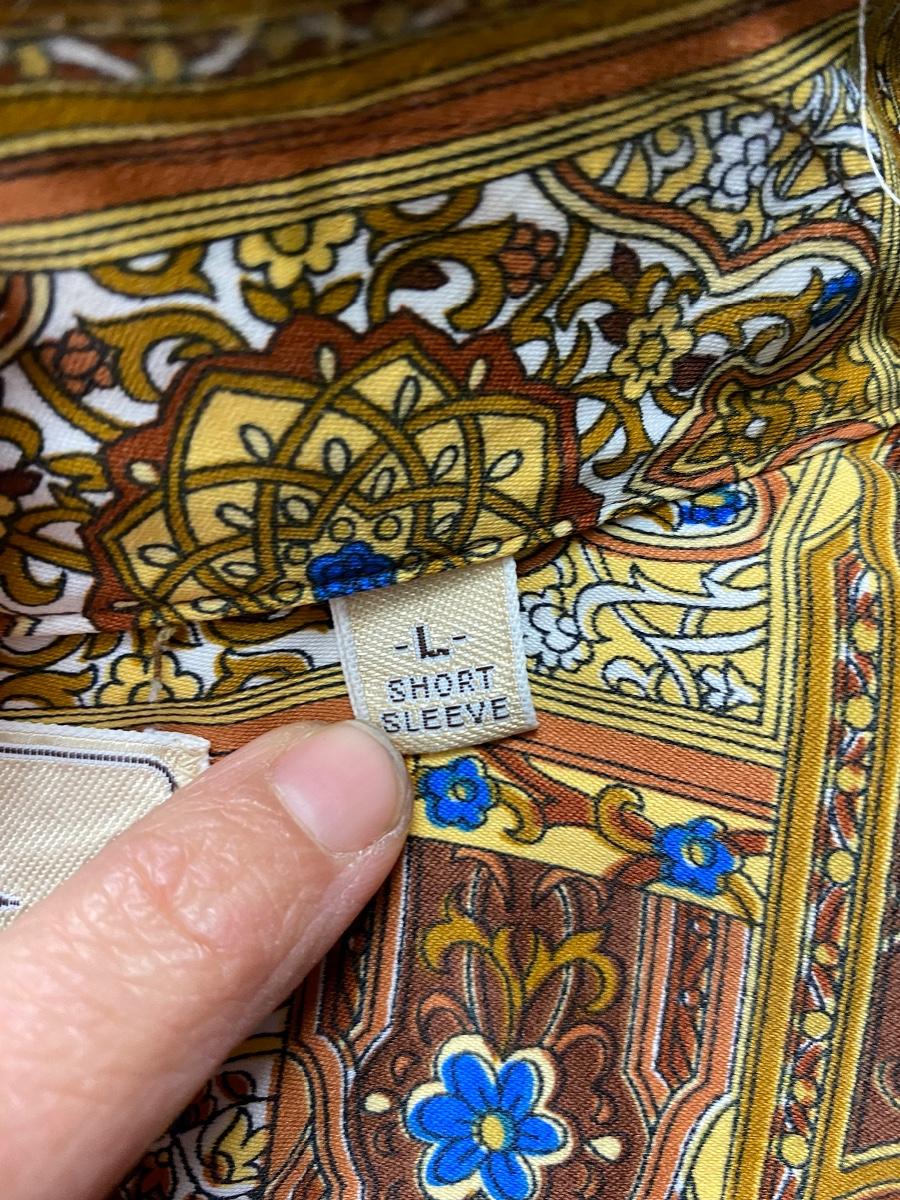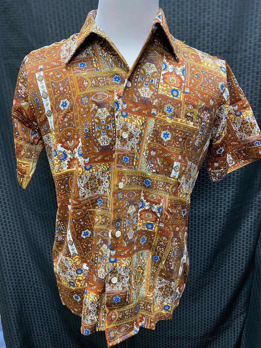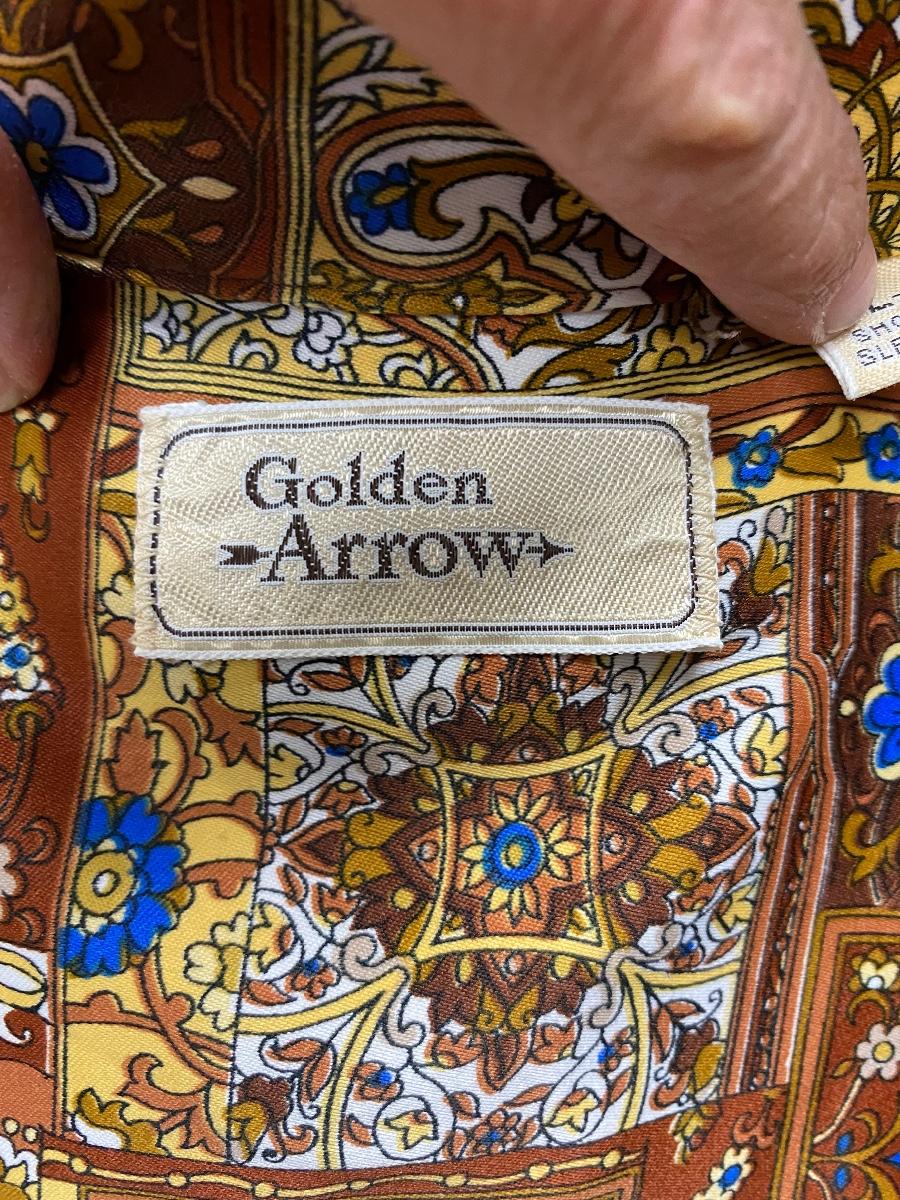 Funky Vintage Men's Button Front Brown Paisley Shirt. Size Large from Golden Arrow. In good condition, no spots, stains, or holes noticed.