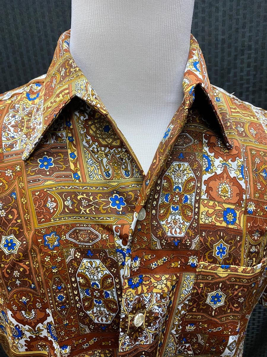 Funky Vintage Men's Button Front Brown Paisley Shirt Large Golden Arrow