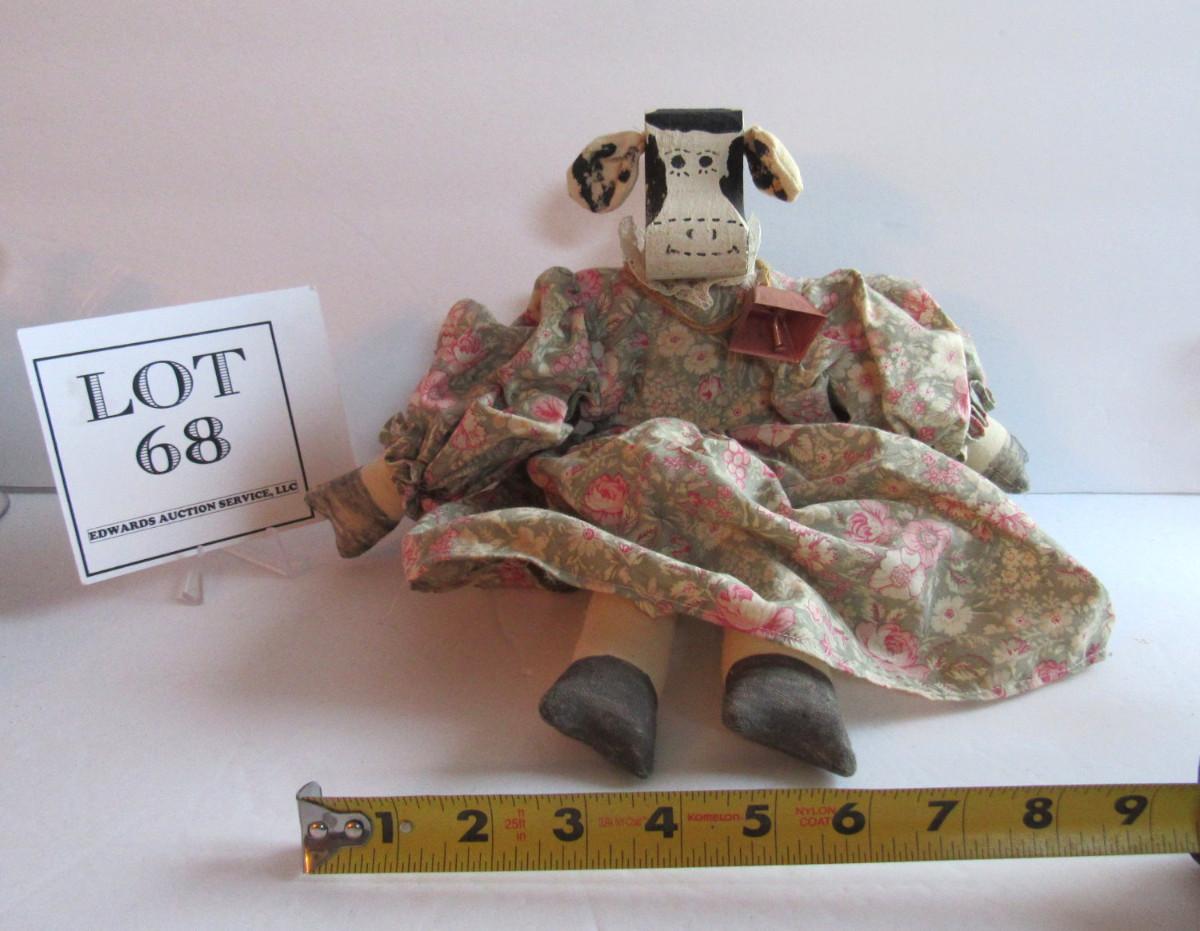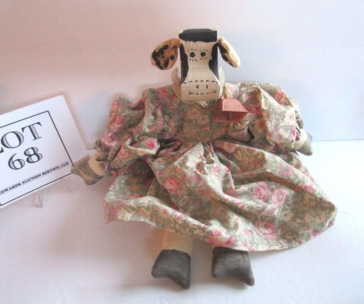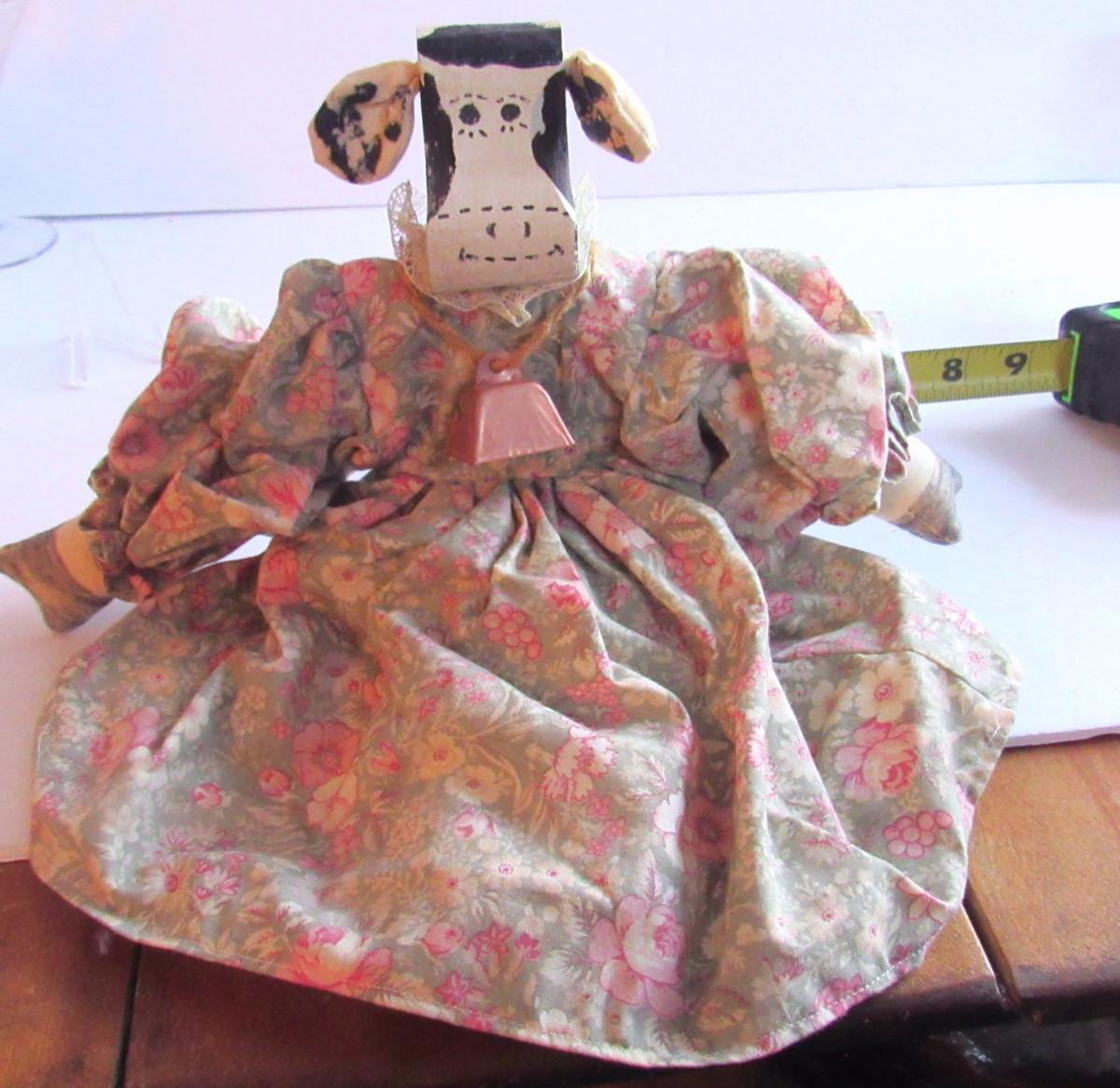 Funny Miss Cow Shelf Sitter, Wood and Fabric, Hand Made