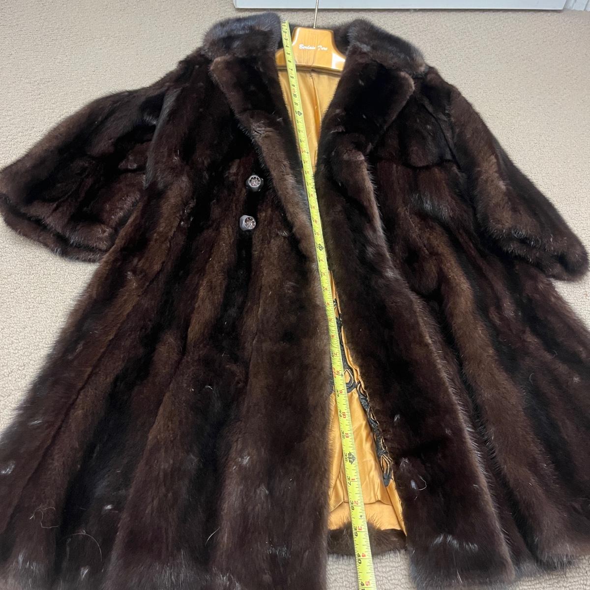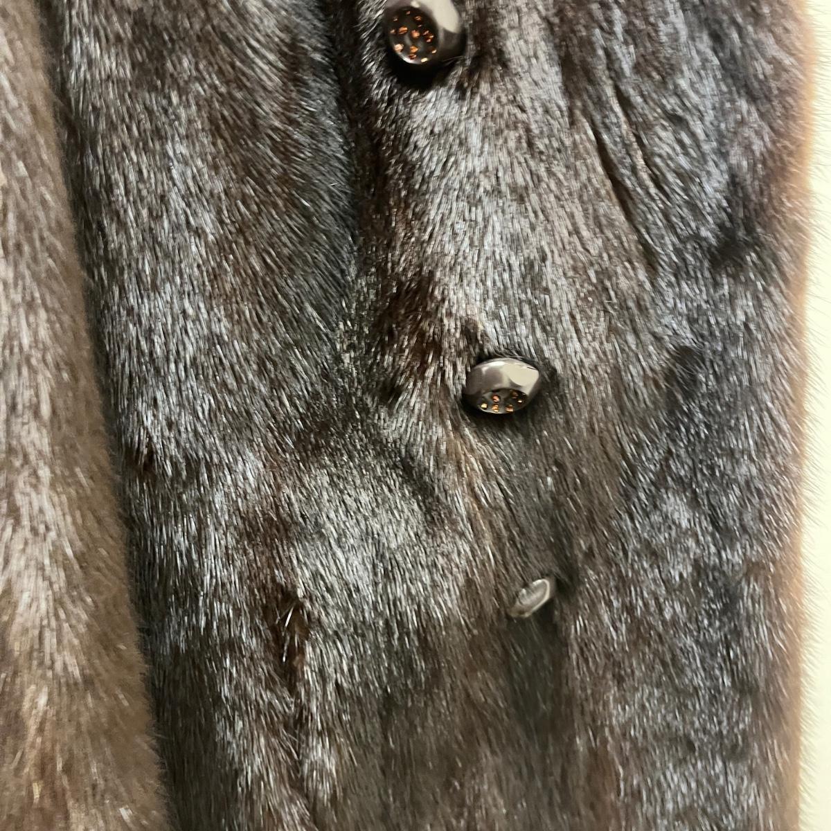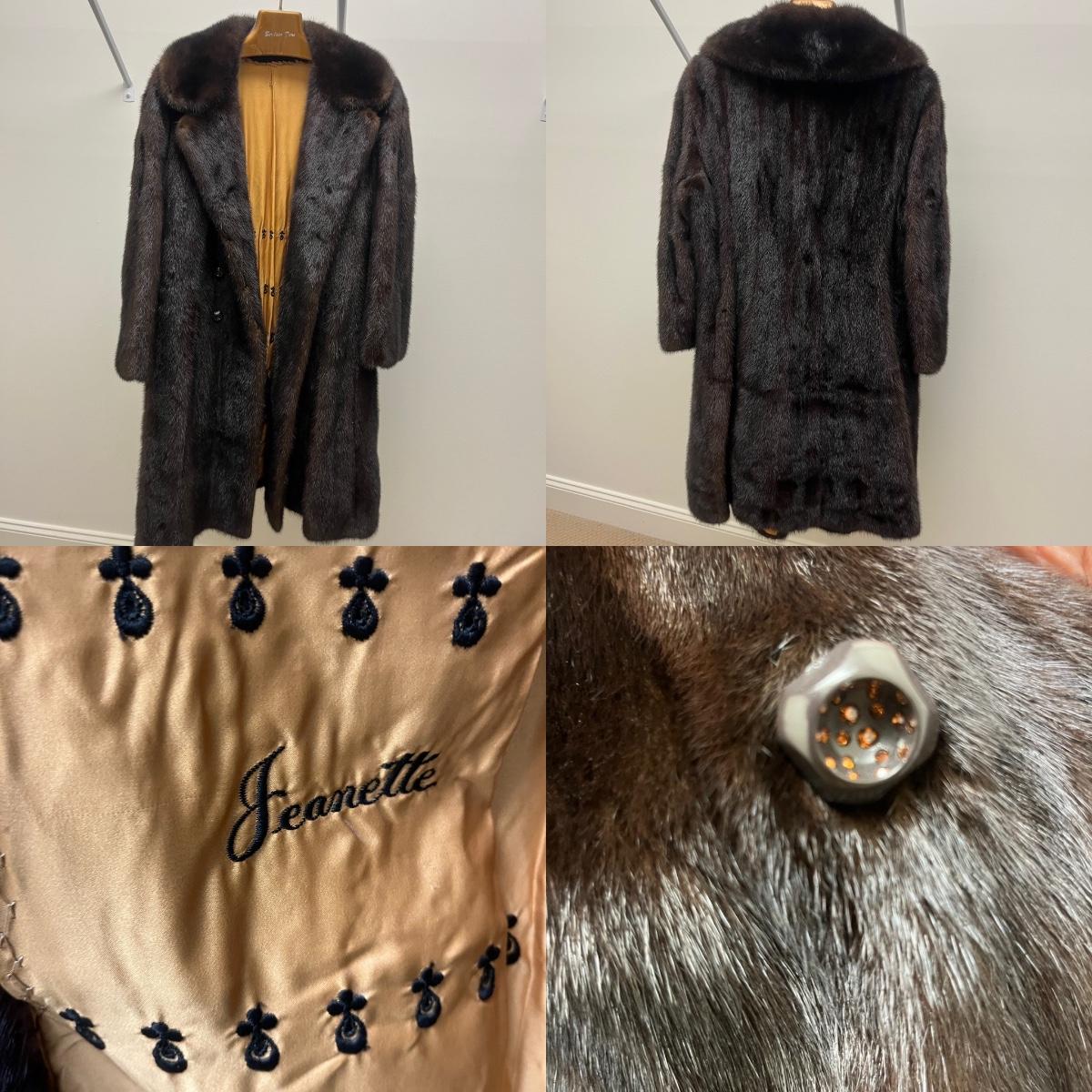 Lot includes a stunning fur coat with unique buttons with orange colored stones in them.