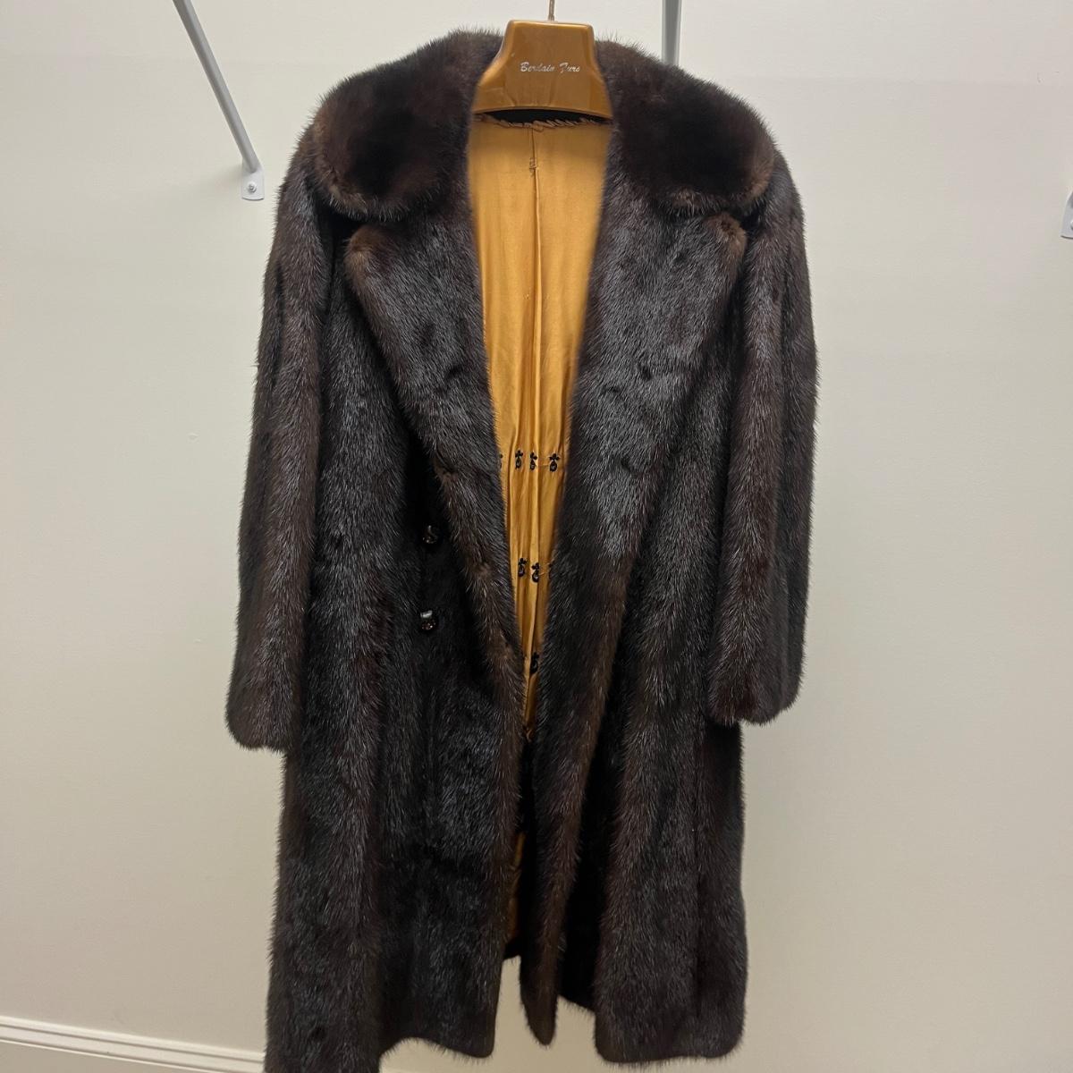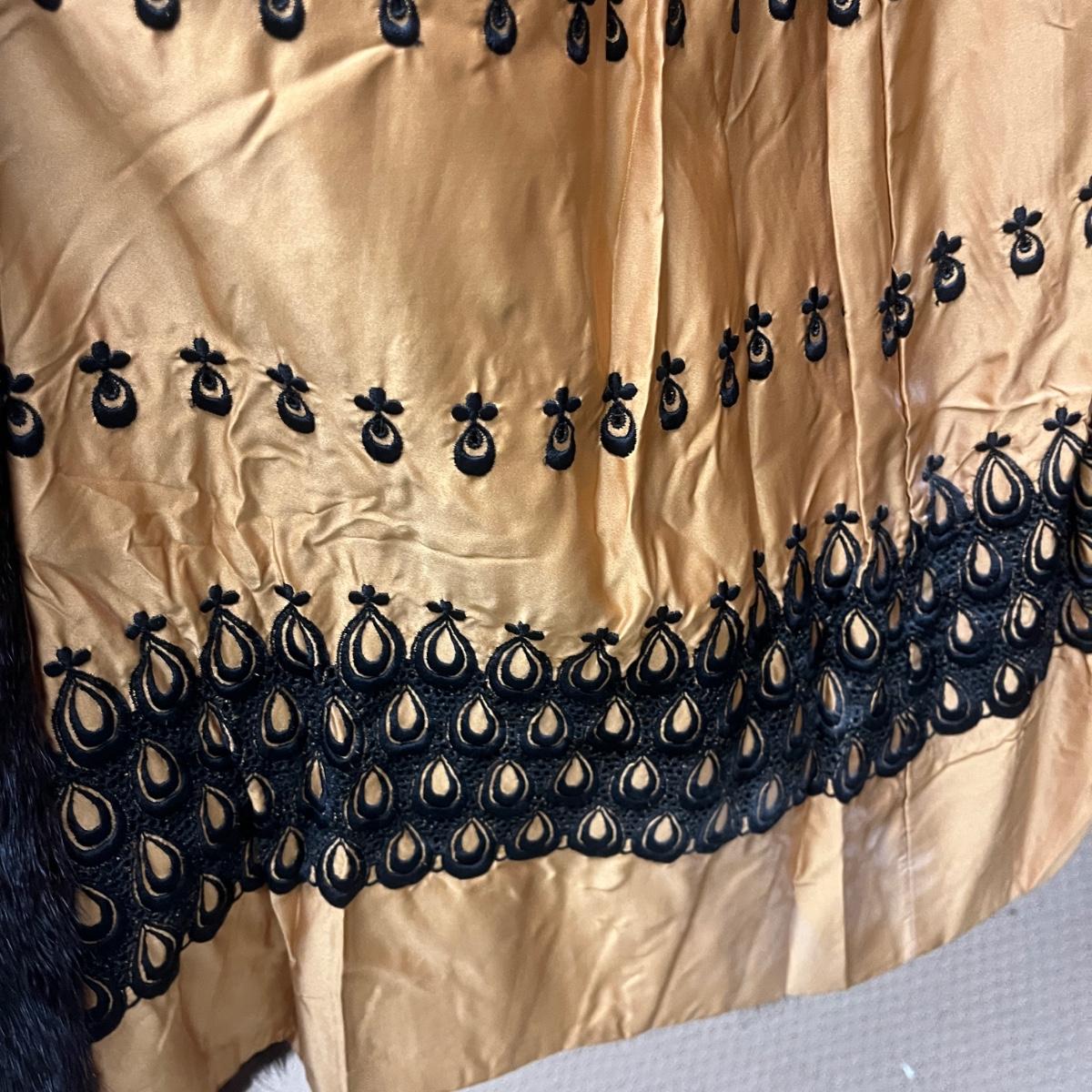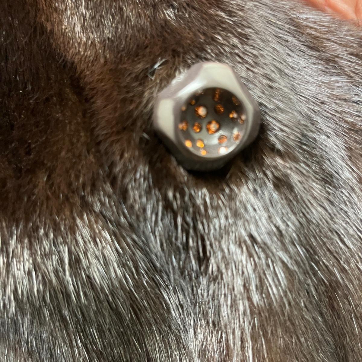 Lot includes a stunning fur coat with unique buttons with orange colored stones in them.