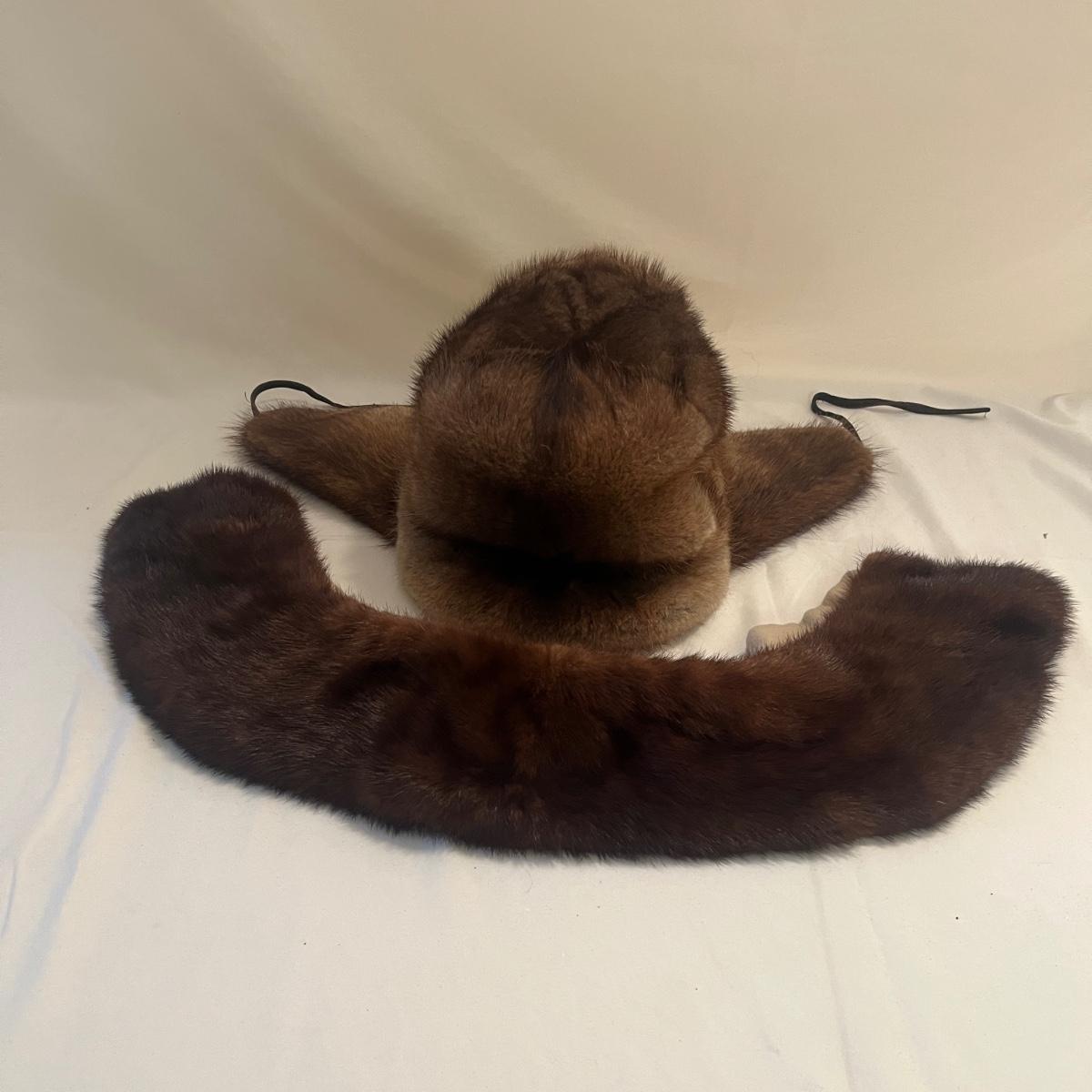 Lot includes an elegant vintage trapper hat. This fur hat has ear flaps and a fur collar to go with it. Collar measures 22” x 8”.