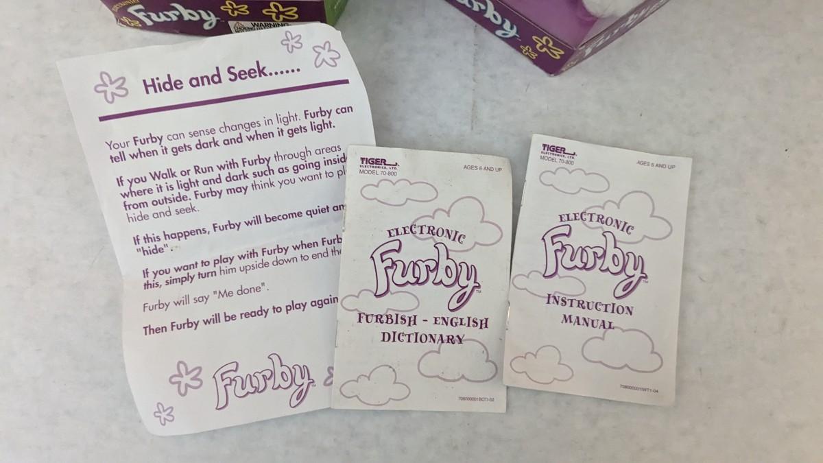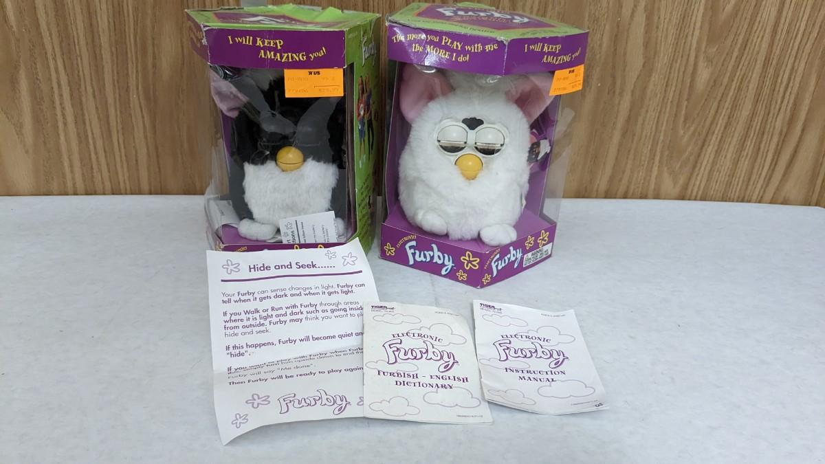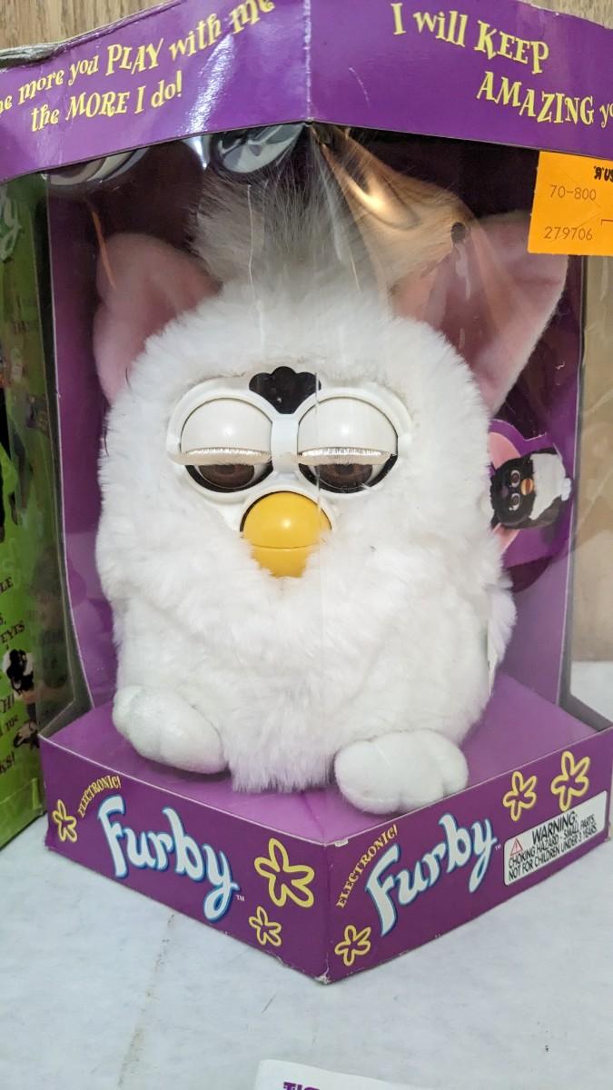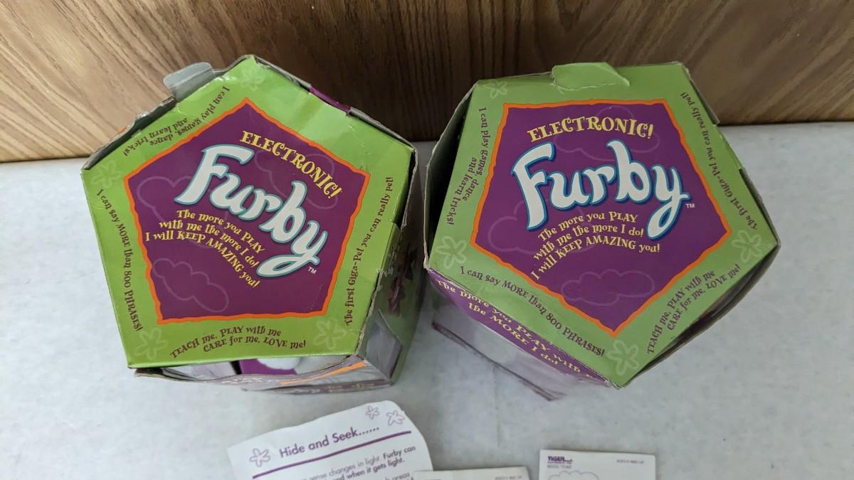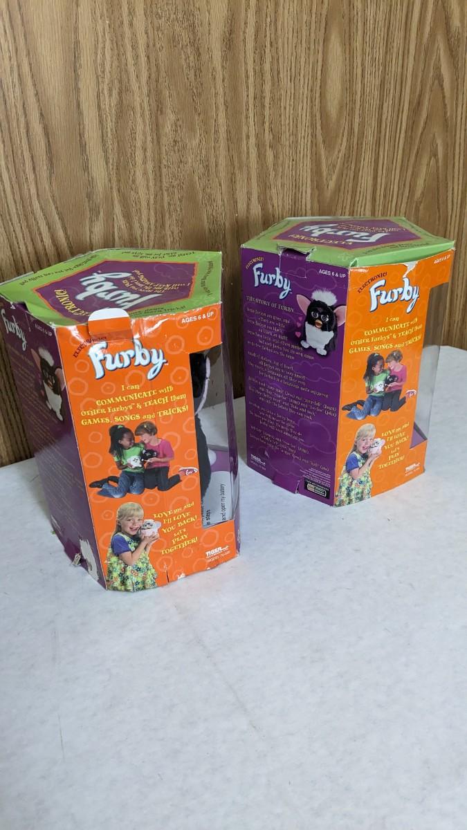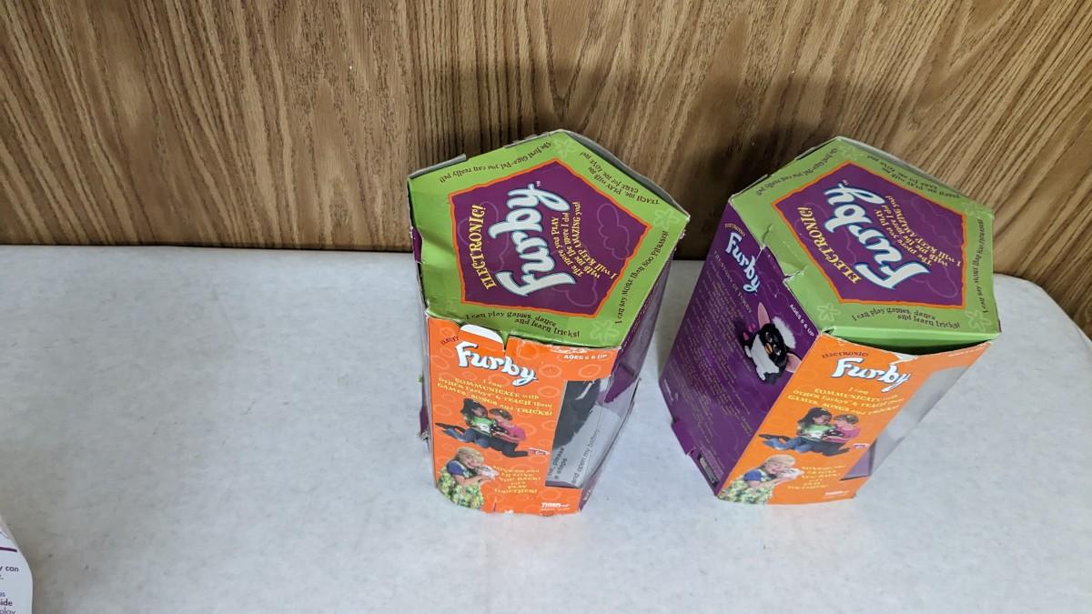 2 in package Furby's. Note wear to packages, Furby's are in great condition. bdrm1