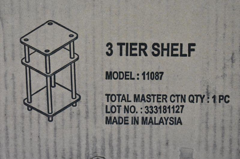 Furinno 3 Tier Shelf Reversible Shelves to be White or Black, Has White Legs/Posts - New