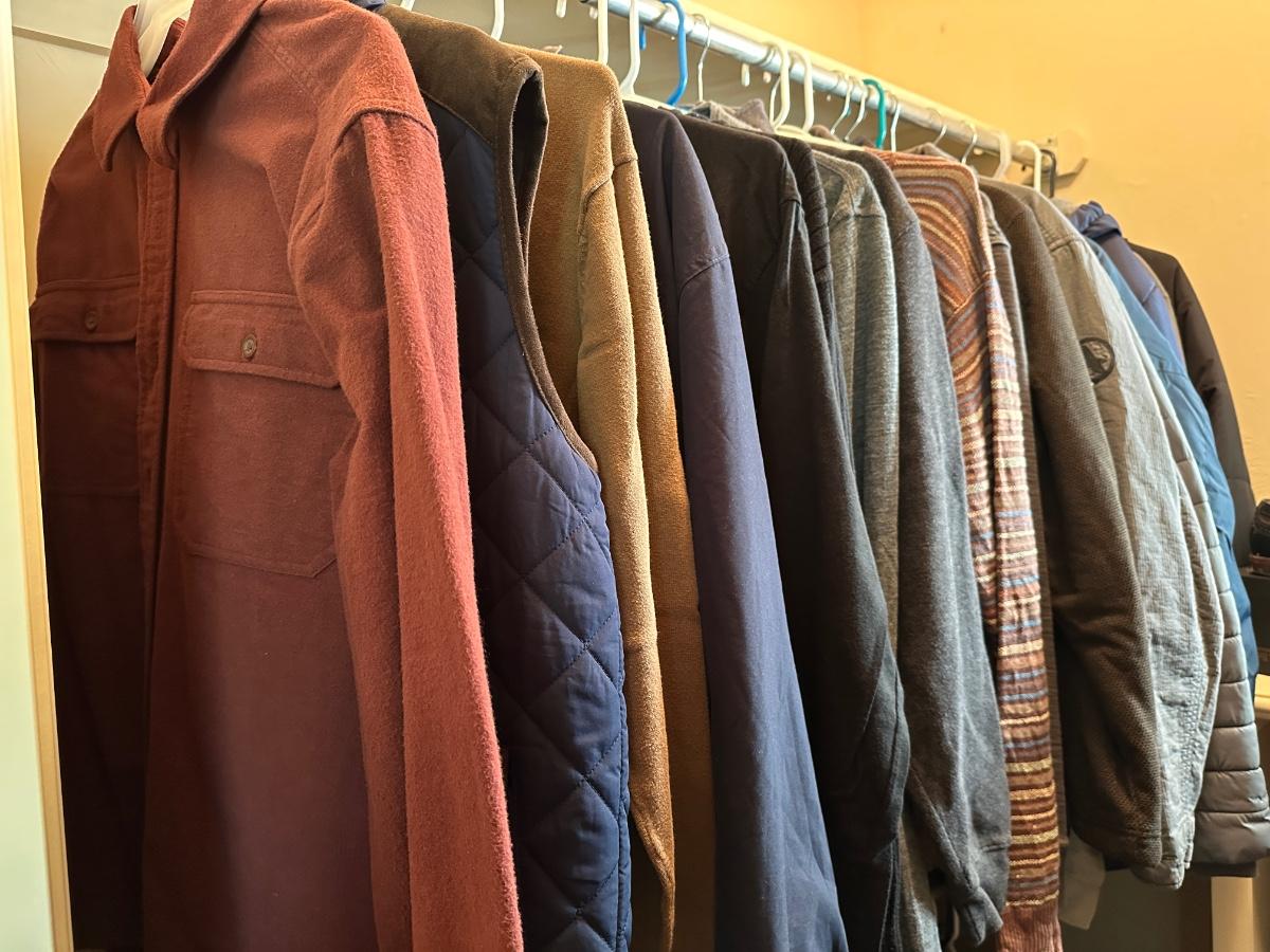 There is a large selection of clothing in this Online sale. You are bidding on all the items in the photo. Everything in the photo is included except any displays and items used for sizing. We do not have time to measure individual items