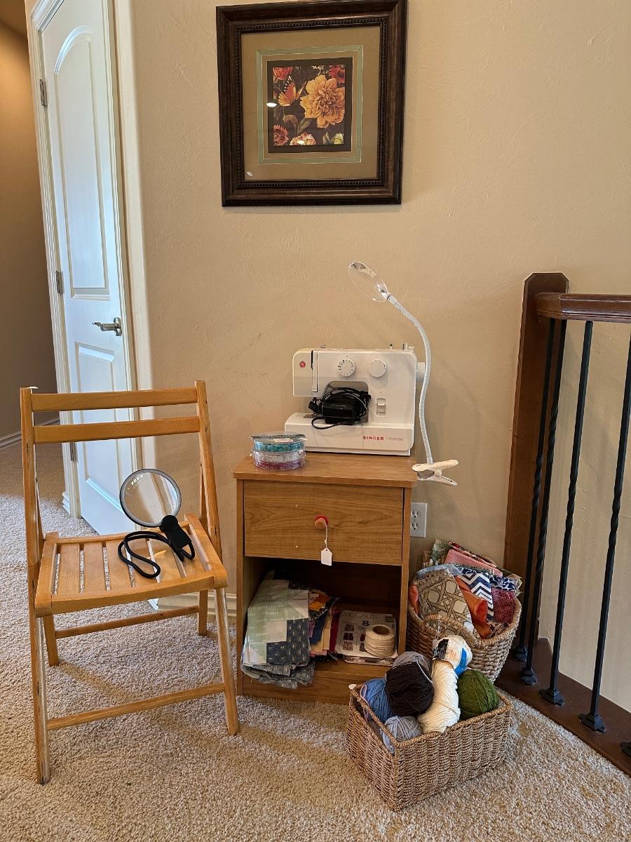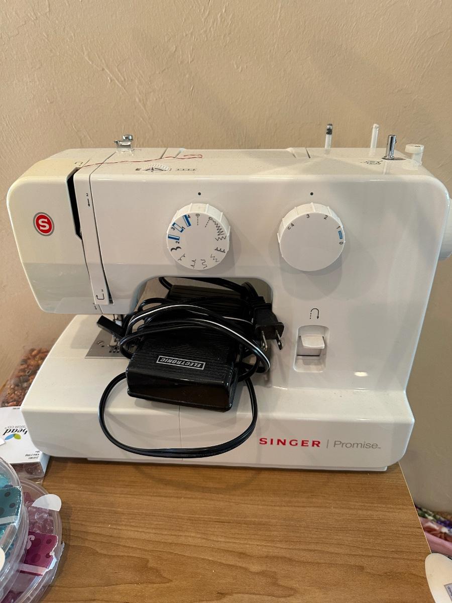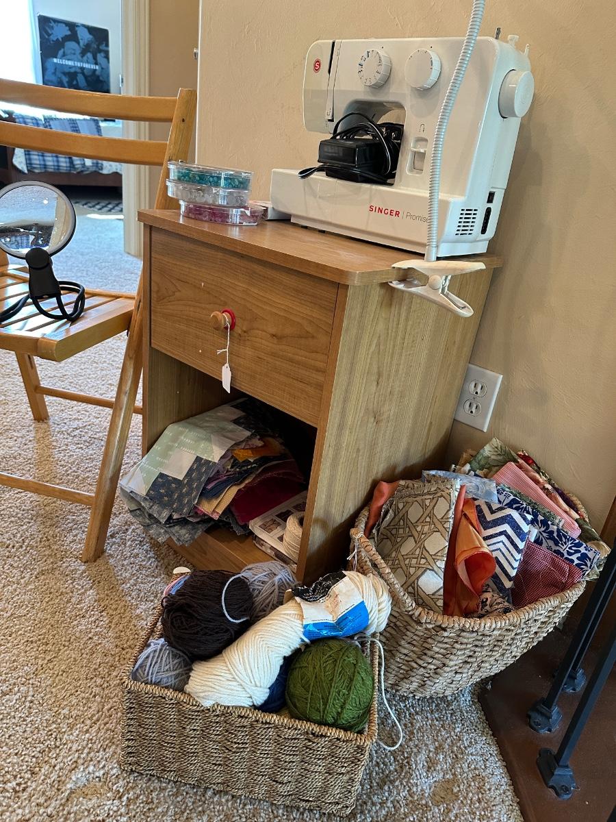 There is a selection of two sewing machines in this Online sale. You are bidding on all the items in the photo. Everything in the photo is included except any displays and items used for sizing. We do not have time to measure individual items