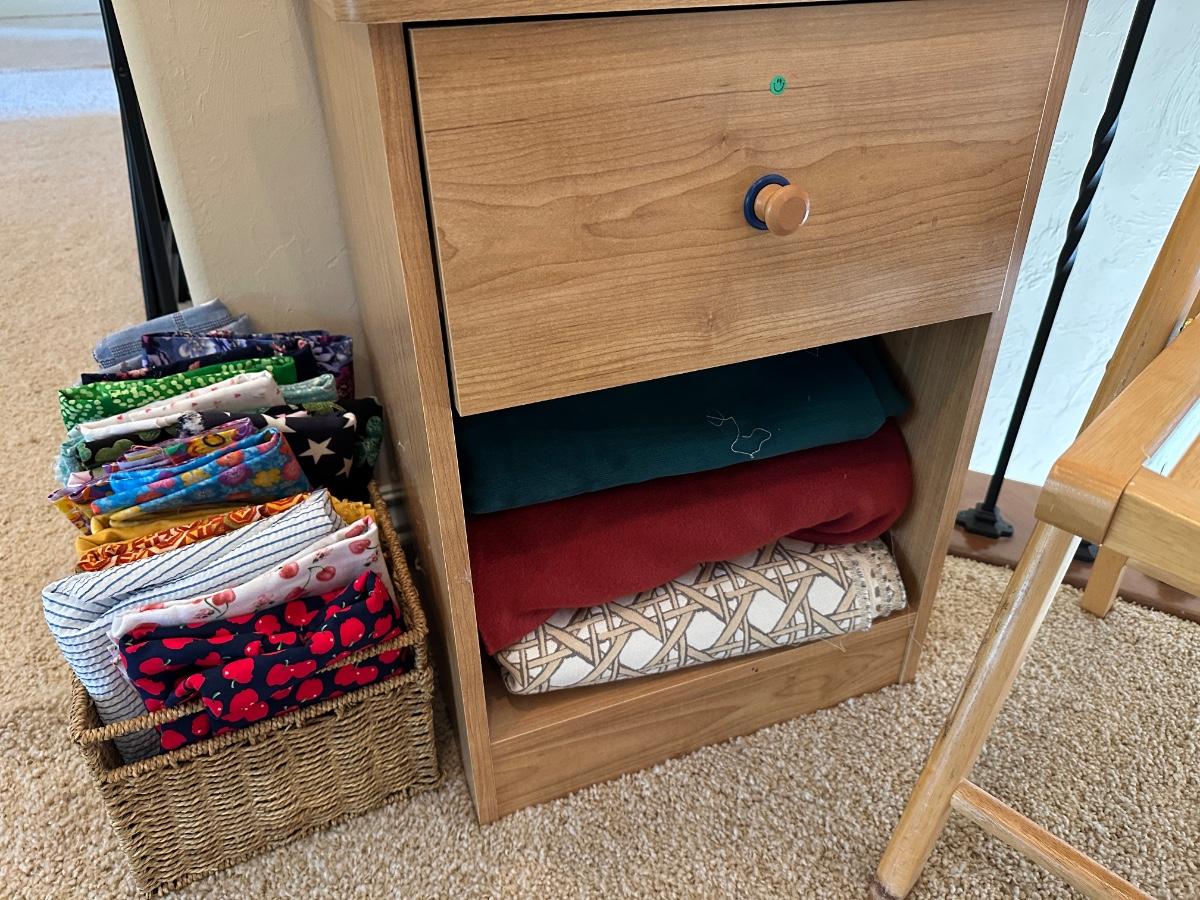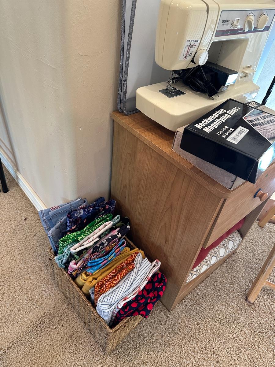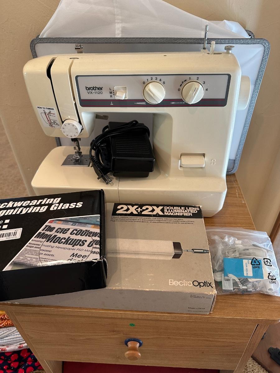 There is a selection of two sewing machines in this Online sale. You are bidding on all the items in the photo. Everything in the photo is included except any displays and items used for sizing. We do not have time to measure individual items