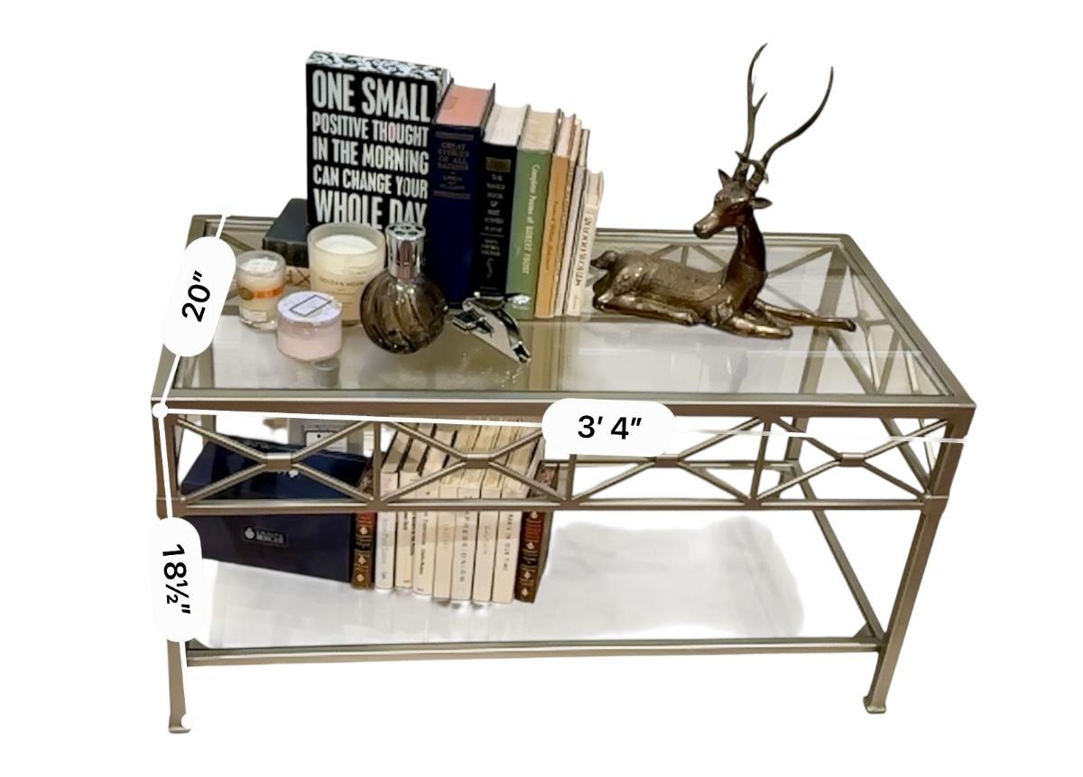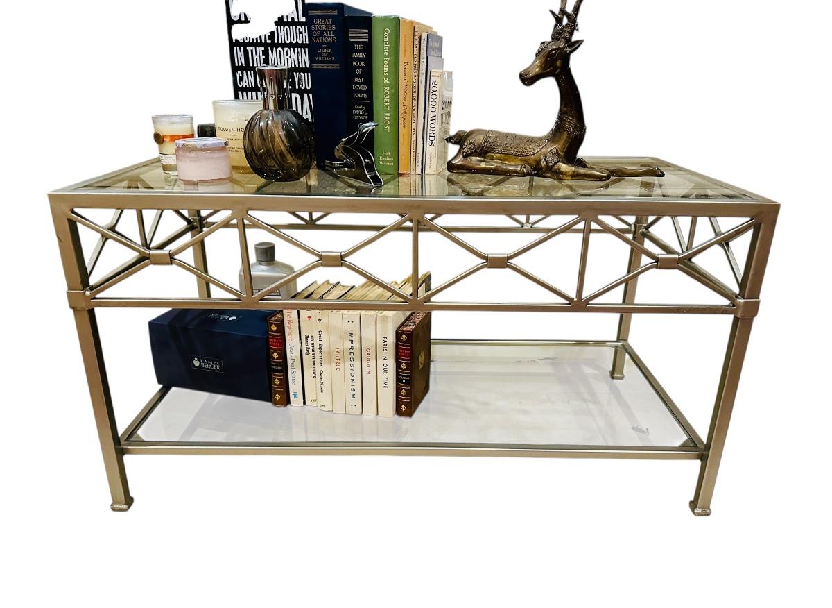 Furniture -Iron & Glass Table with Books, Lamp Berger, Brass