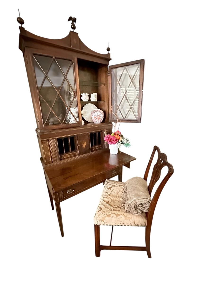 Furniture - Federal Style Inlaid Secretary with Tambour doors by Maddox of Jamestown NY w/ chair - Contents sold separately