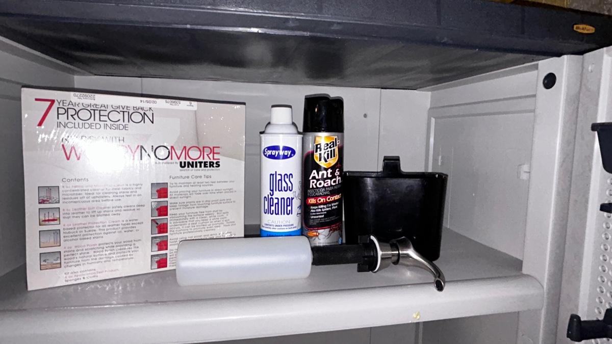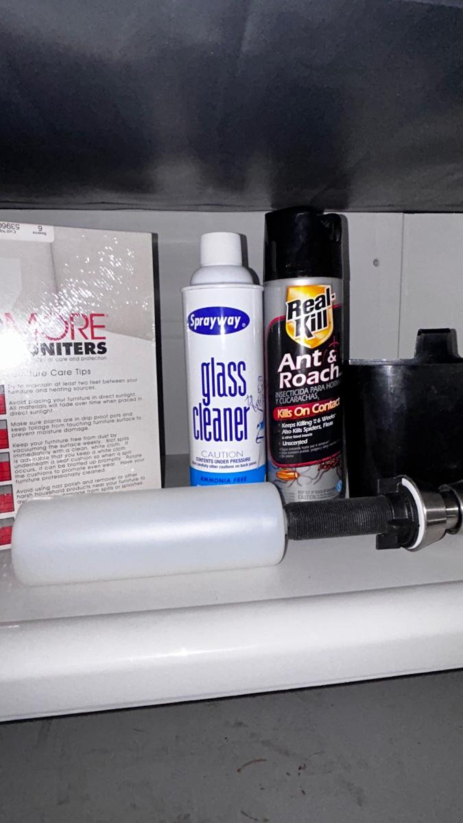 FURNITURE CARE CLEANING SYSTEM, GLASS CLEANER ANT AND ROACH SPRAY AND SOAP DISPENSER FOR SINK