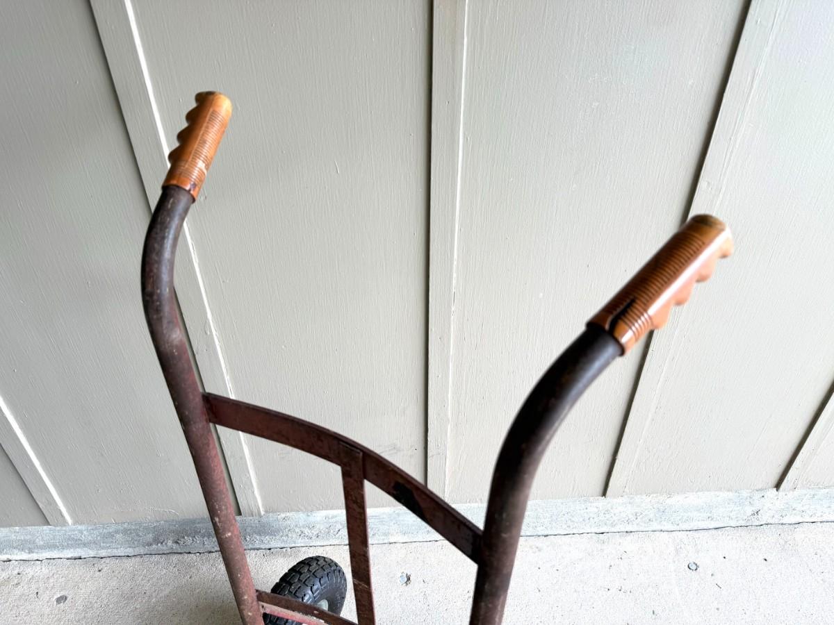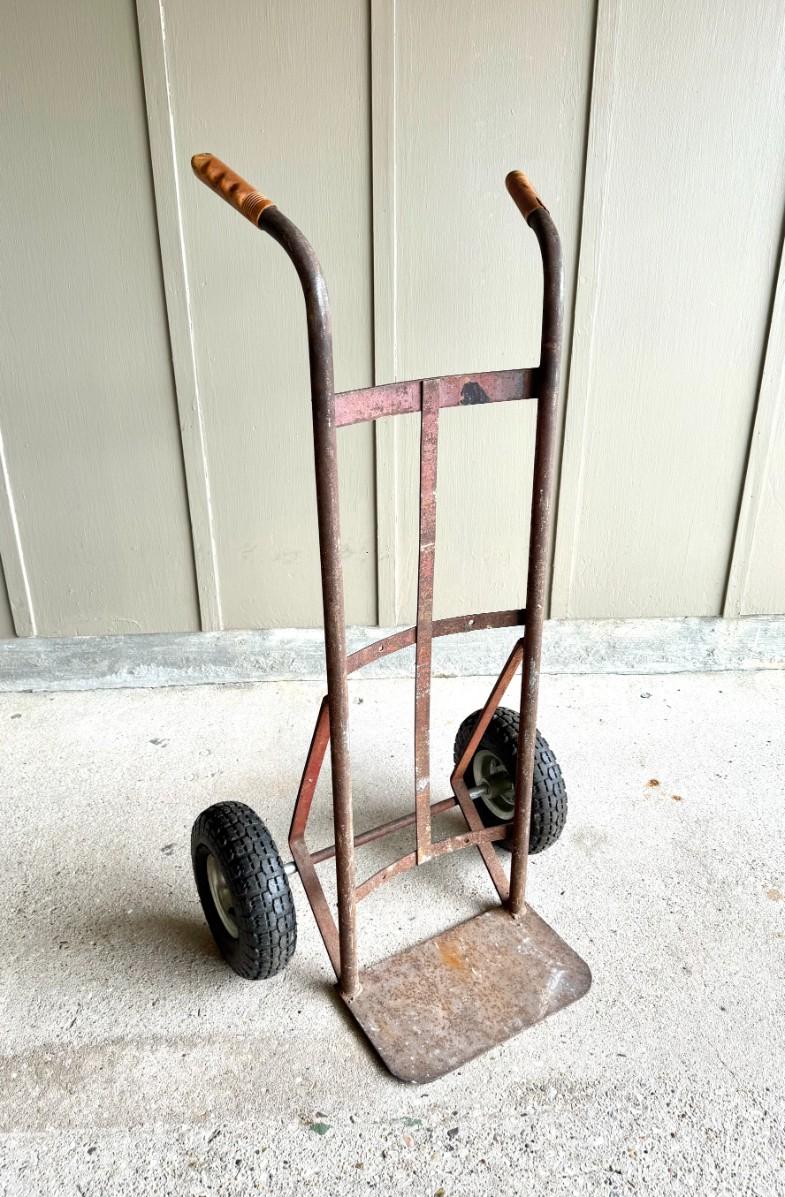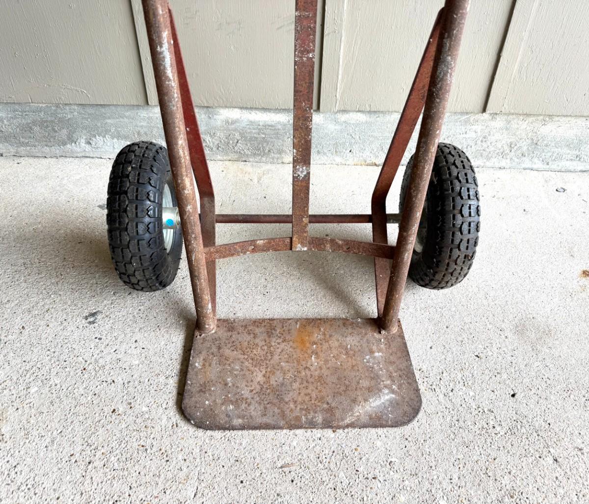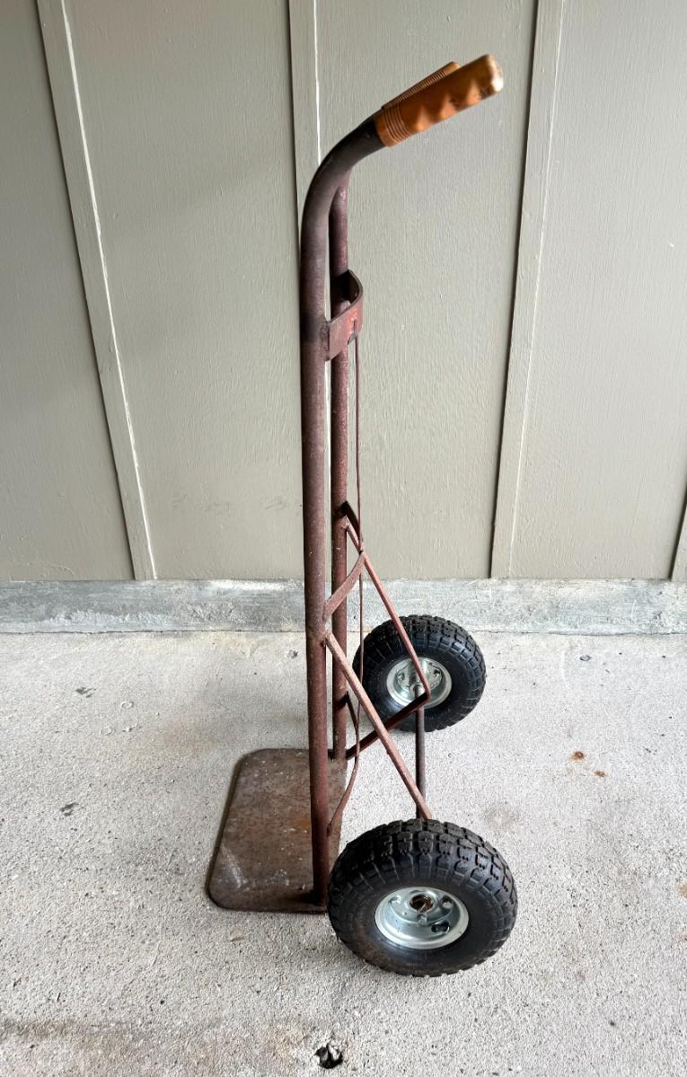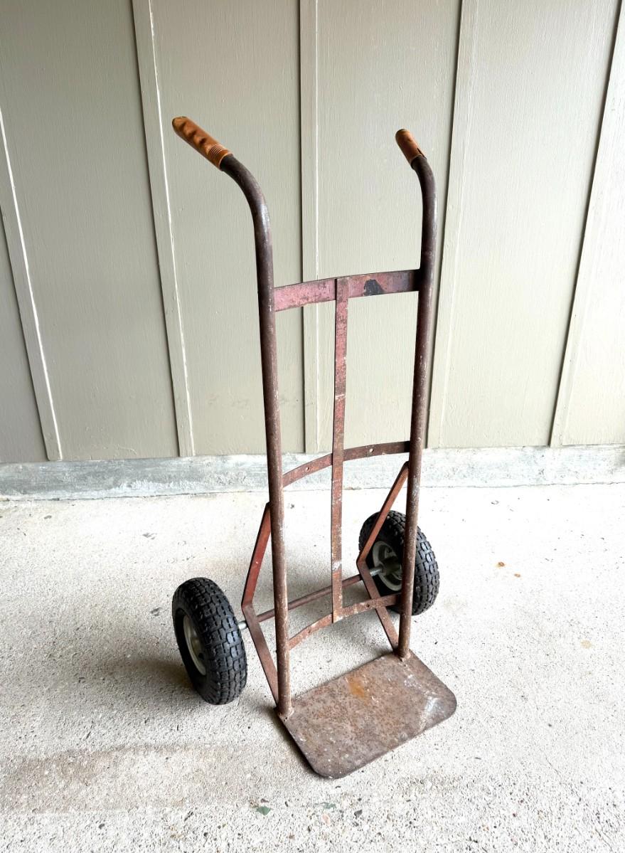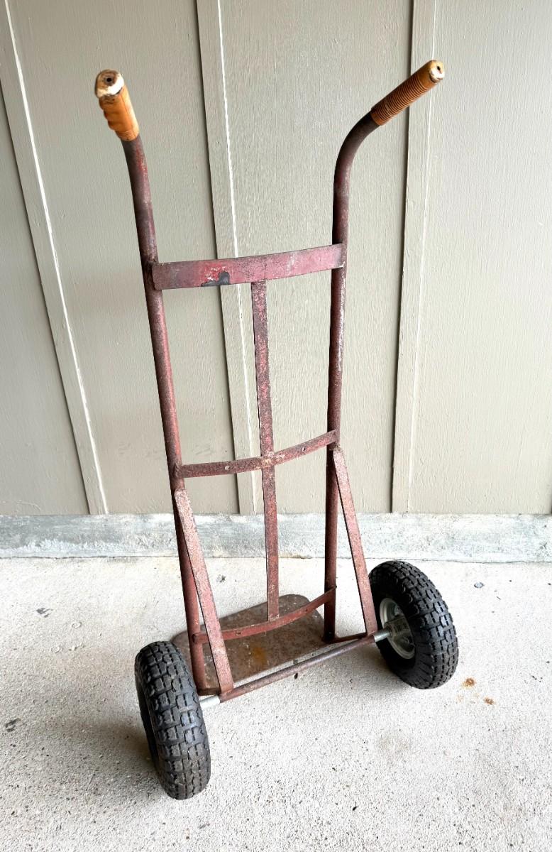 Measures 44" tall. 19" from handle to handle. Platform is 14" wide x 8" deep.