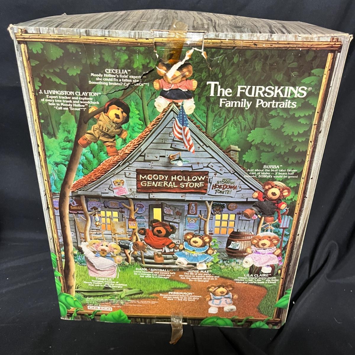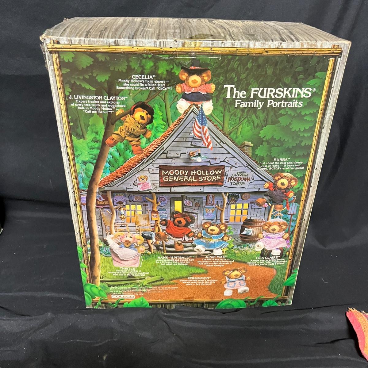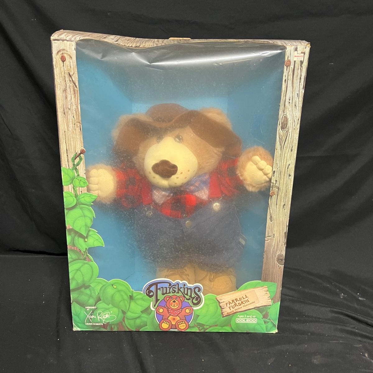 Lot includes three Furskins bears. All three bears have dirty boxes, but the bears appear to be clean. Largest box measures 8” x 18” x 25”H.