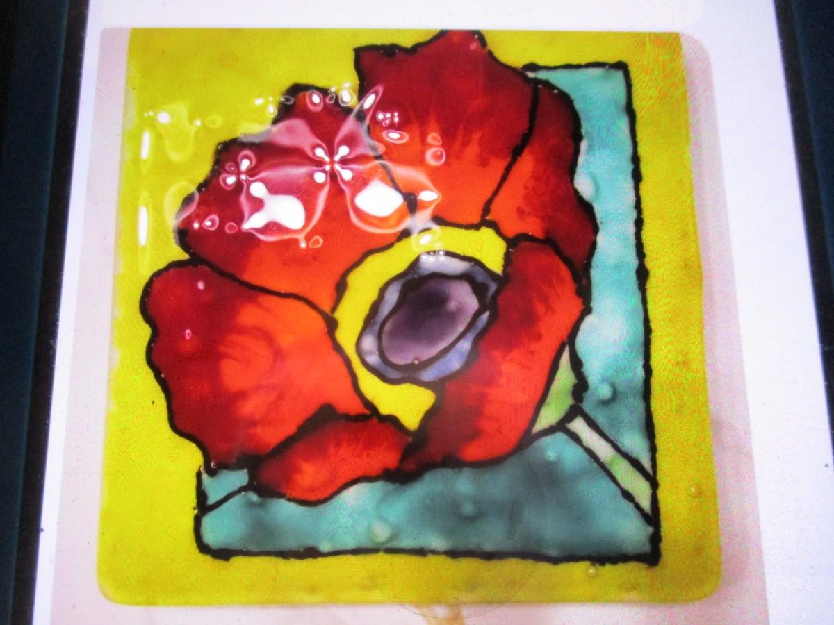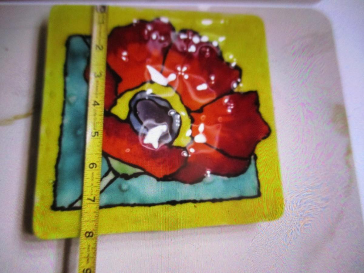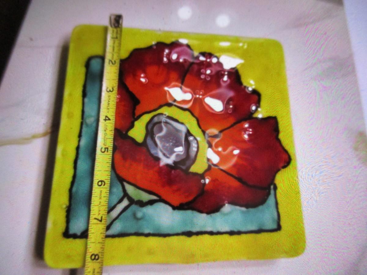 Fused Glass Flower Created & Signed By A Local Artist From Horse Shoe Approx 8" x 8"