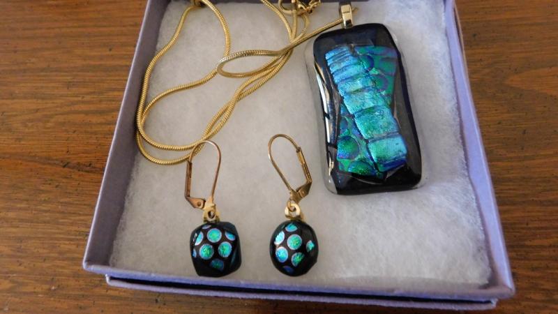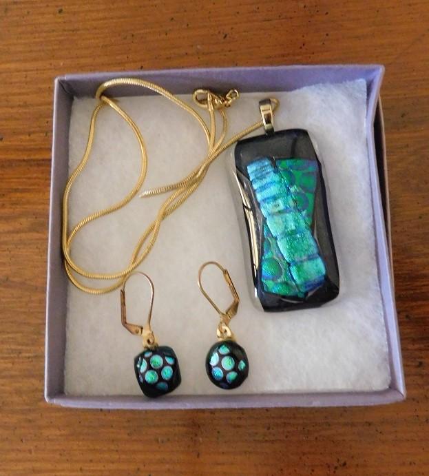 Fused Glass Necklace and Earring Set in fine condition by Terri Gibson.