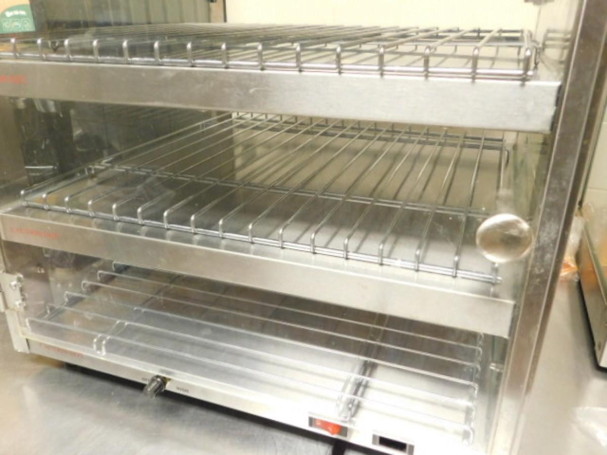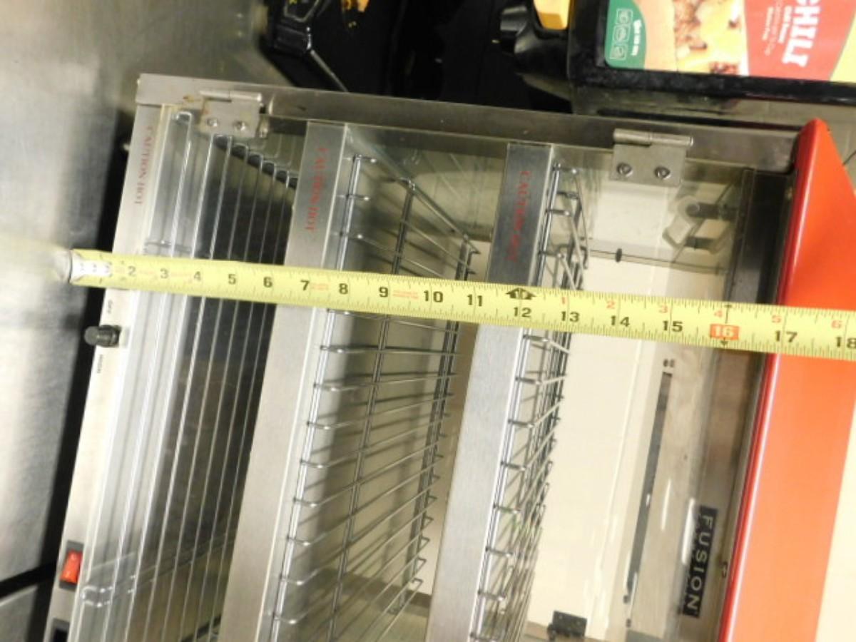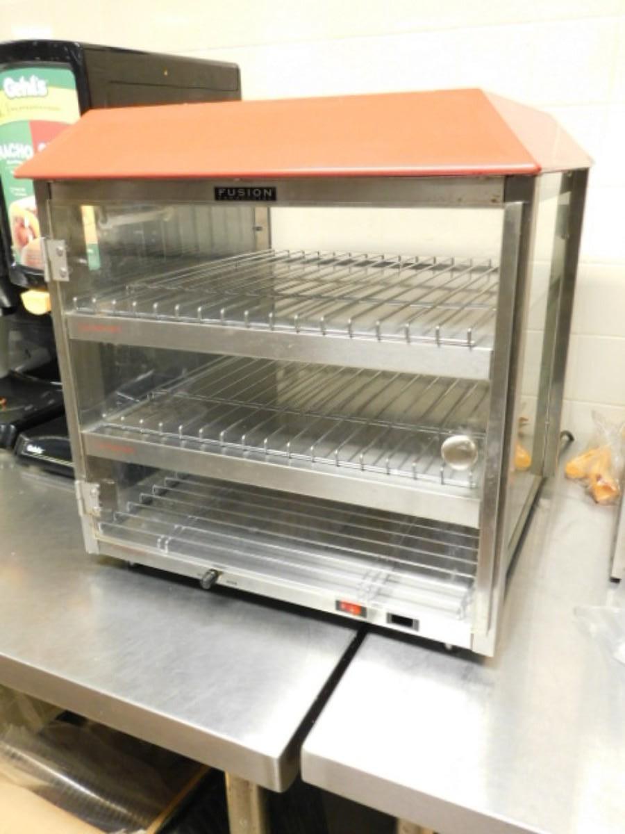 Fusion Brand Commercial Kitchen Three Tier Heat Box. Turned on and began to heat but temperature stability was not tested. Bid accordingly. Expect some wear or scratches to finish. Shipping option available via freight or local mover at Buyer's expense. Buyer must have all shipping scheduled within the stated dates and times of pickup. Recommended local mover is Beaty Bros. Moving 828-201-2982