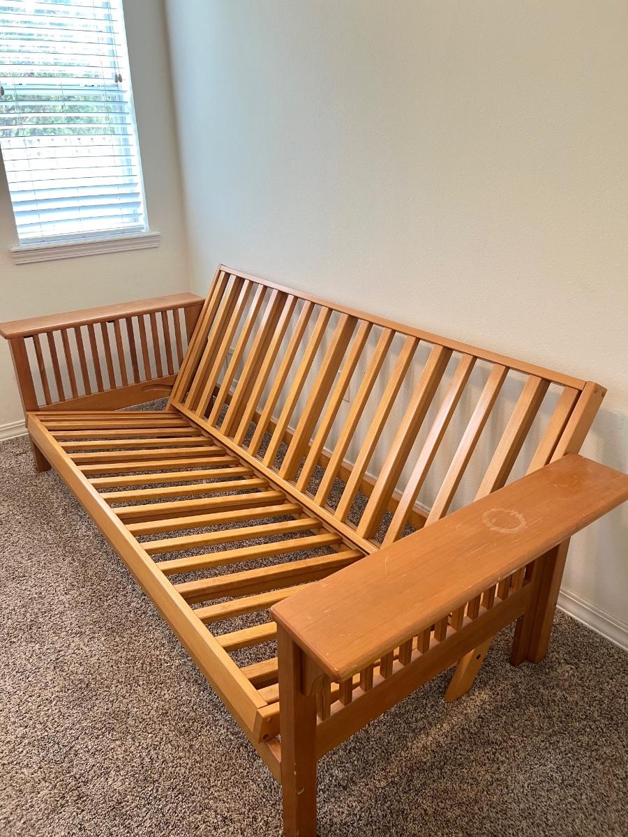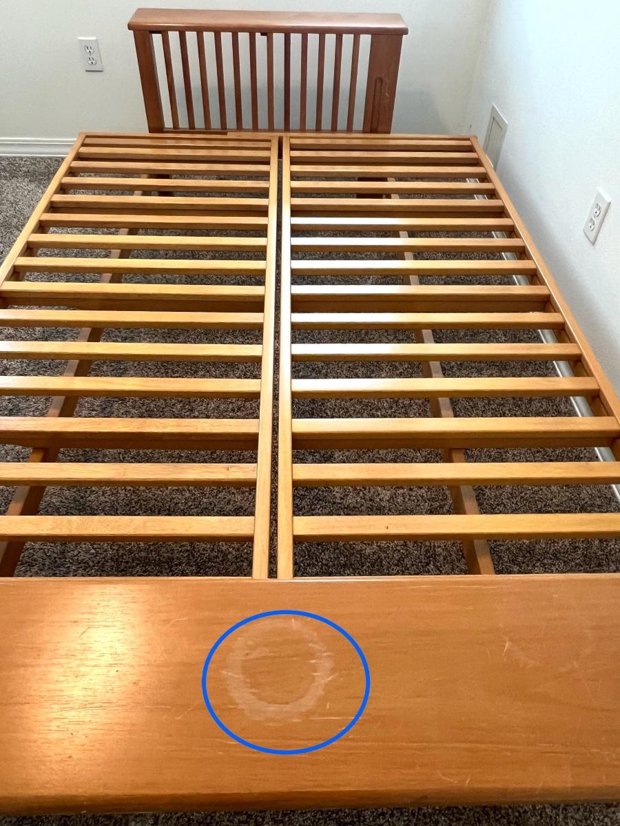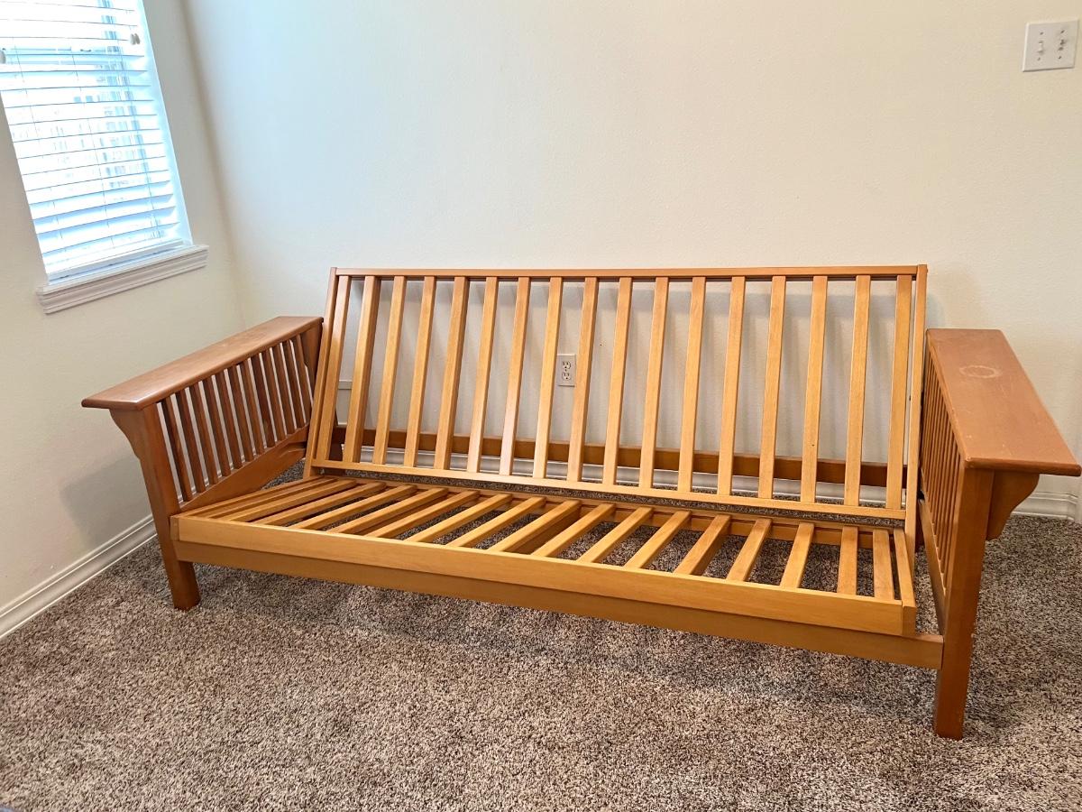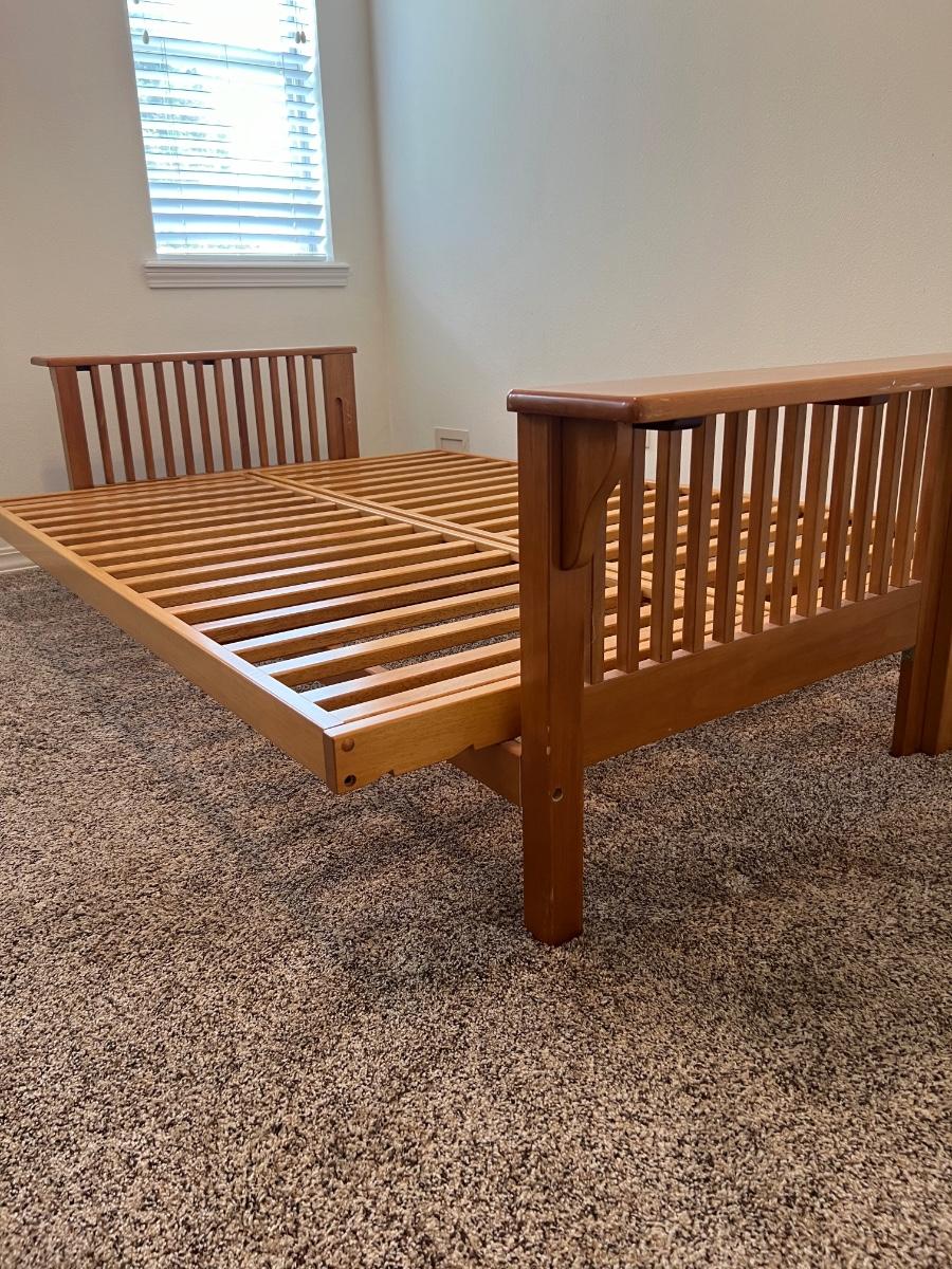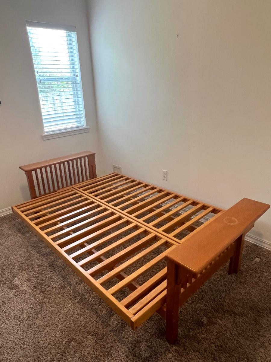 Solid wood and heavy! You will need muscles to move! Wooden base as bed measures 74 inches long and 54 inches wide.