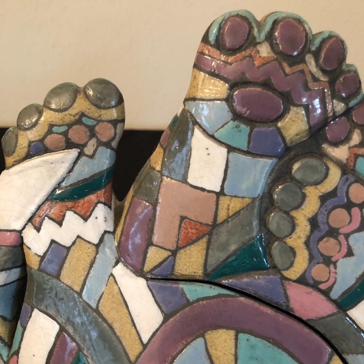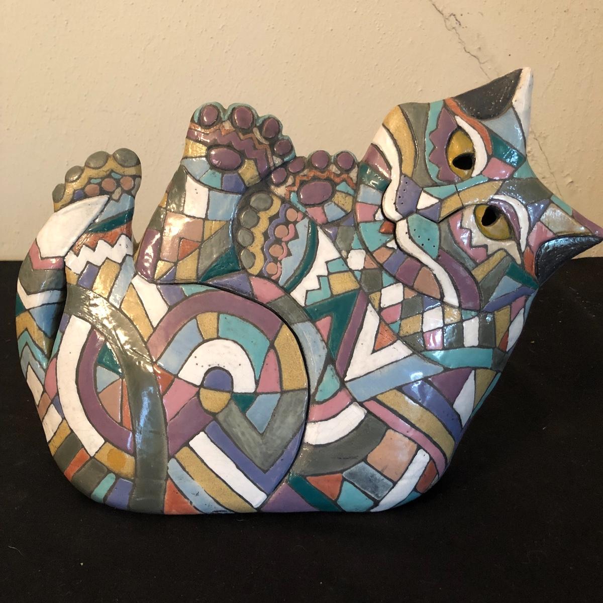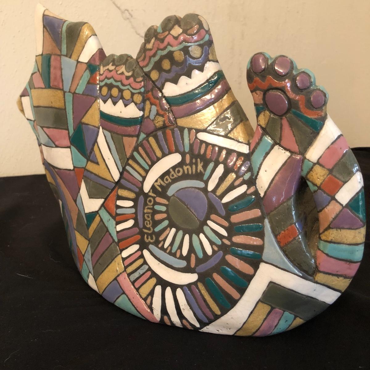 This ceramic beauty is in purrfect condition! It’s a conversation piece for sure and Will enliven any space it curls up in! Signed by Eleanor Madonik 1993.
