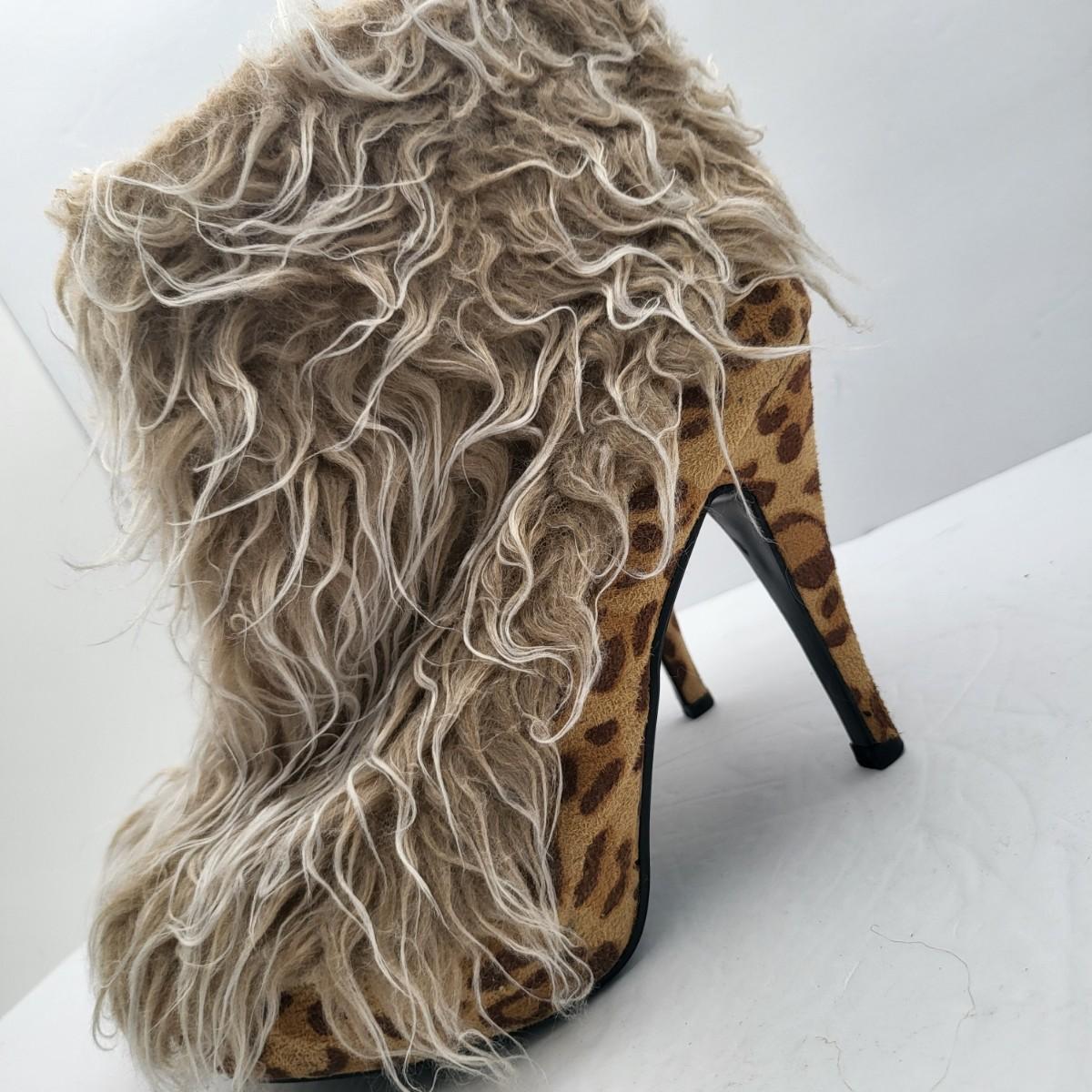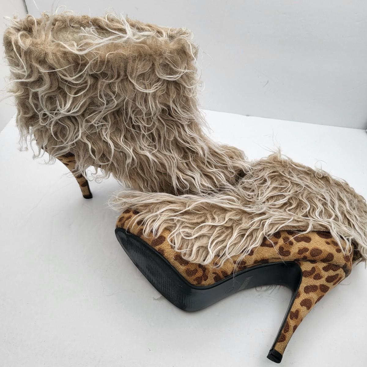 Faux fur & tan animal print, 3" heel ankle boots size 39. Worn only once. Fun accessory for a wild night out or part of costume.