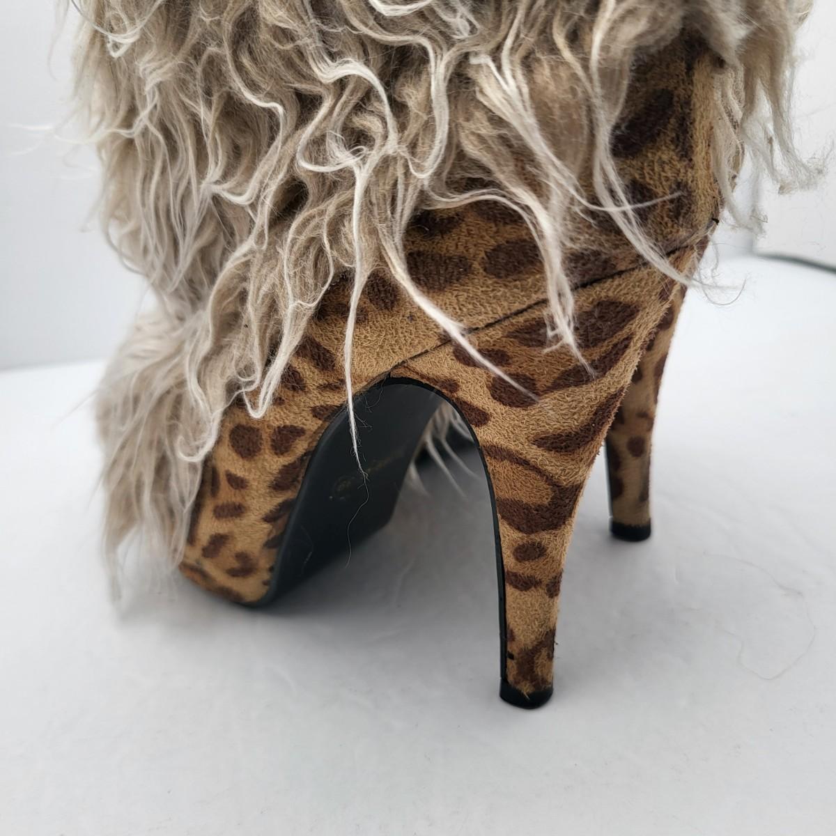 Fuzzy Animal Print Heeled Ankle Boots Size 39 (8.5)