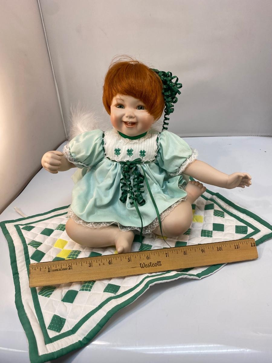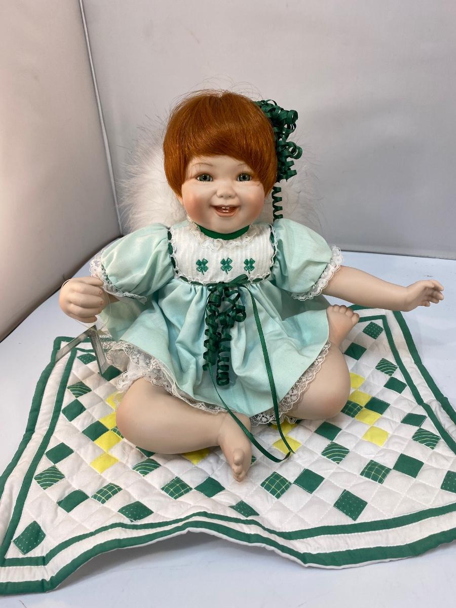 Robin Miller Quilted Angel Babies Porcelain Bisque Doll Angel of Luck Red Head with Green Eyes Ashton-Drake Galleries