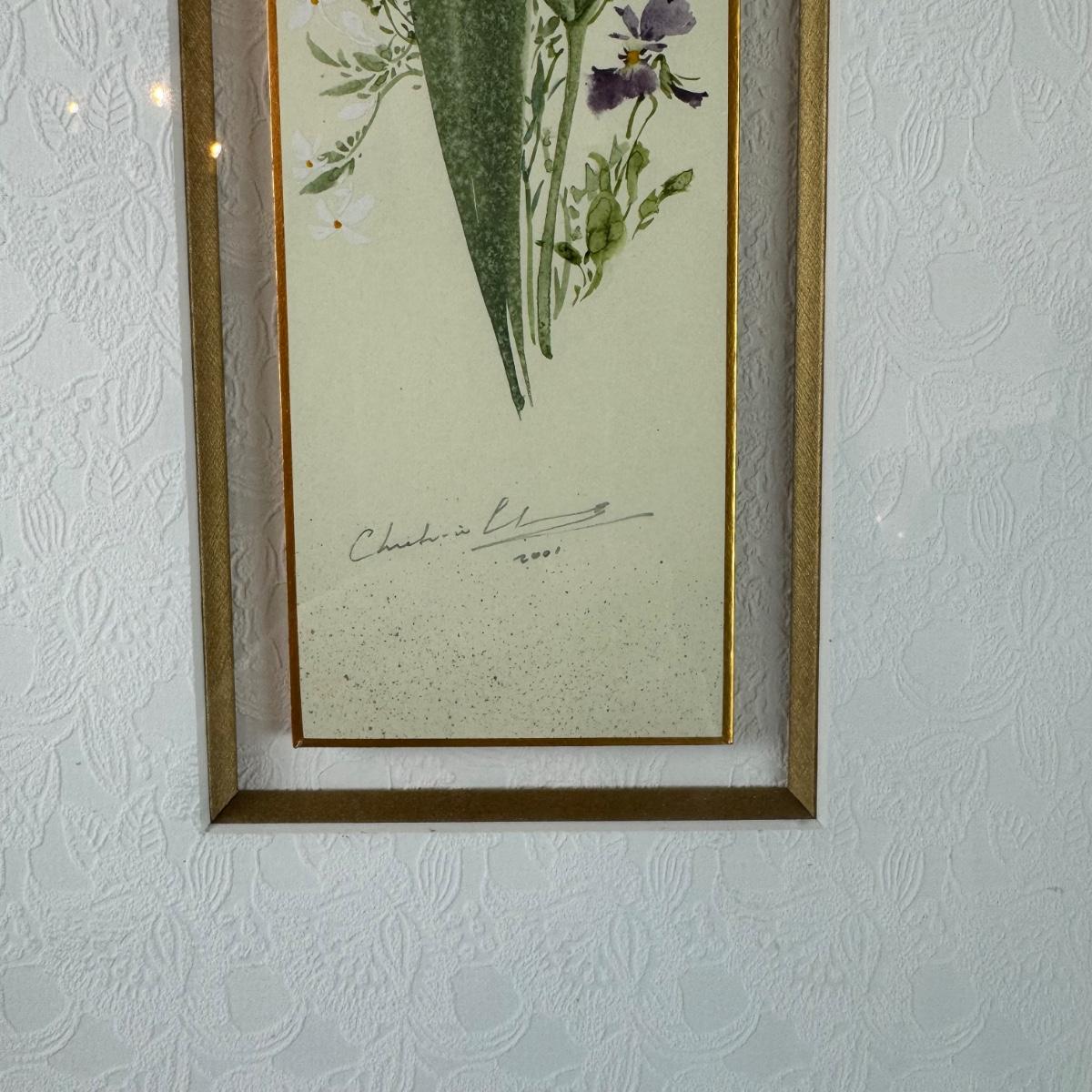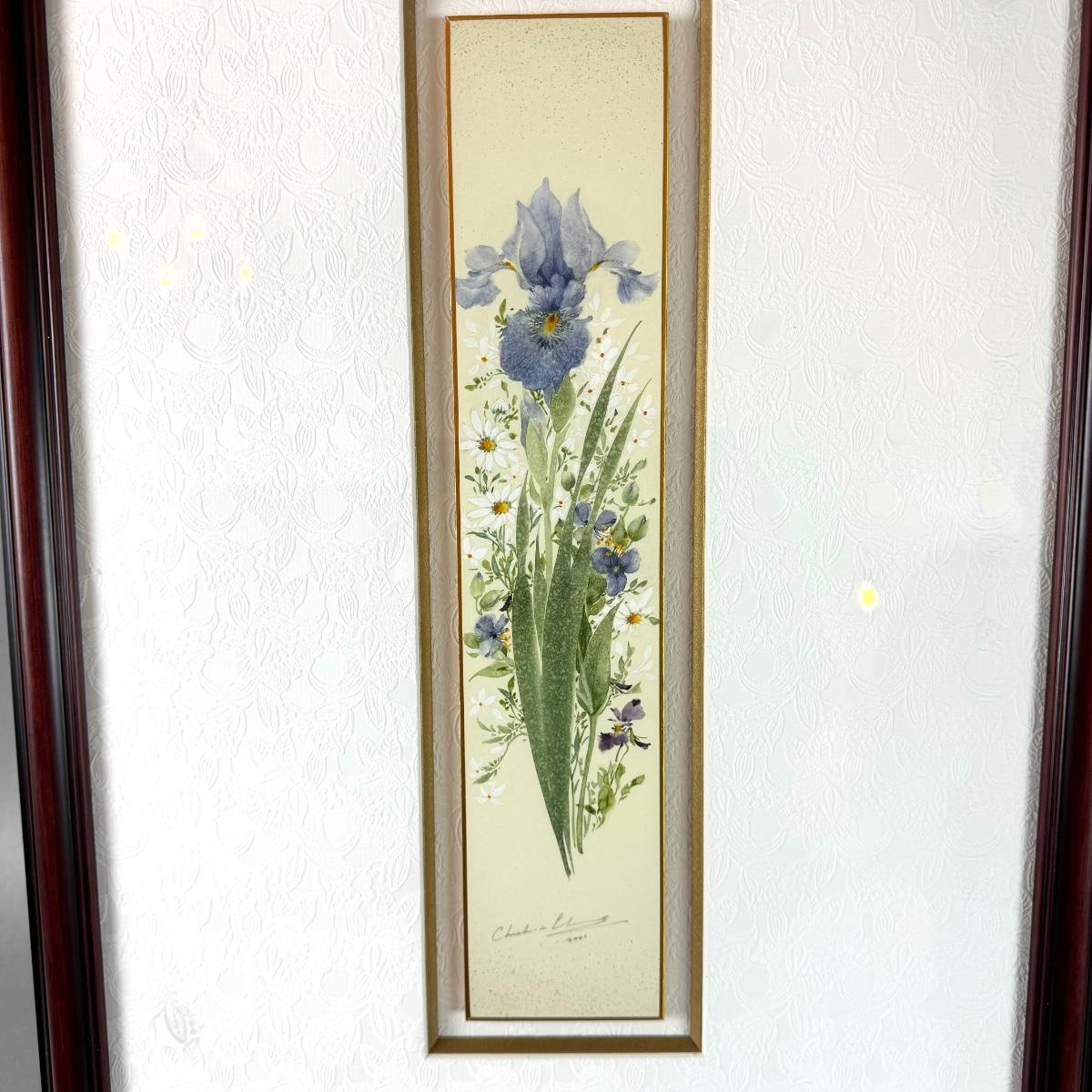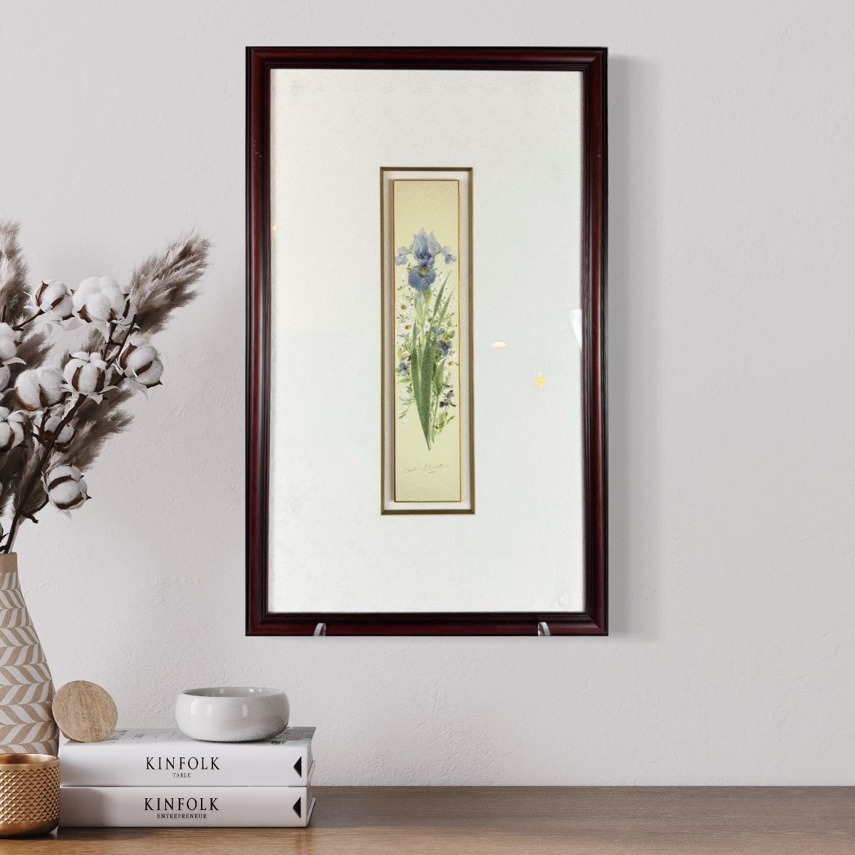 FY053 Original Iris Watercolor Framed with Damask Matting Signed in Lower Bottom