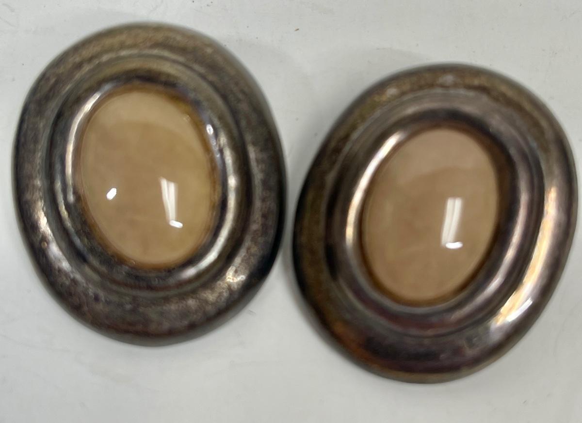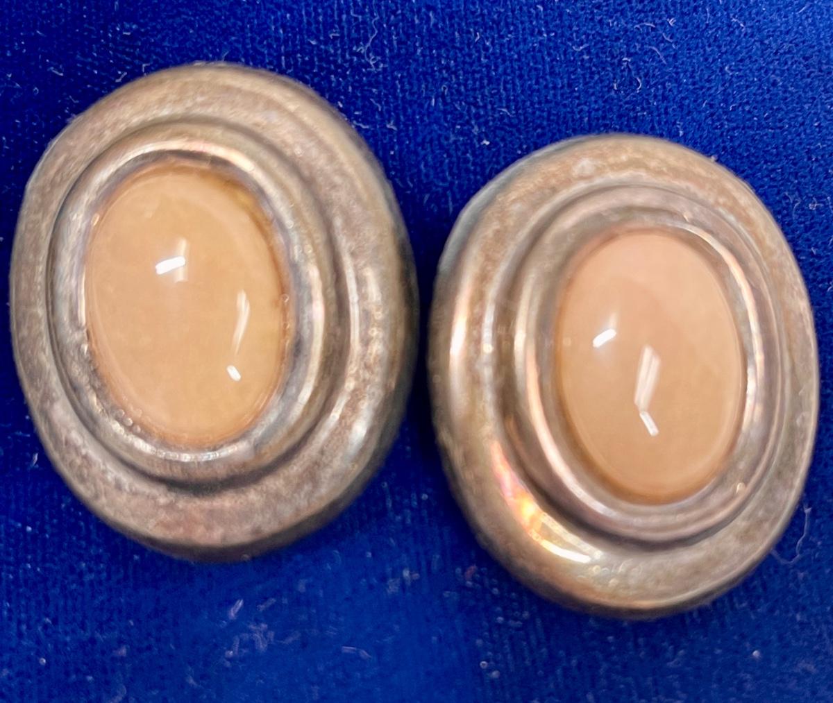 Earrings Clip-on Sterling Silver with light peach colored stones