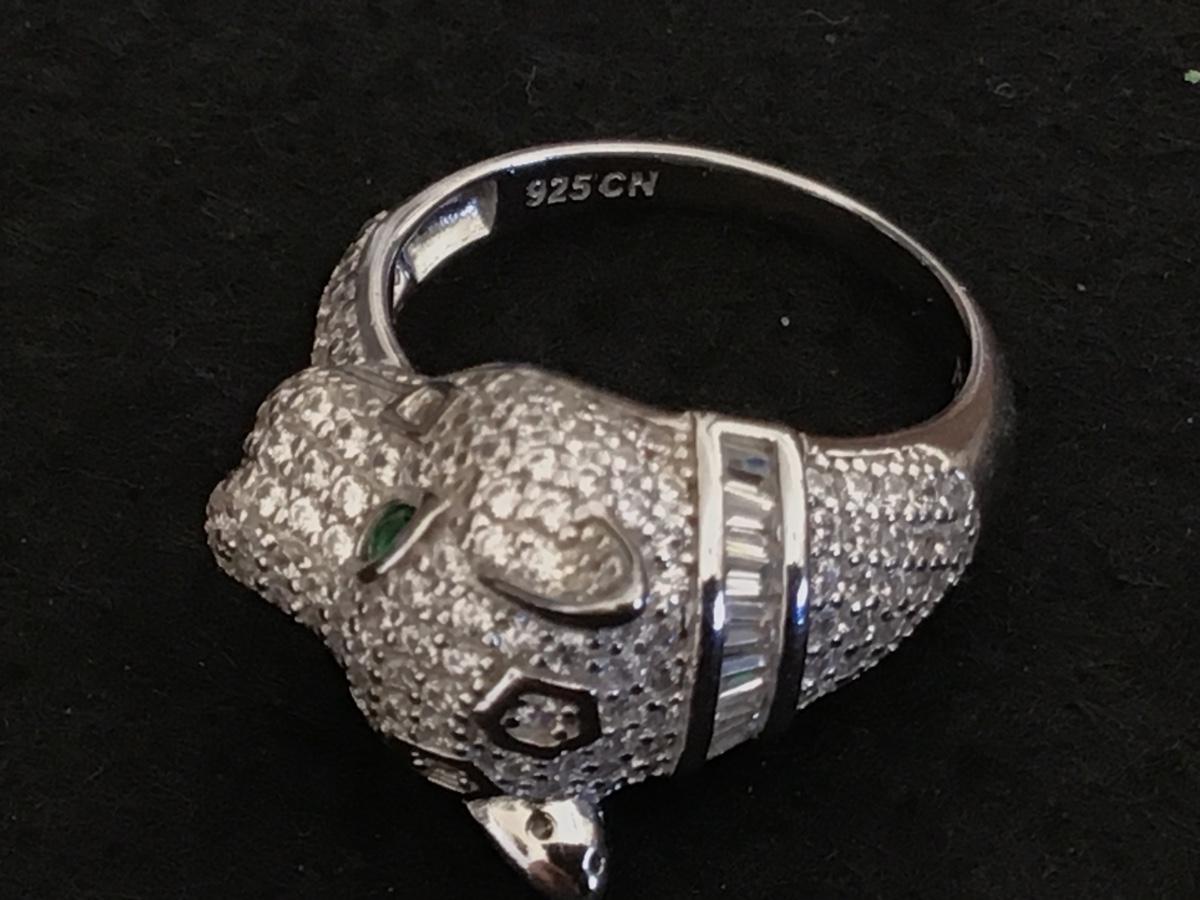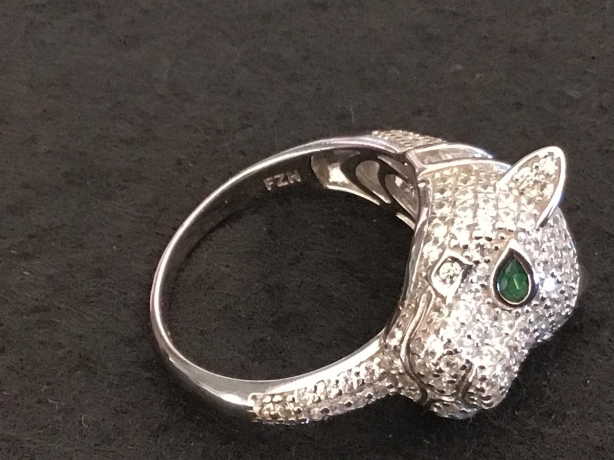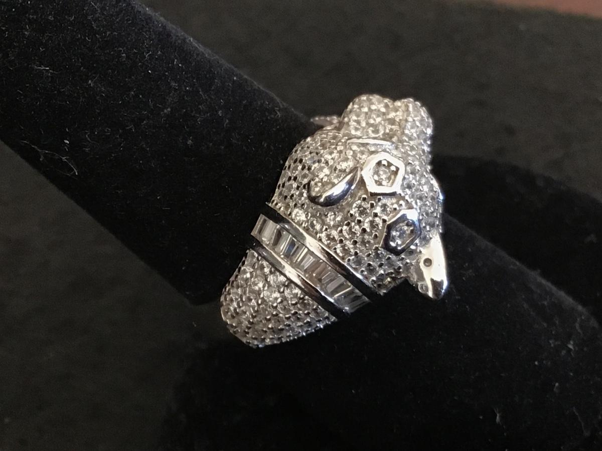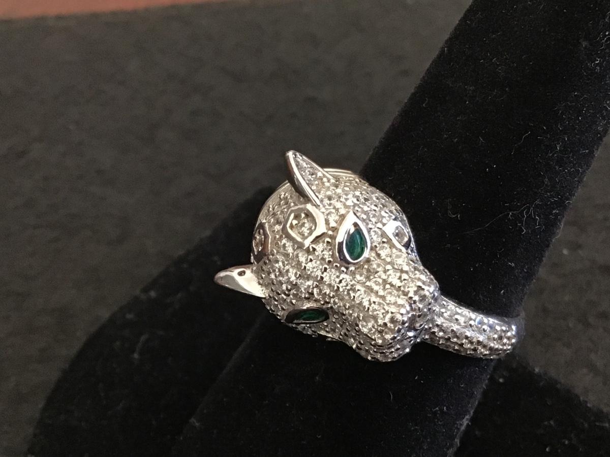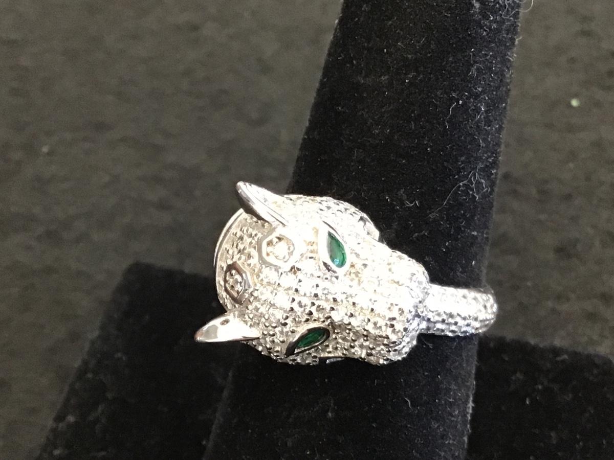 FZN Sterling Silver Paved Rhinestone Jaguar Ring