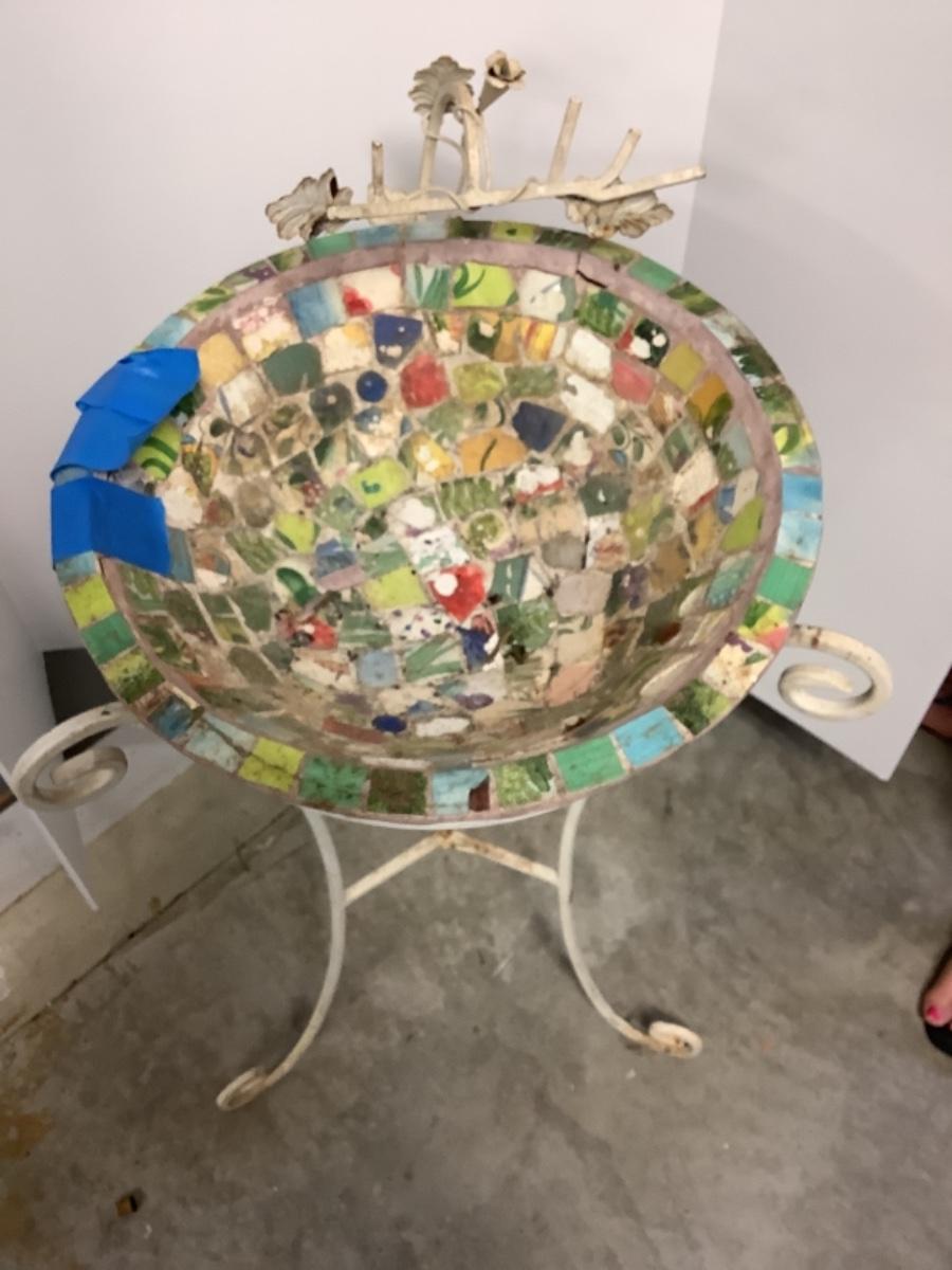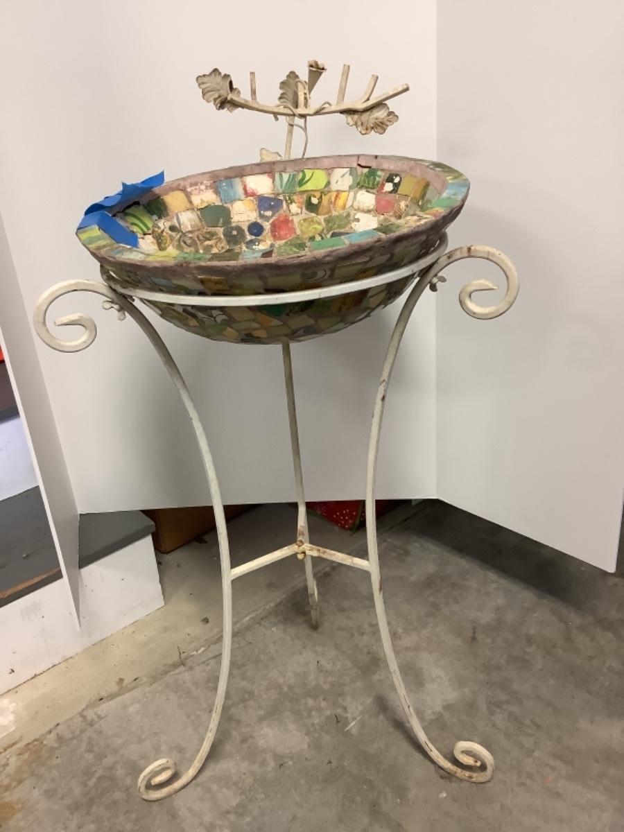 G - 1271. Mosaic Bird Bath on Wrought Iron Stand