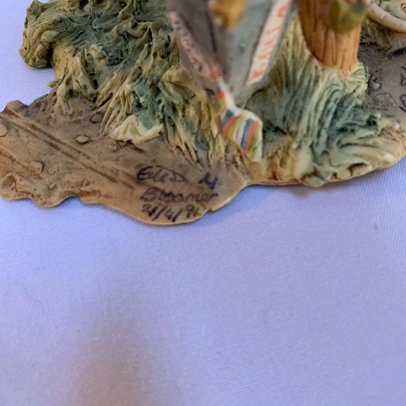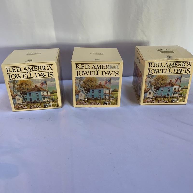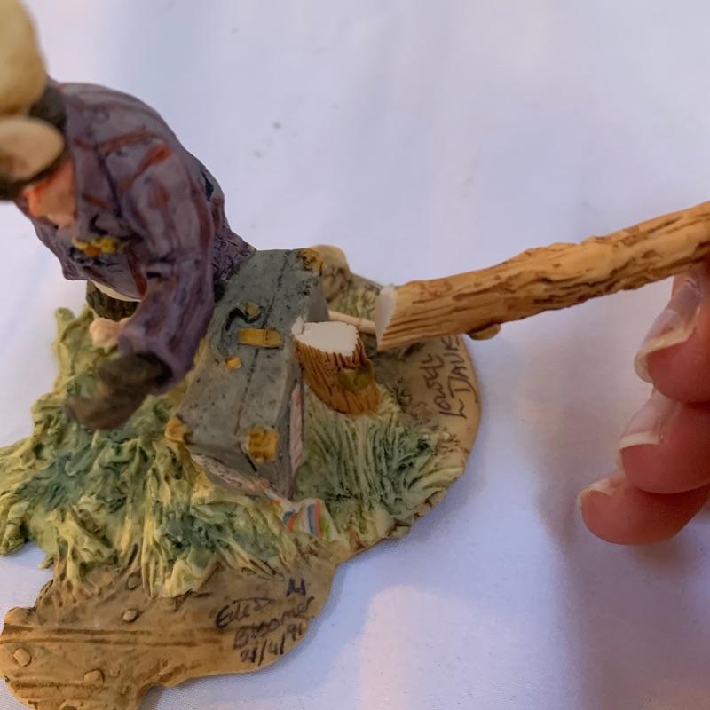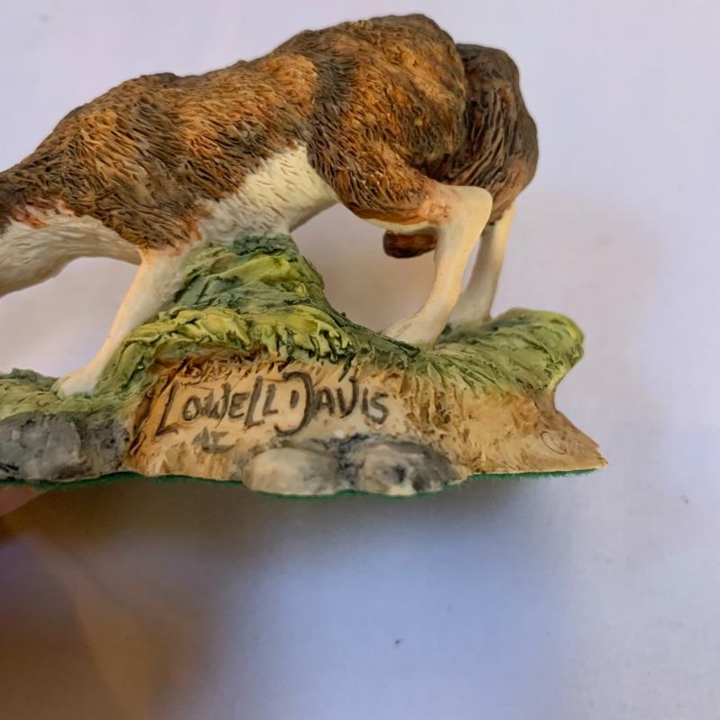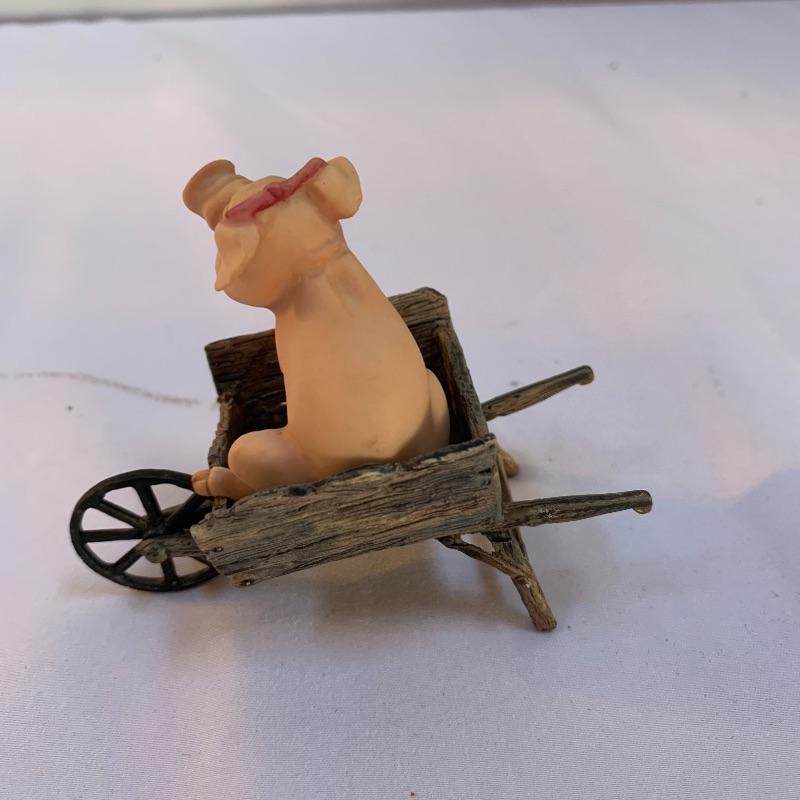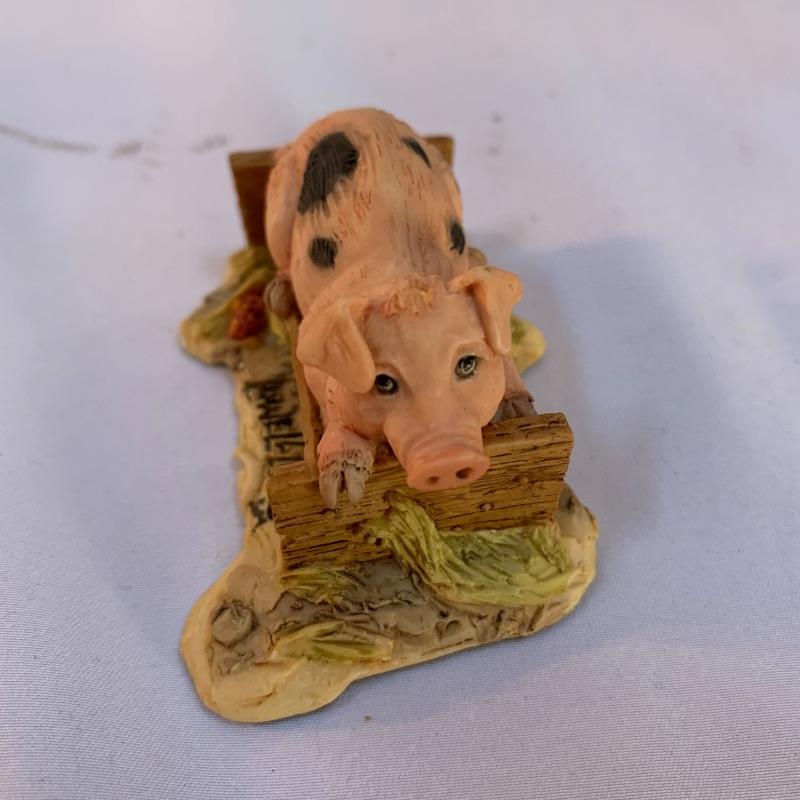 This lot contains multiple small figurines from the R.F.D. America set by Lowell Davis. They depict pigs doing miscellaneous activities and wolves both acting natural and wearing cute outfits. A stick on one of the wolf figurines has broken off. Shipping available.