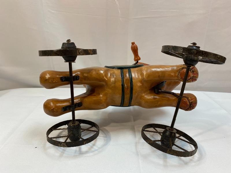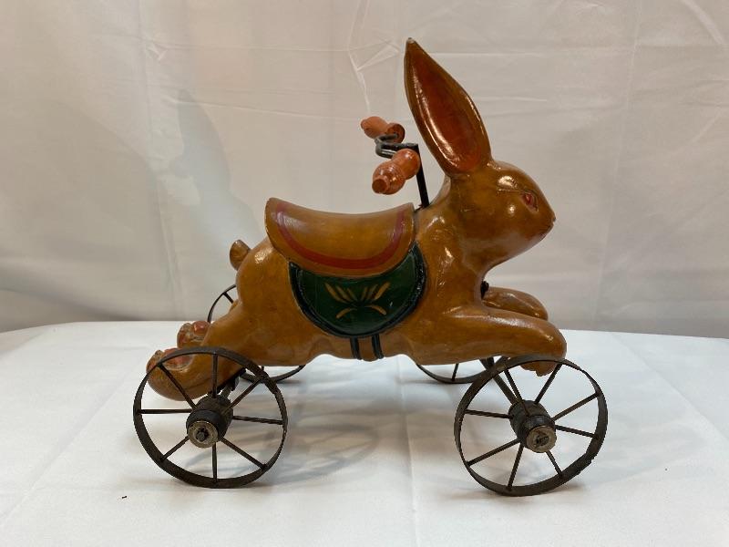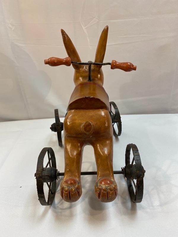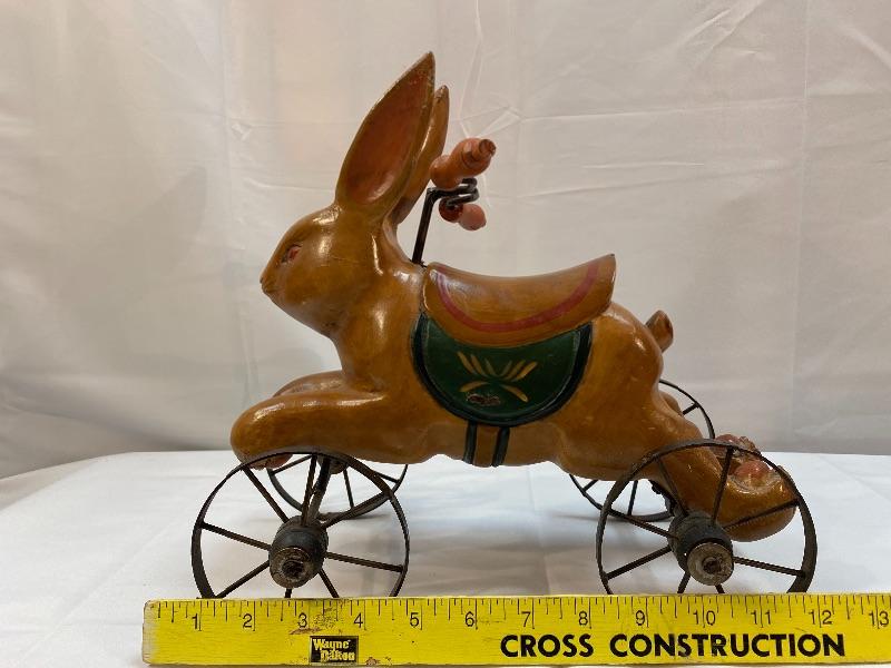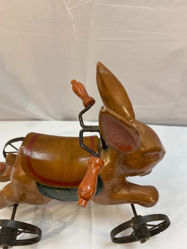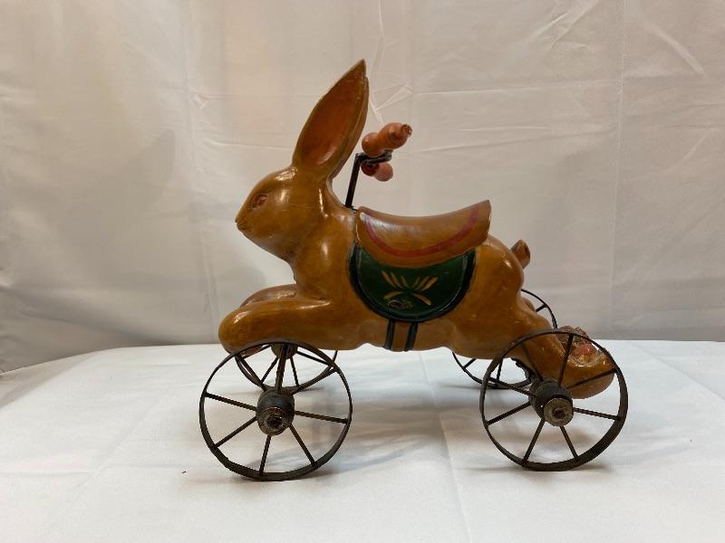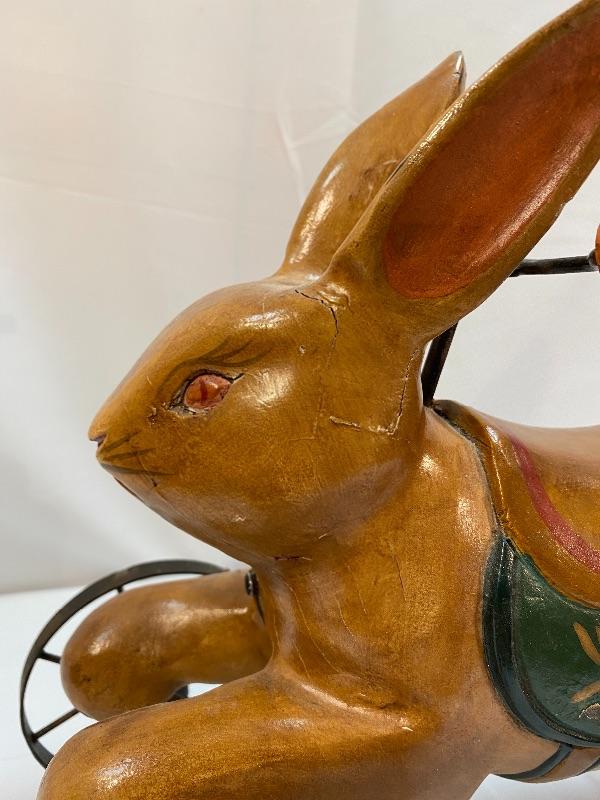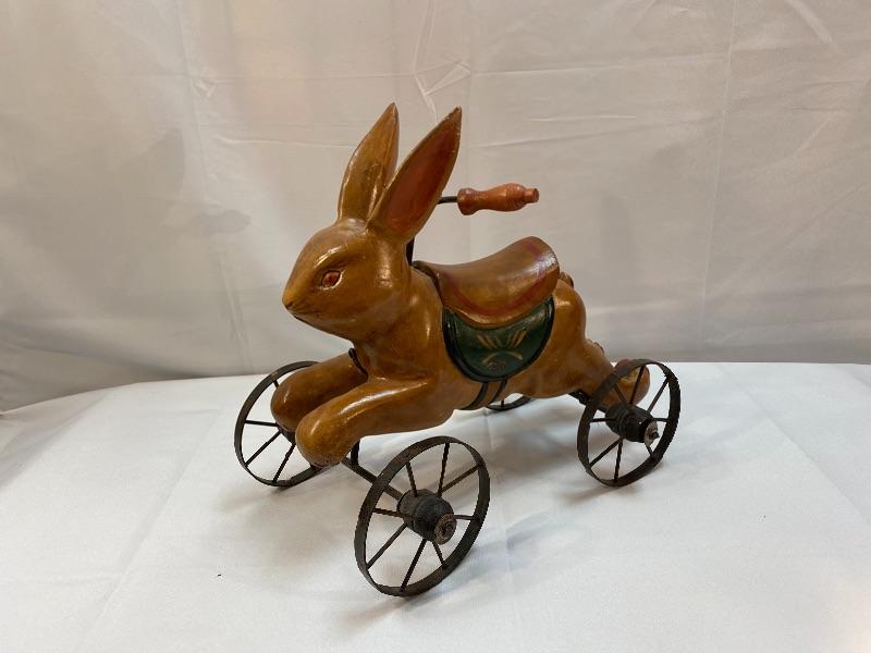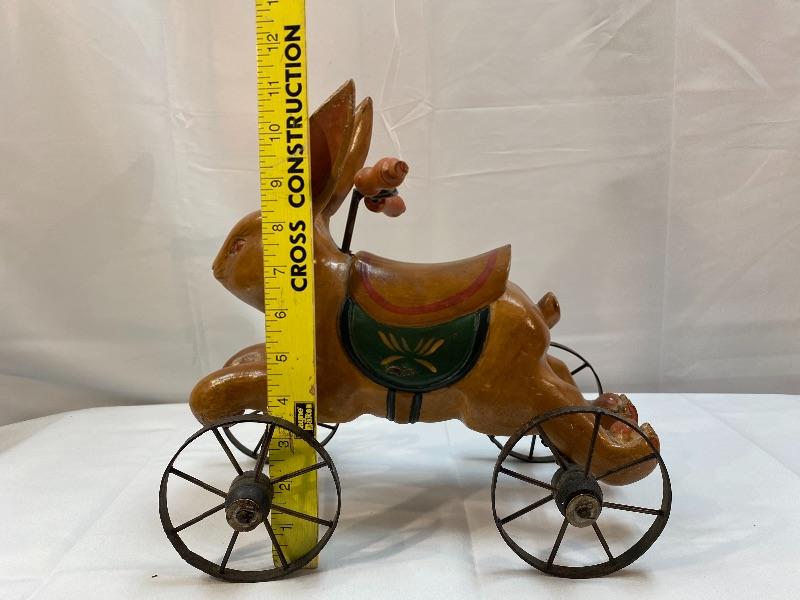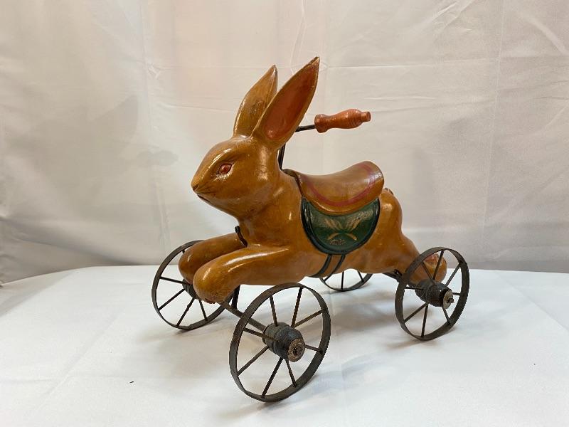 Rustic rabbit ride on toy. Meant for display, to small for children. About 12" size.