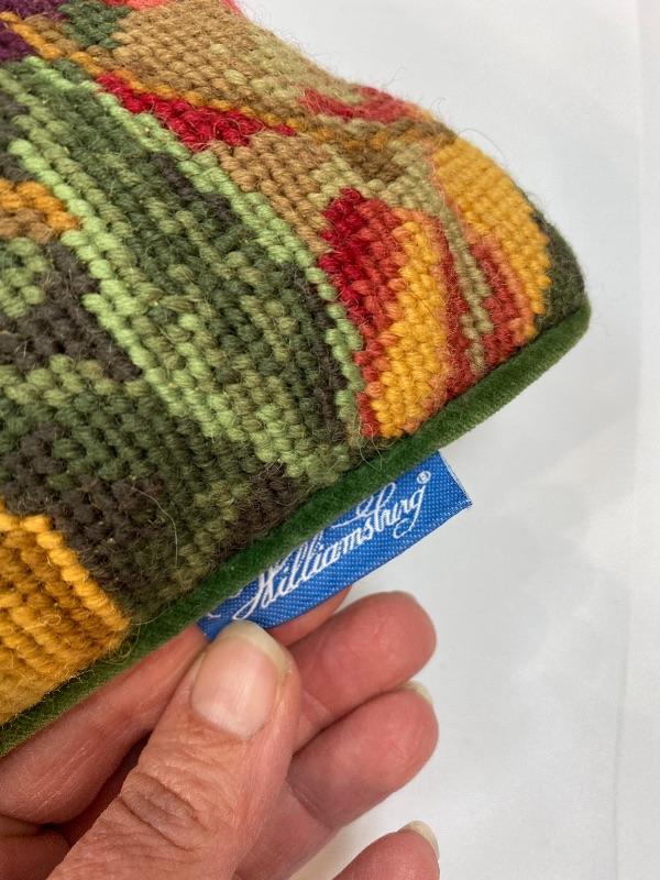 Mixed fruit decorative needlepoint pillow. Made by Williamsburg. About 14" size.