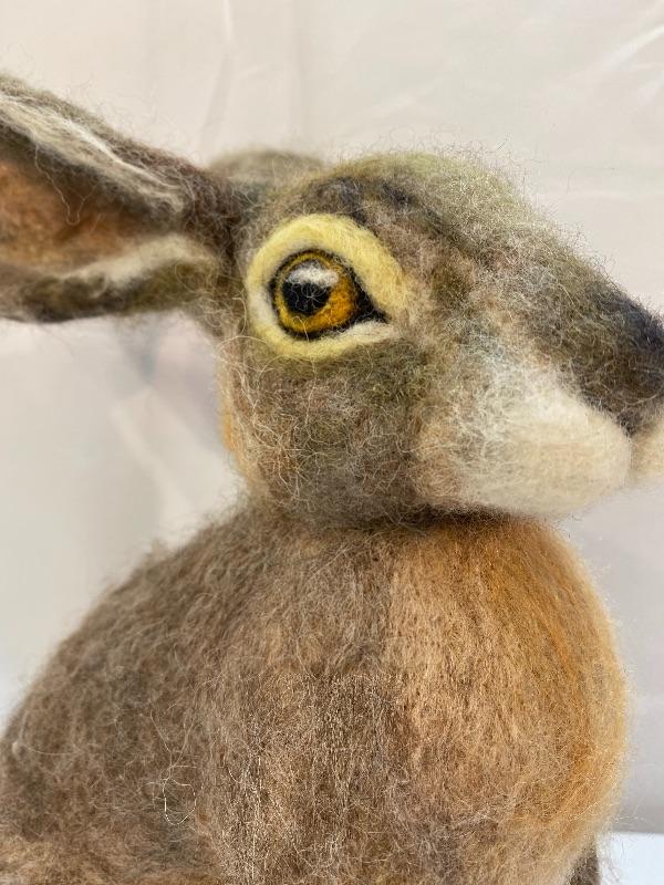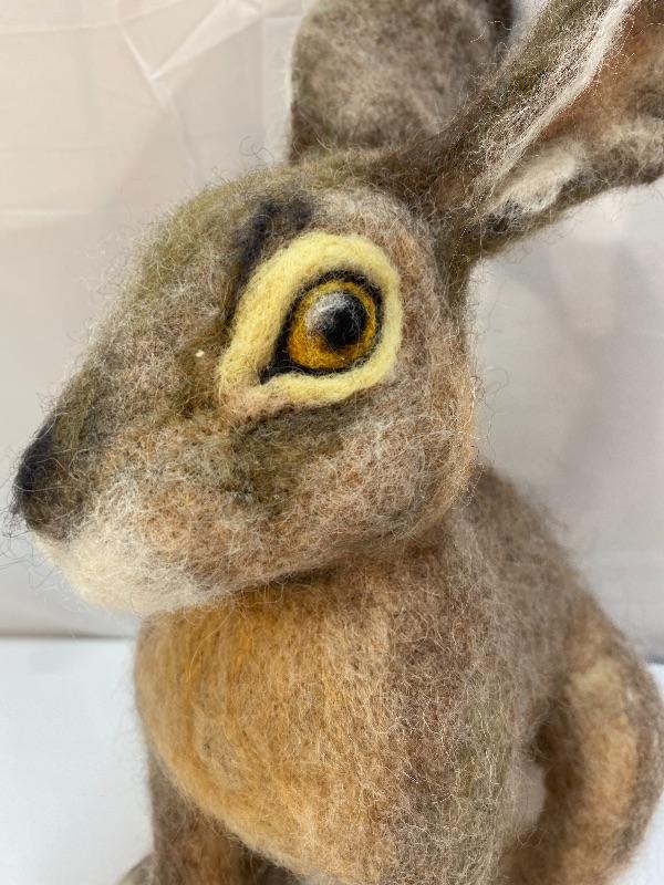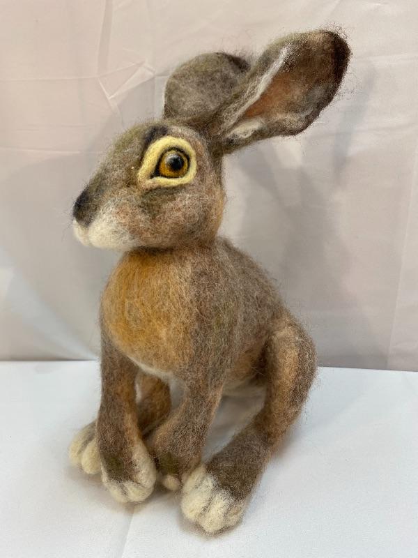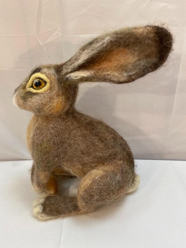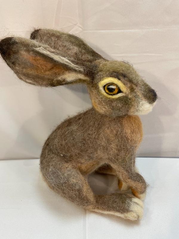 Needle felted hare plush. Realistic looking bunny. In good condition. No artist marks