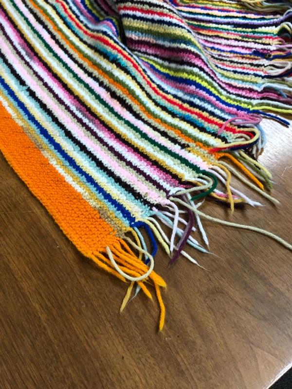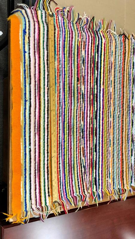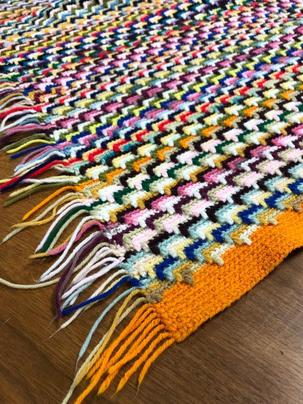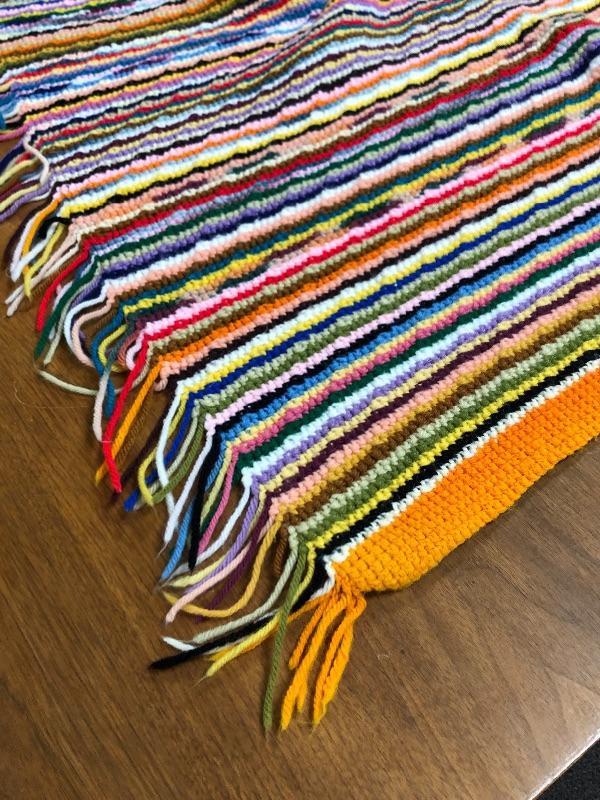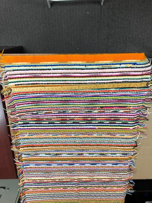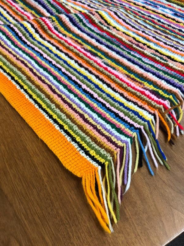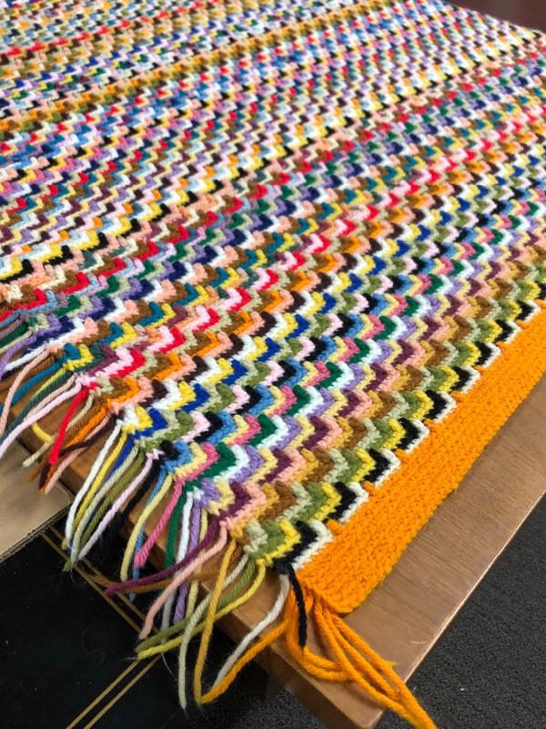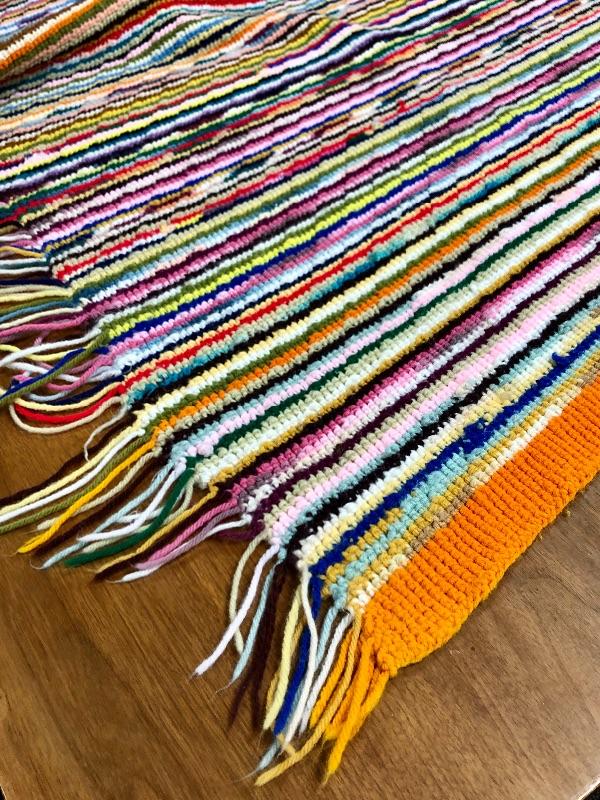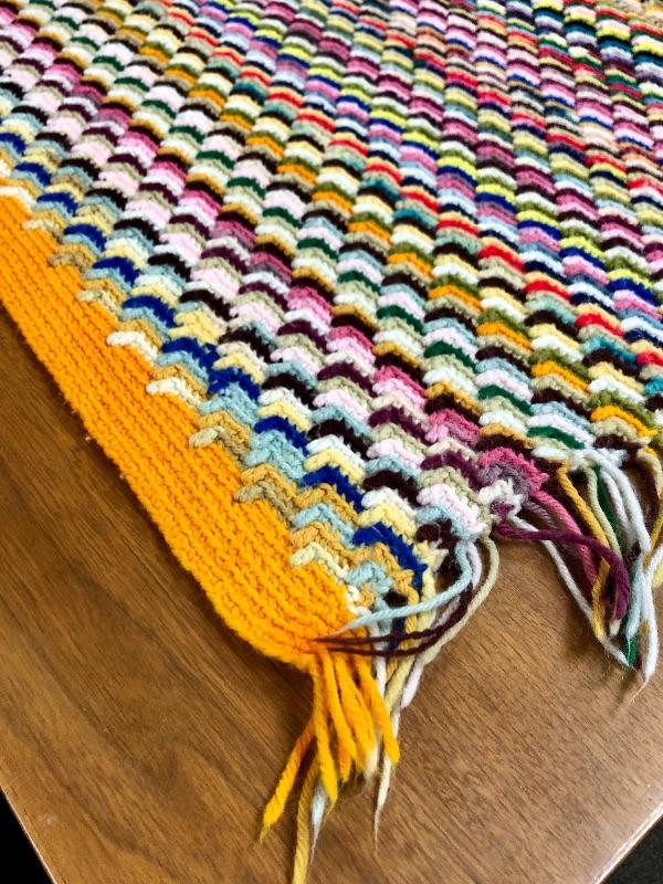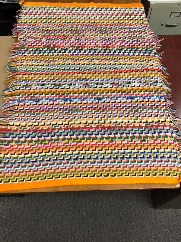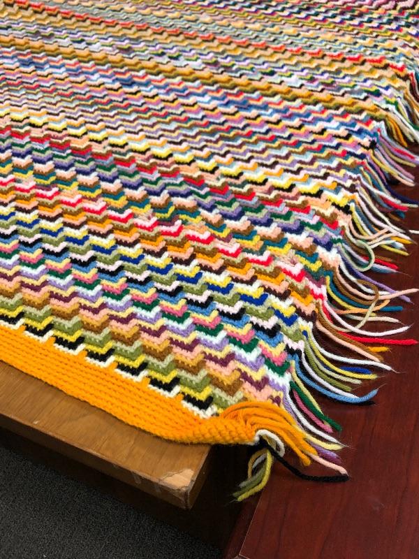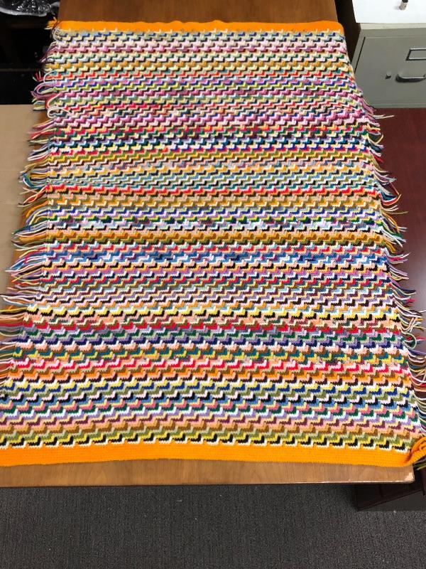 Multi-Colored Knit throw or rug with 2 different geometric shaped patterns on each side