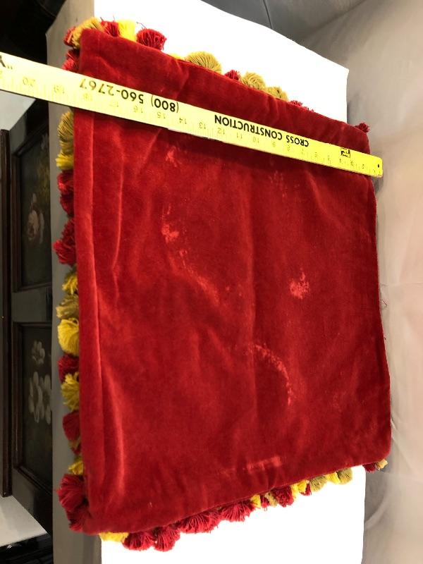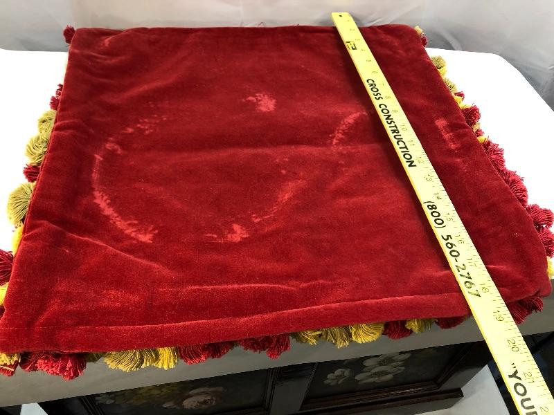 Pair of matching red and yellow floral needlepoint pillow covers. Tassel edge. Zip close.