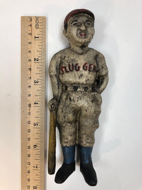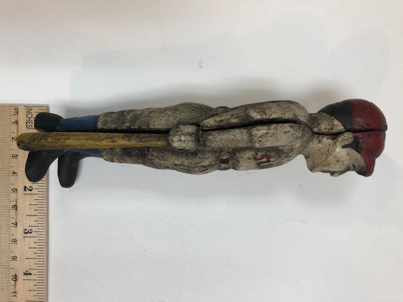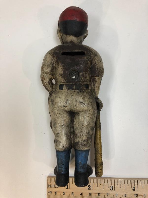 Vintage Cast Iron Slugger Baseball Player Coin Bank
