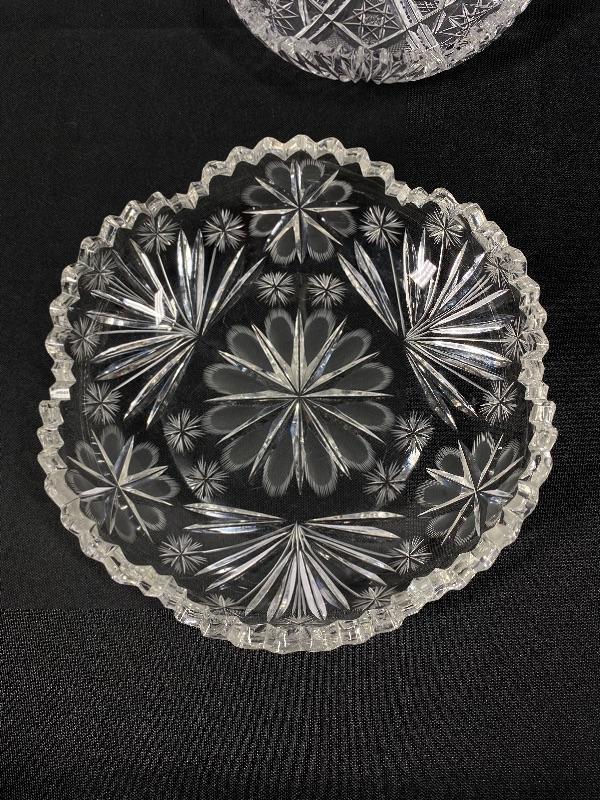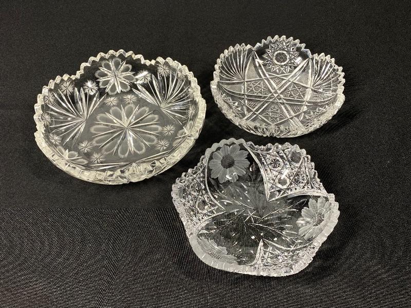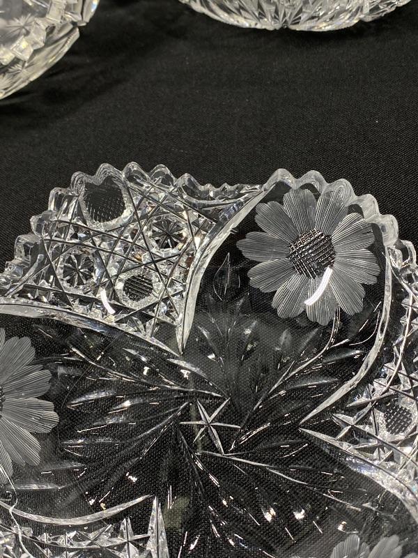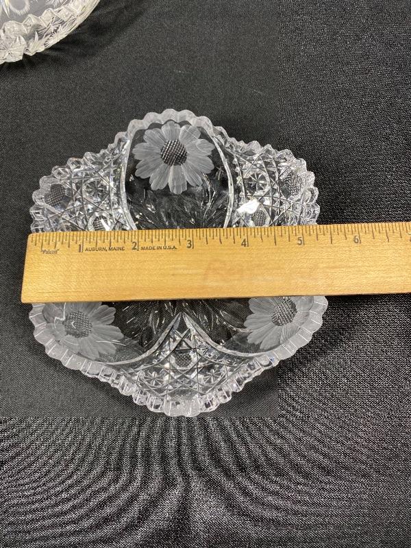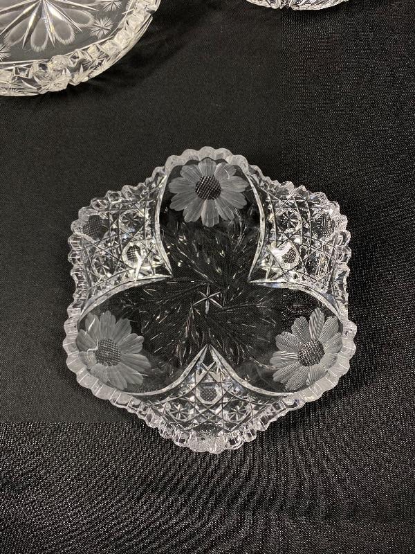 Set of 3 ABP Cut Etched Glass Crystal Flower Pattern Dish Bowl