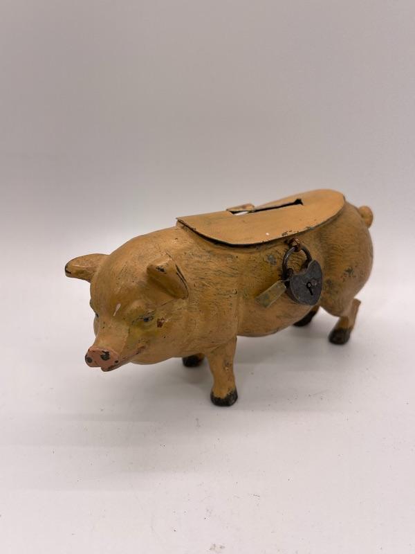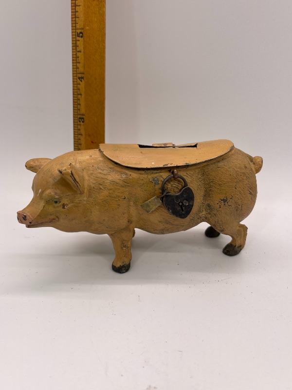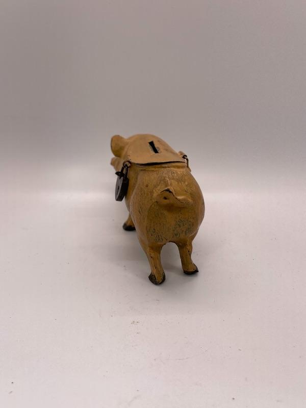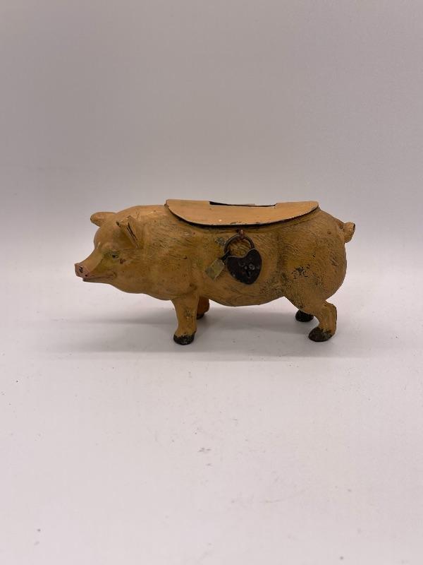 Vintage Painted Cast Metal Pig Hog Coin Piggy Bank