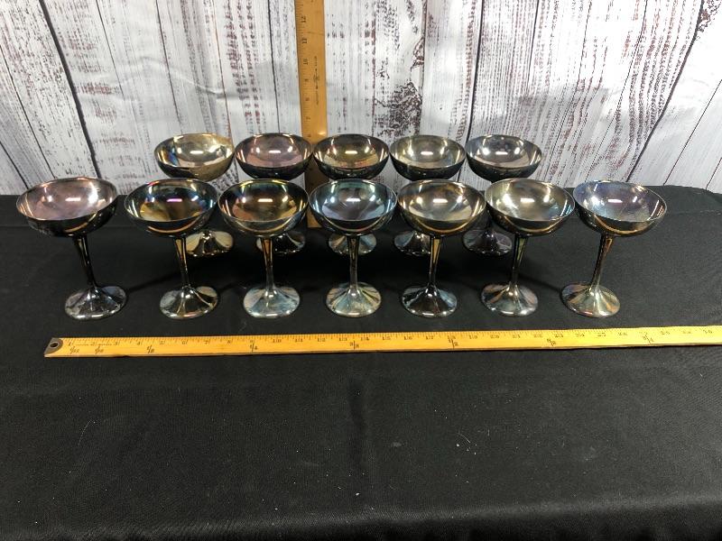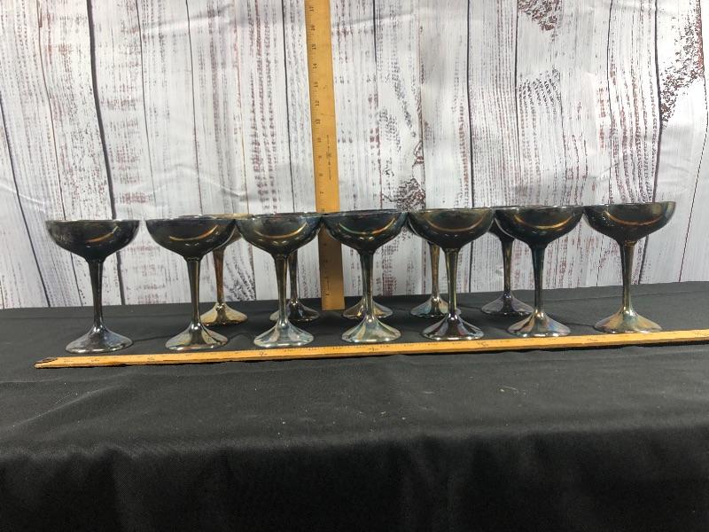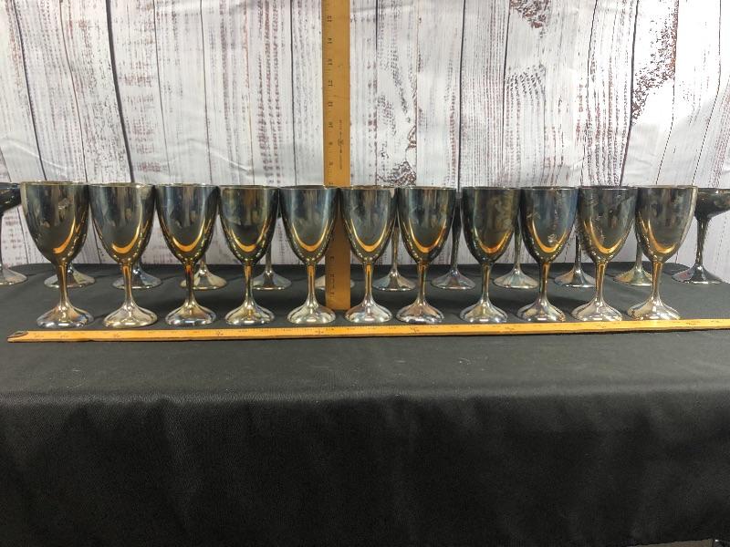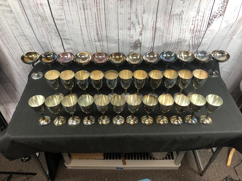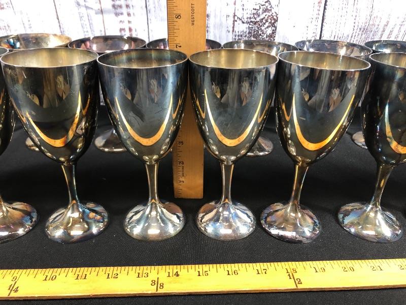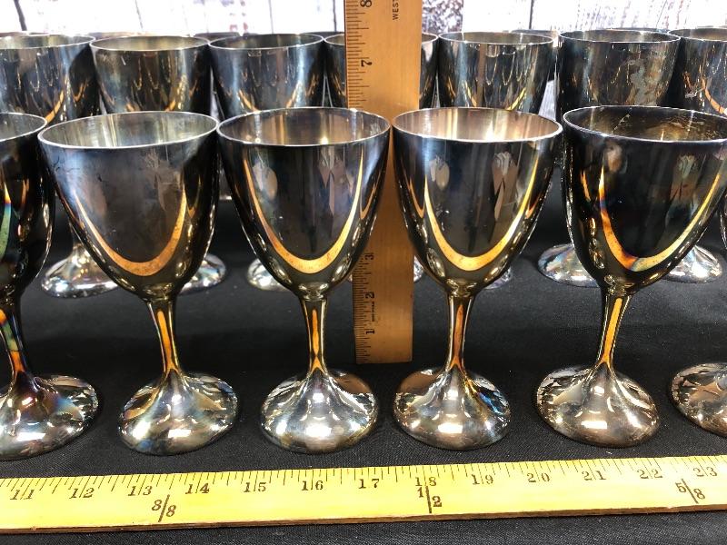 Large Set of Silverplate Wine Drink Goblets Glasses 3 Sizes